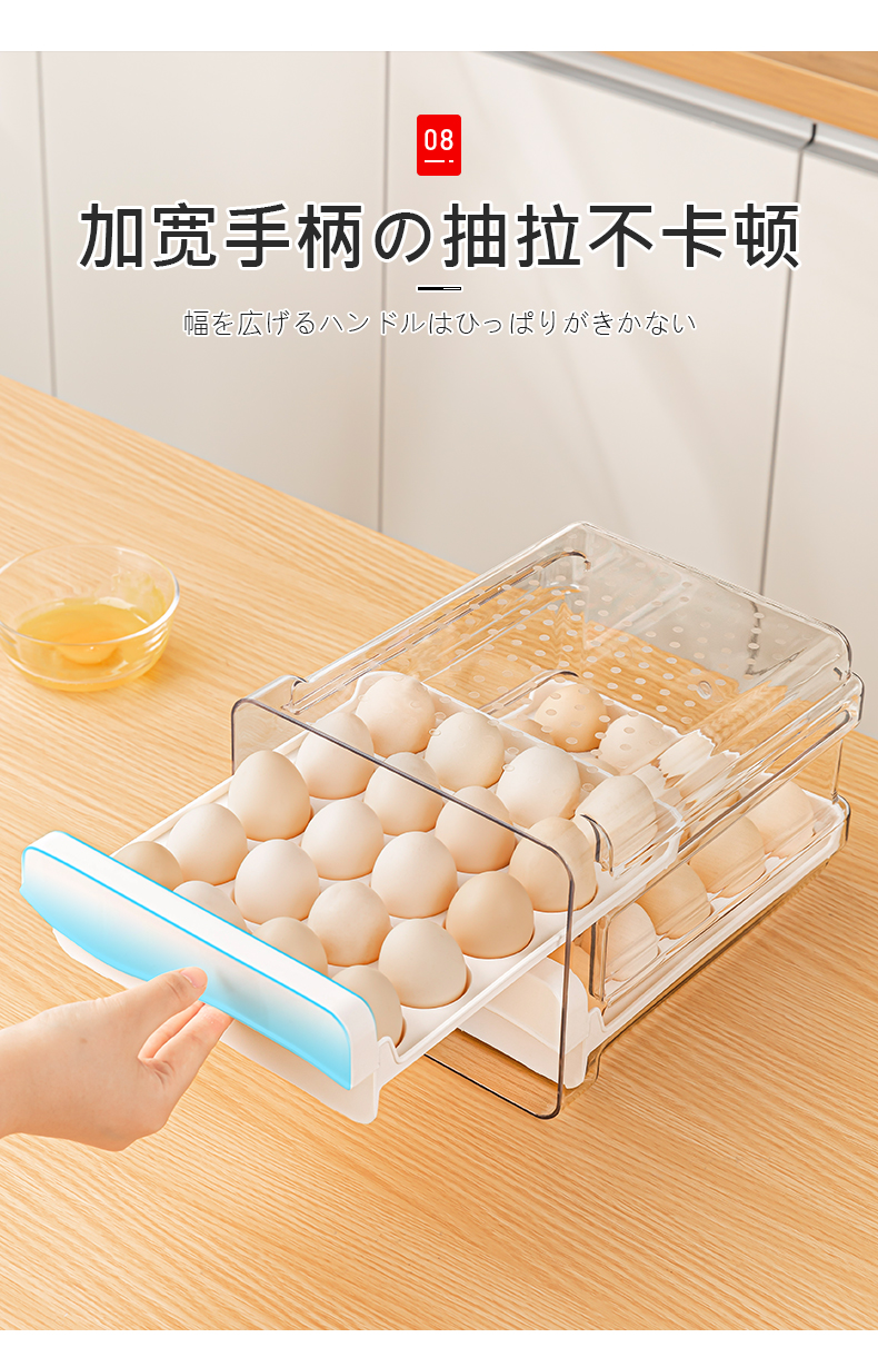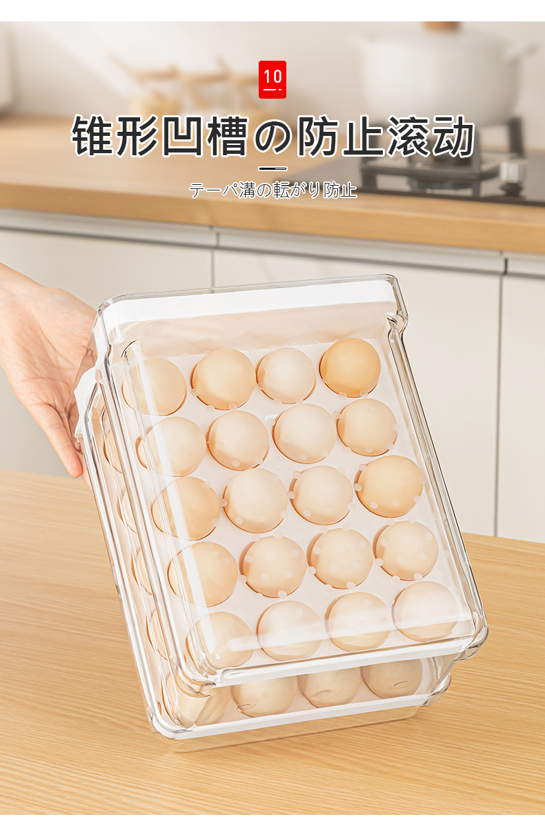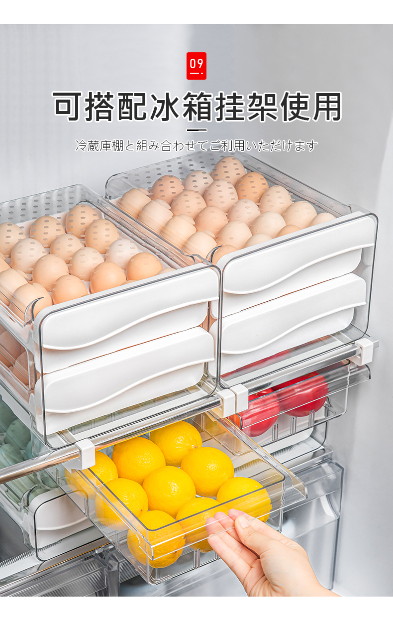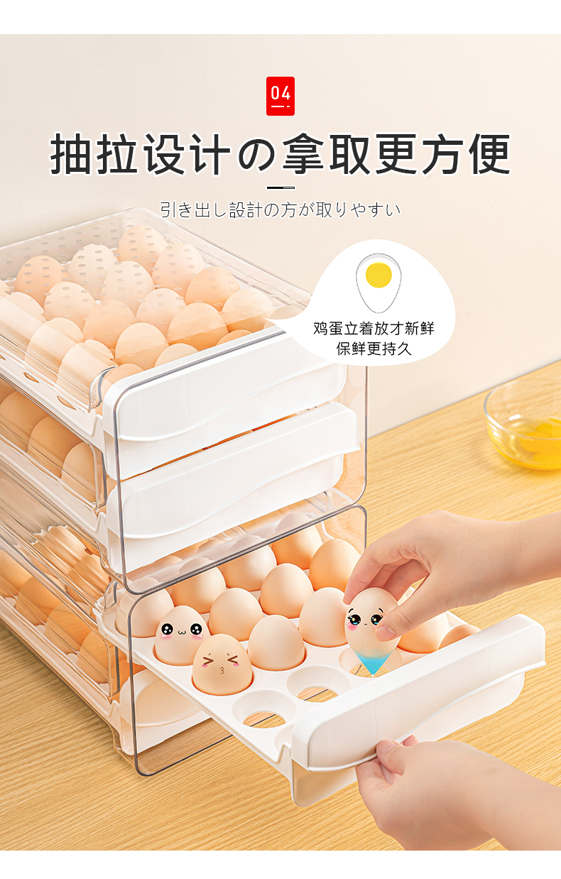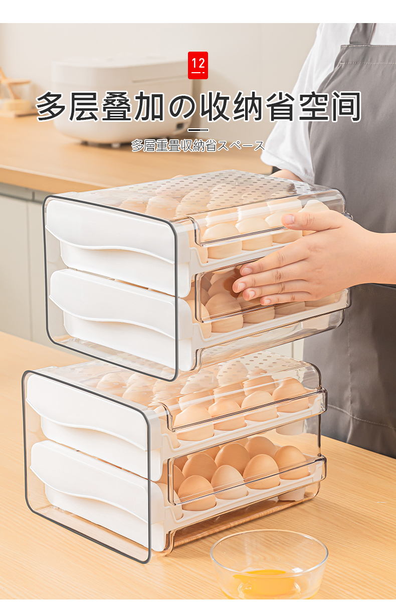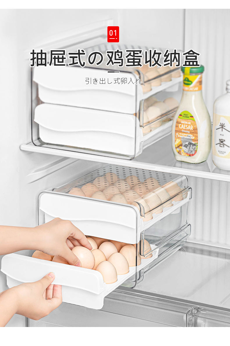 日本鸡蛋收纳盒冰箱用保鲜盒厨房整理神器抽屉式装放架托蛋盒神器