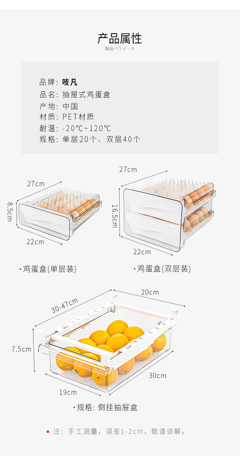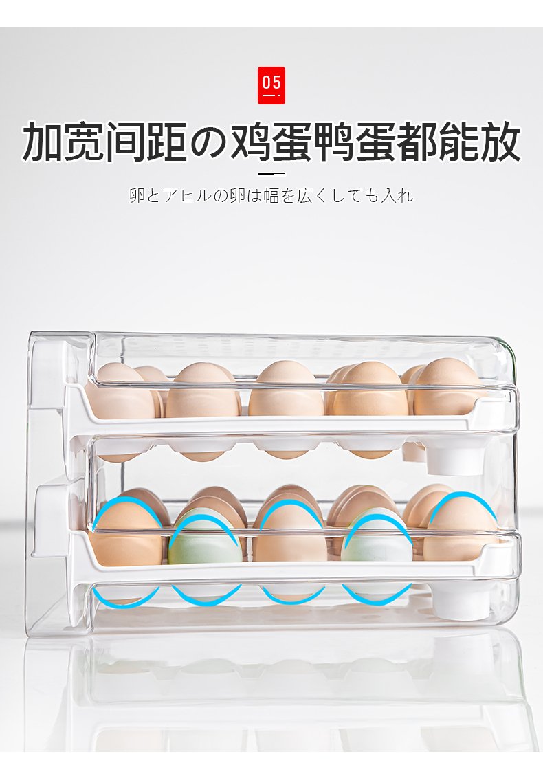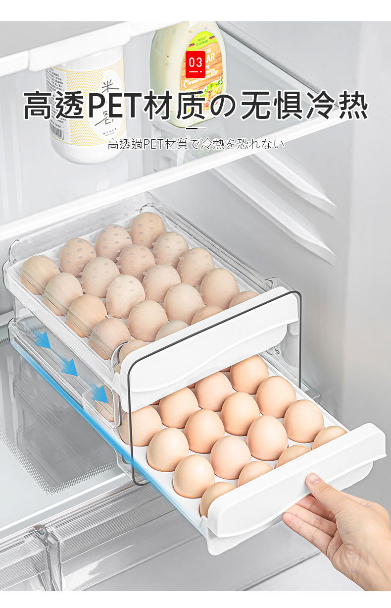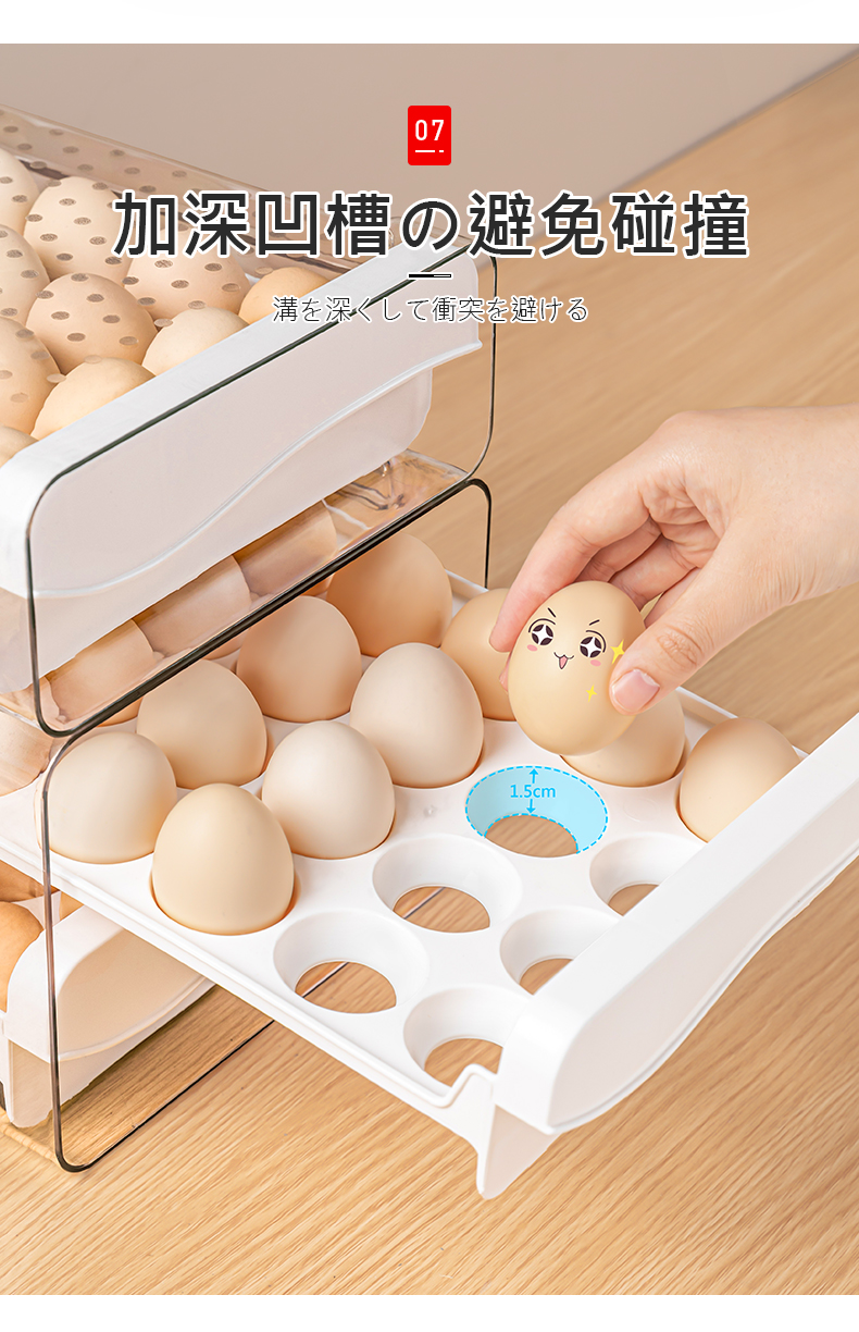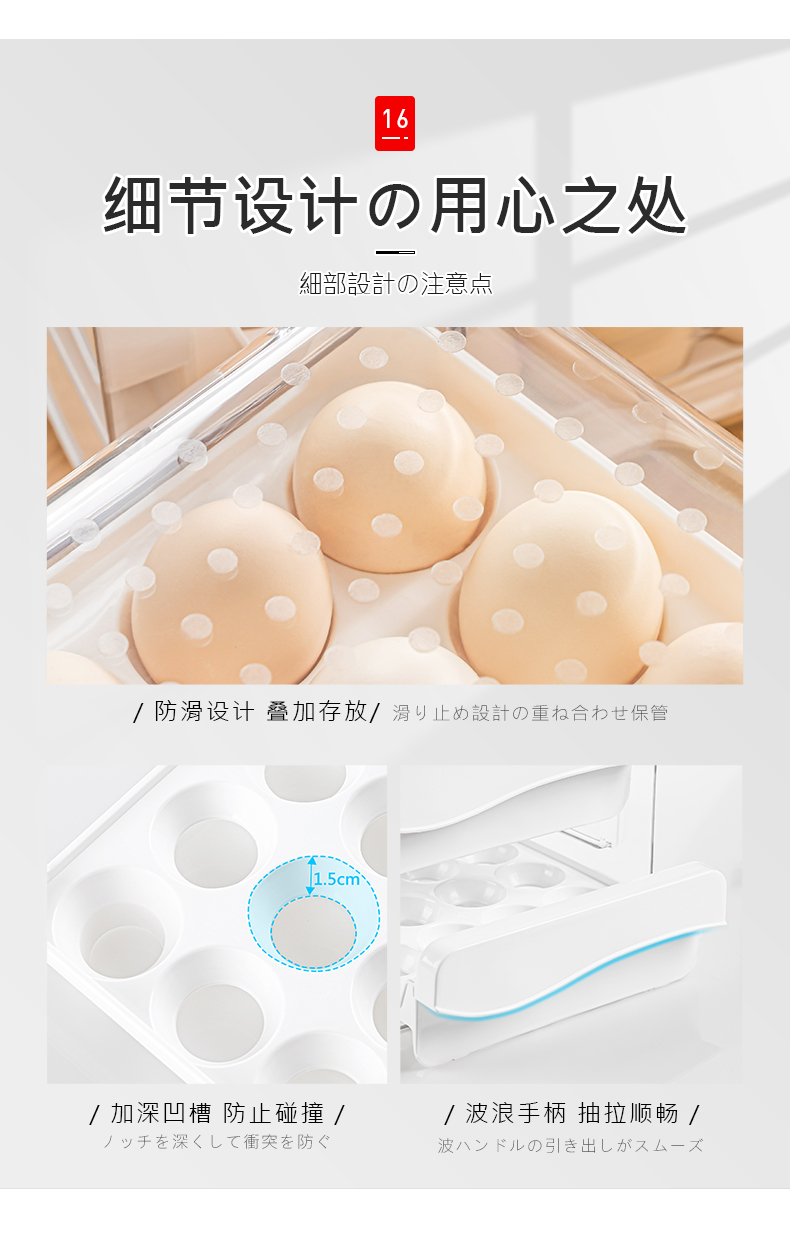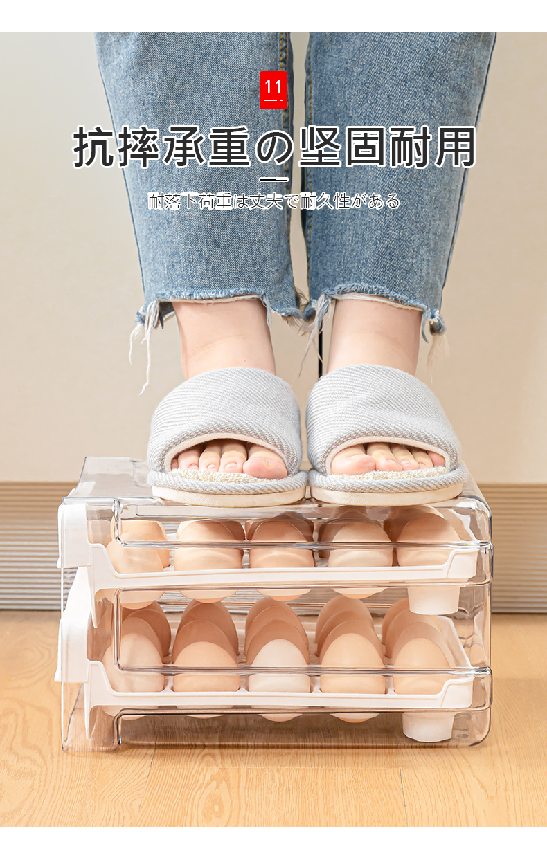 日本鸡蛋收纳盒冰箱用保鲜盒厨房整理神器抽屉式装放架托蛋盒神器