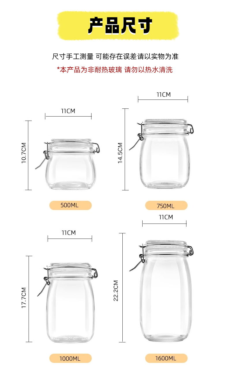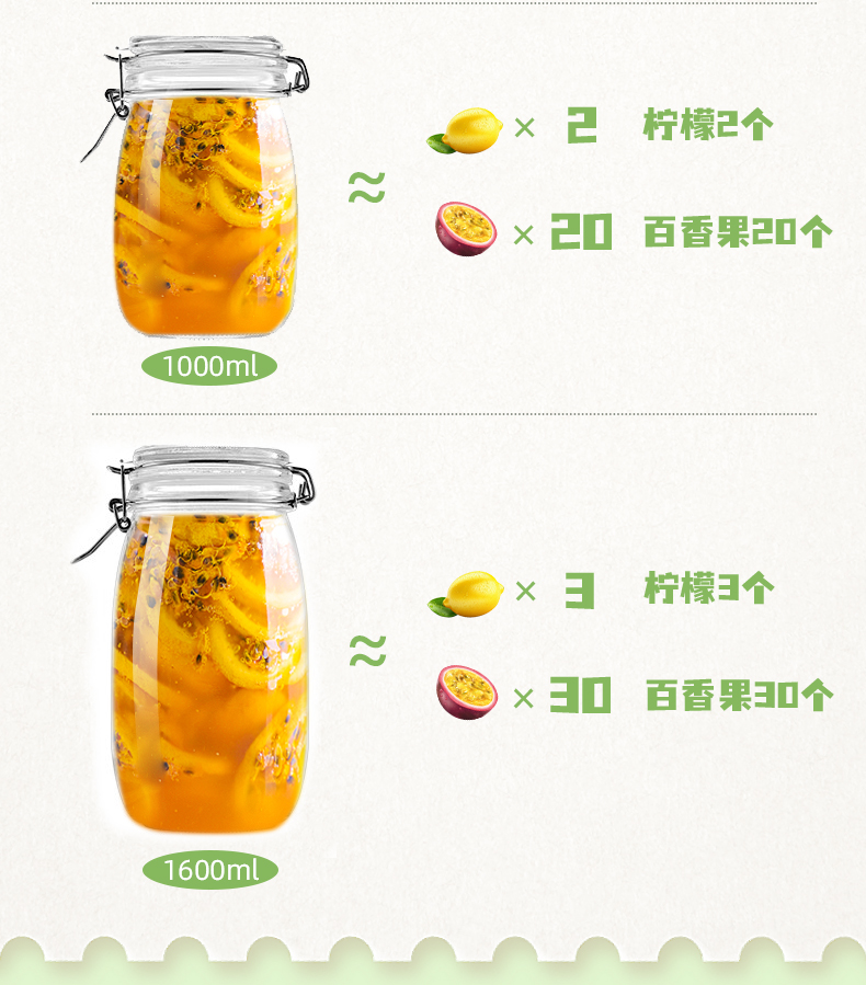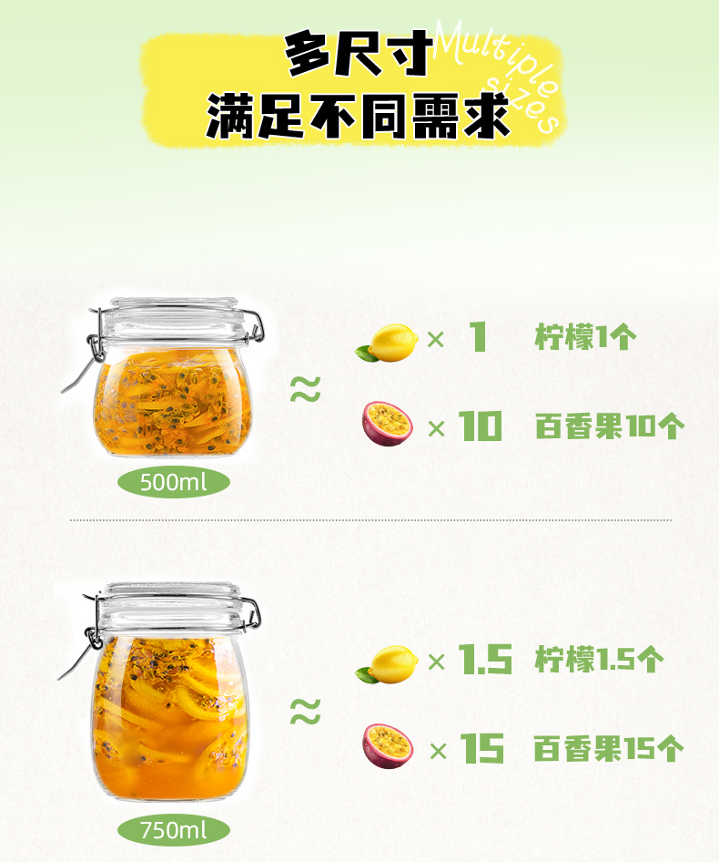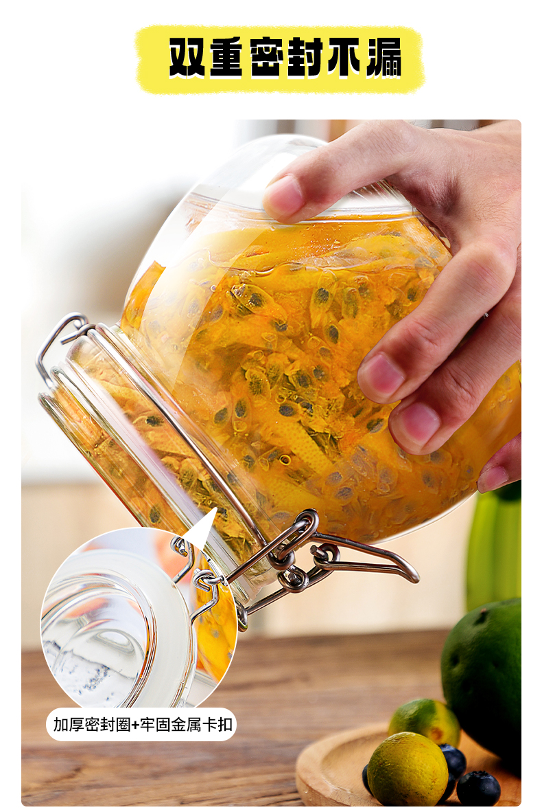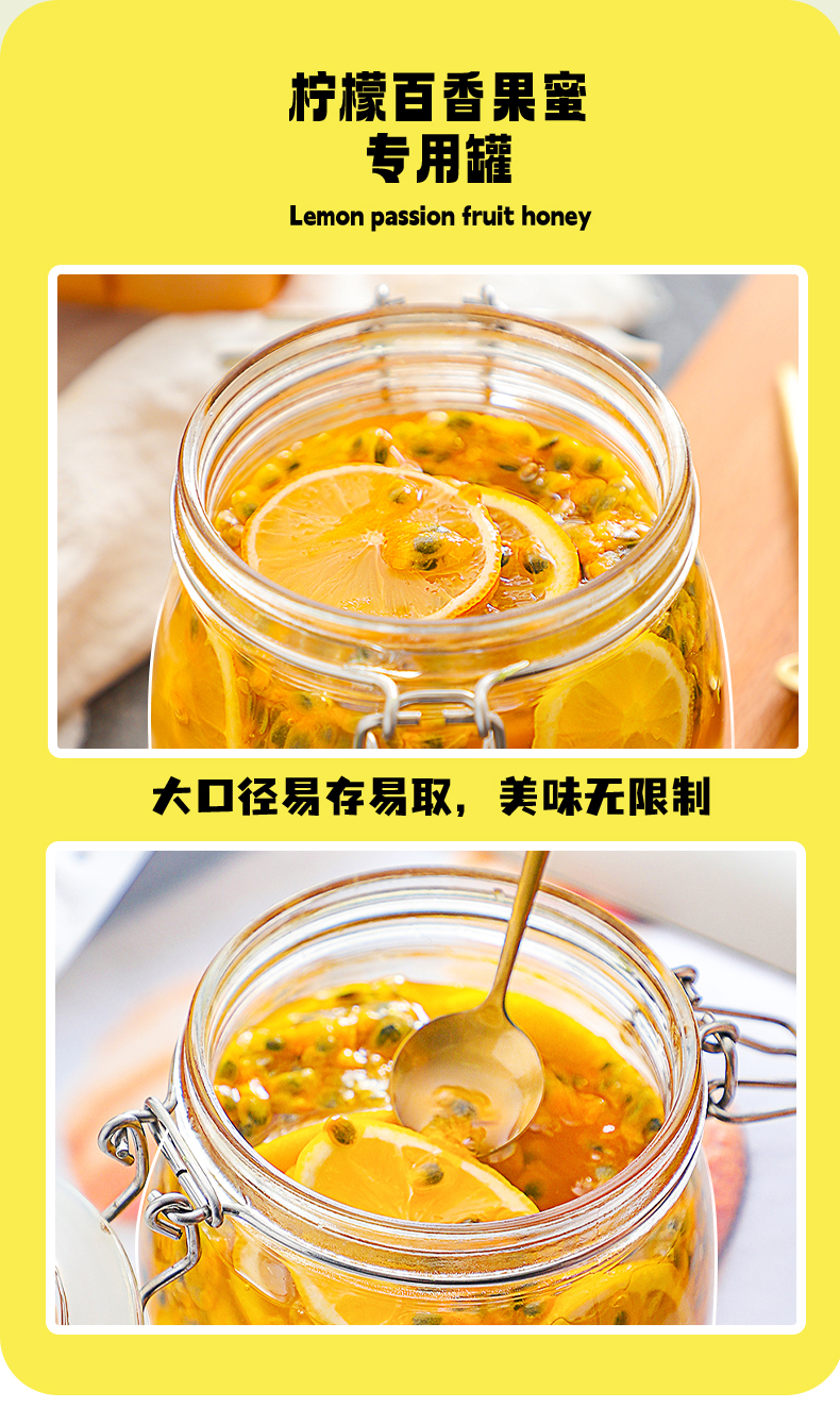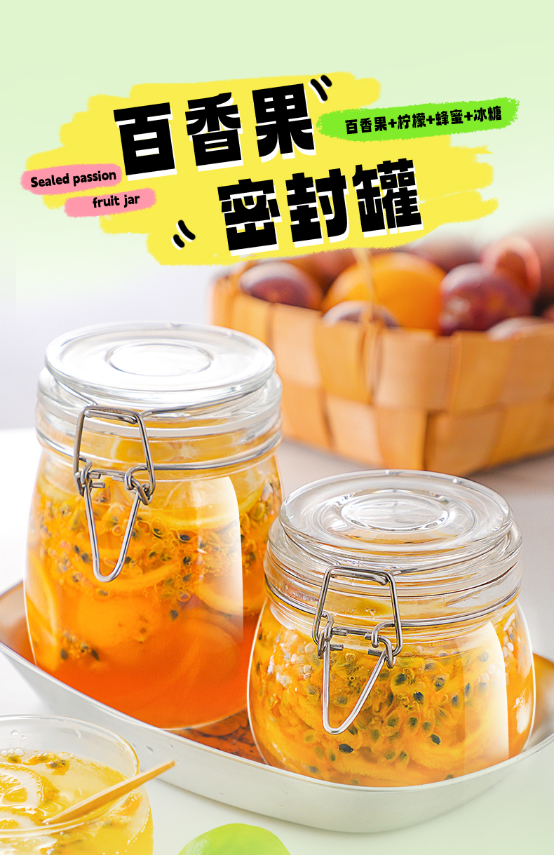 百香果蜂蜜柠檬密封罐玻璃食品级储物罐专用泡果酒装泡菜黄桃空瓶