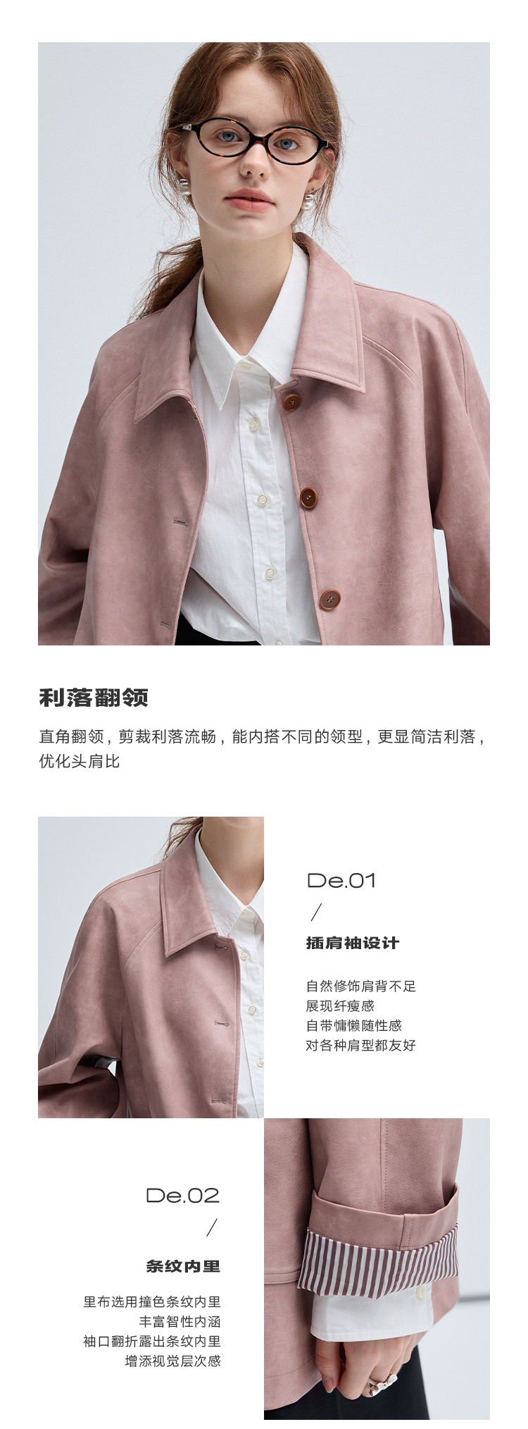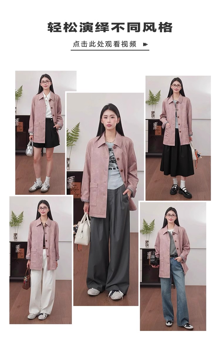 粉色皮衣女款2025年新款秋季美式复古中长款粉调PU皮外套