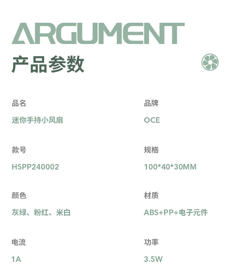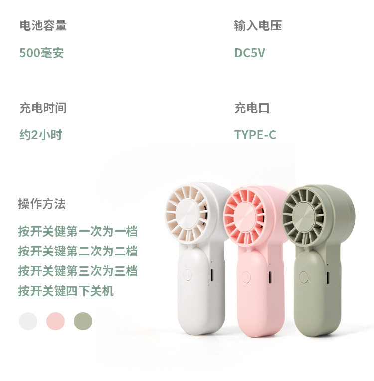 OCE手持小风扇静音办公室桌上迷你小型家用随身充电款便携式桌面