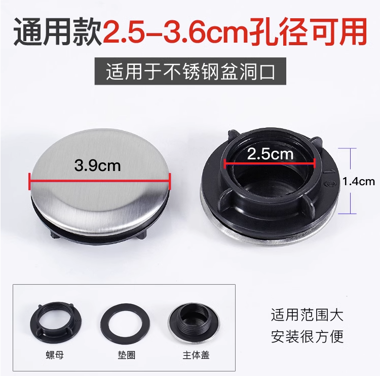 洗菜盆堵口盖洗手盆不锈钢盖帽水龙头装饰盖皂液器洗脸盆装饰盖子