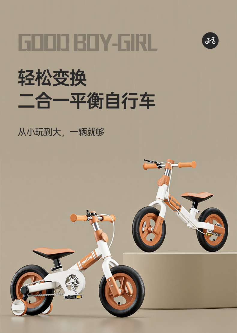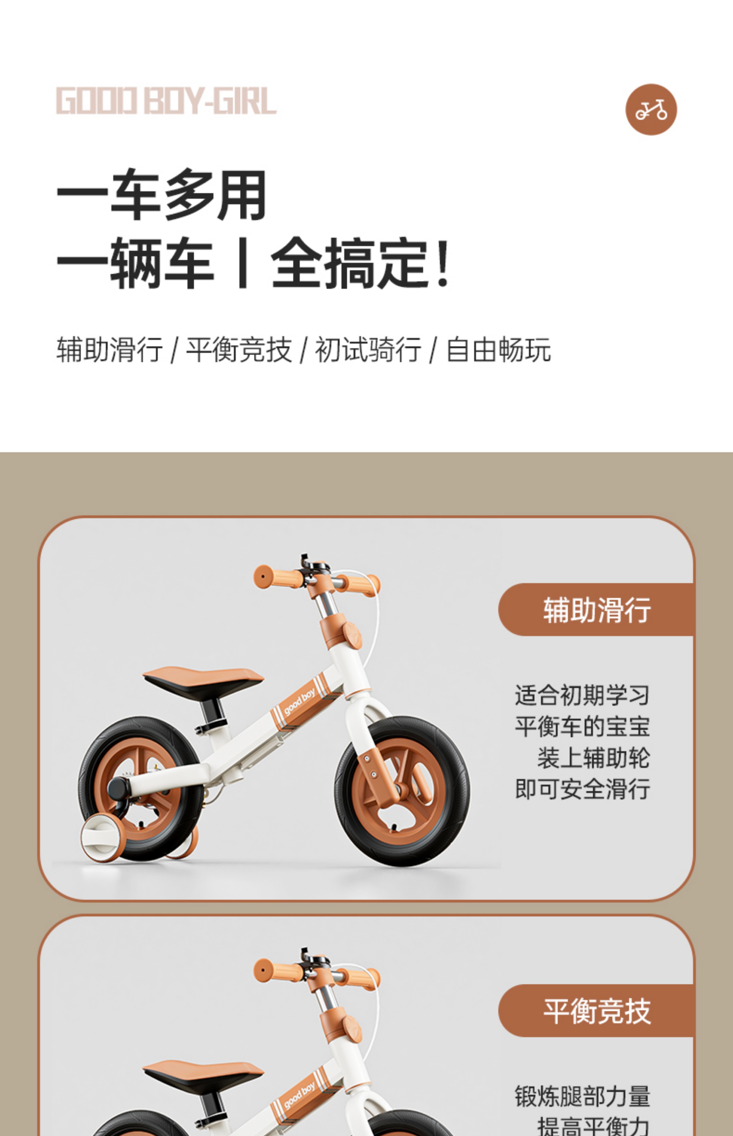 儿童平衡车自行车二合一1一3一6岁脚踏车2宝宝轻便单车男孩女童车