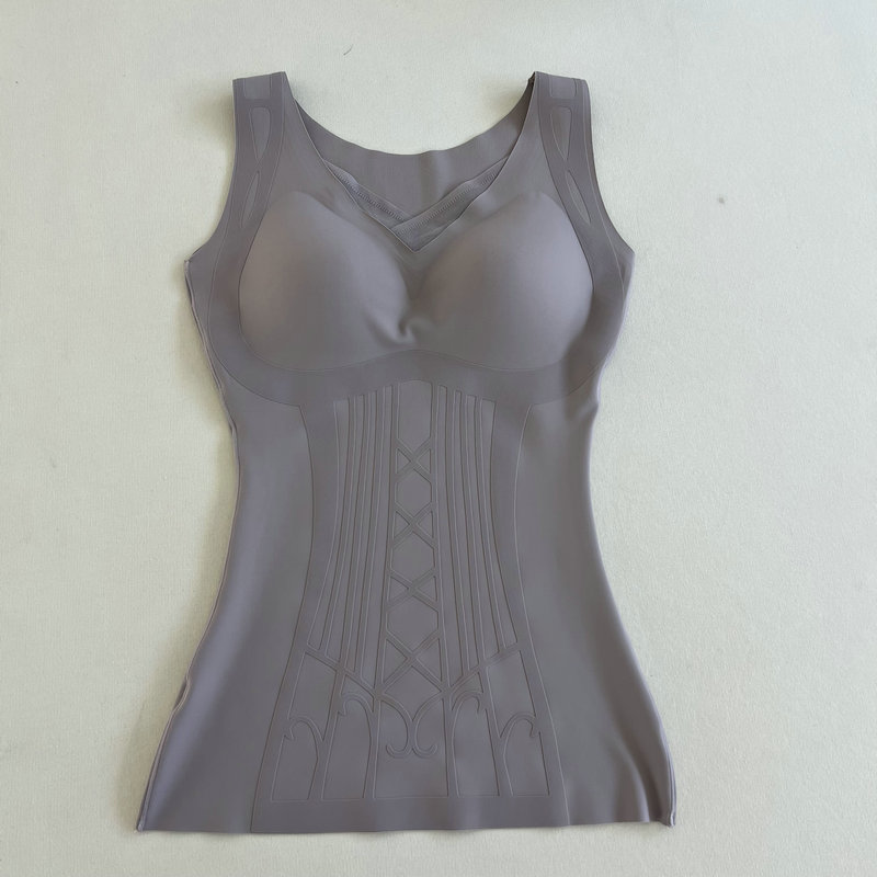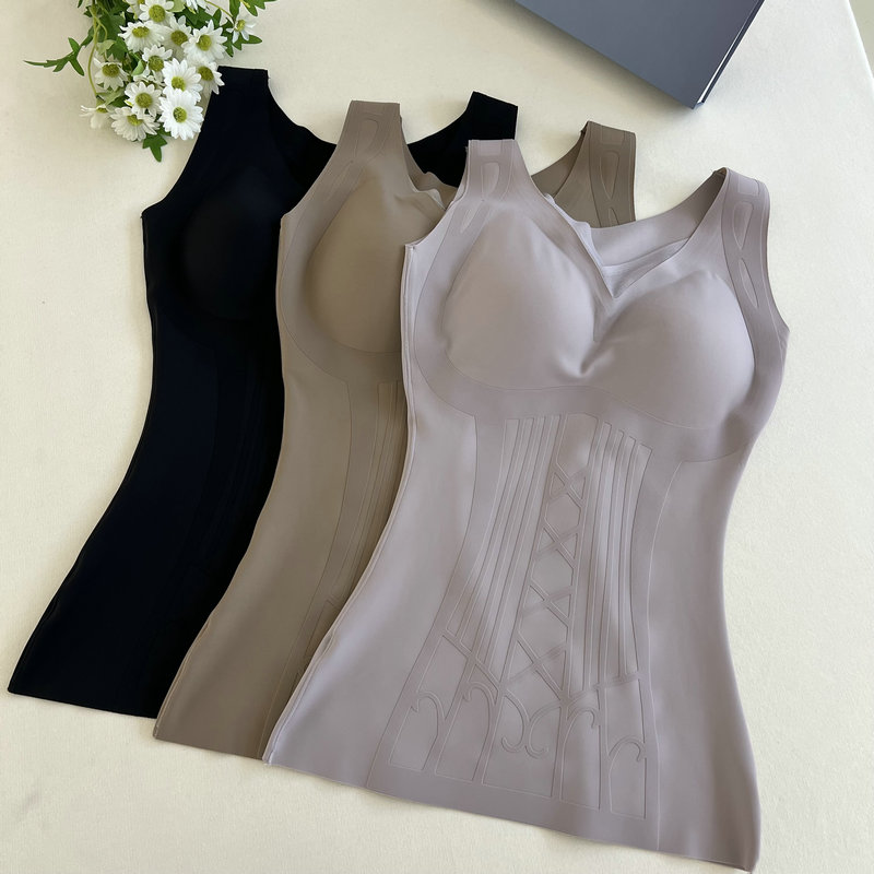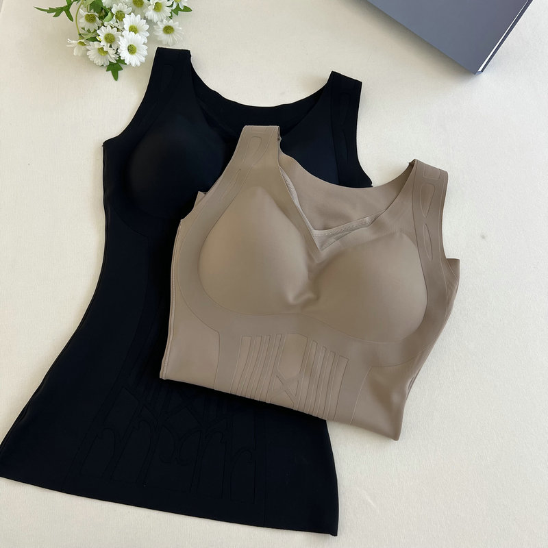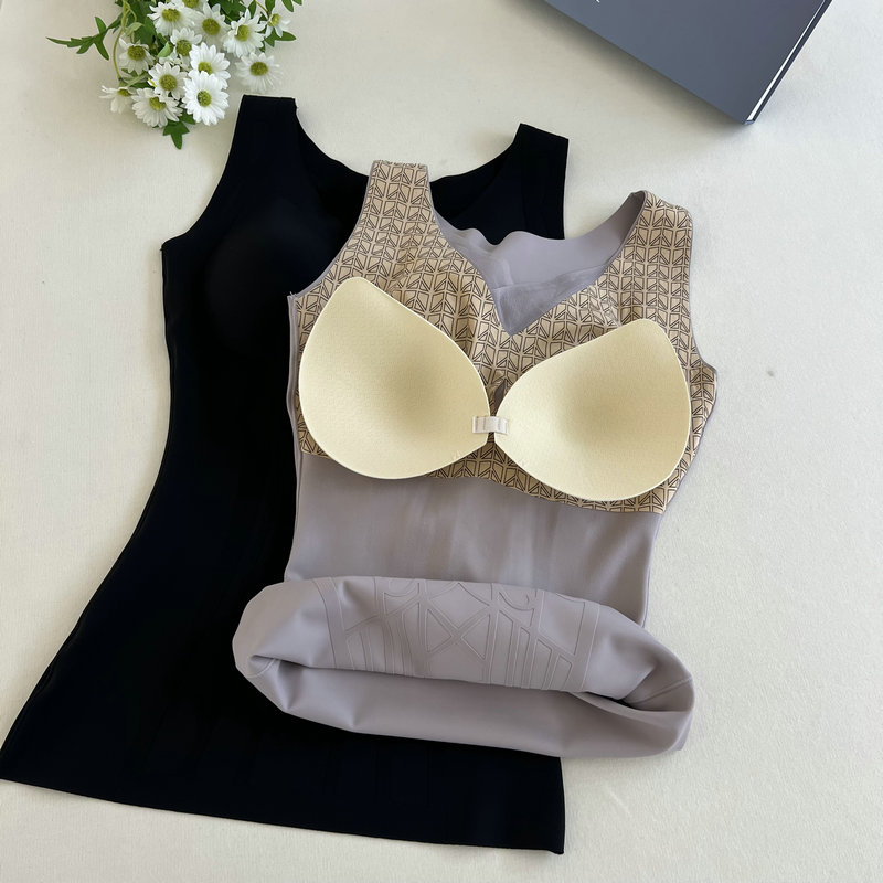 2024年冬季新款单层磨毛保暖背心雕花塑身美体打底上衣女带杯垫