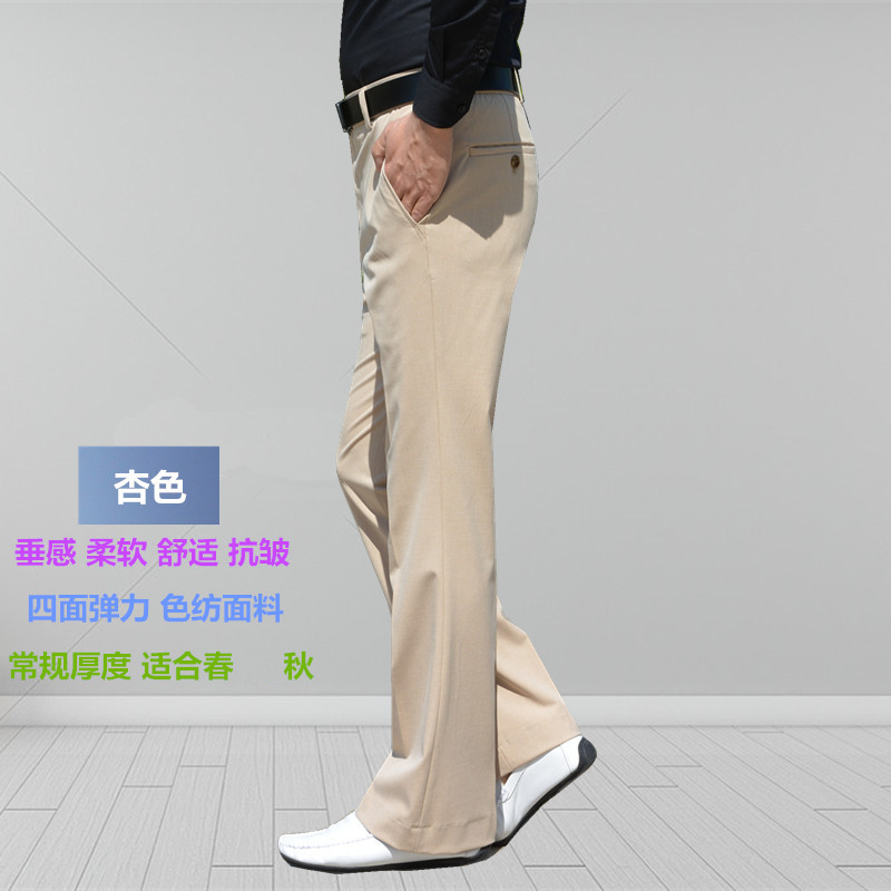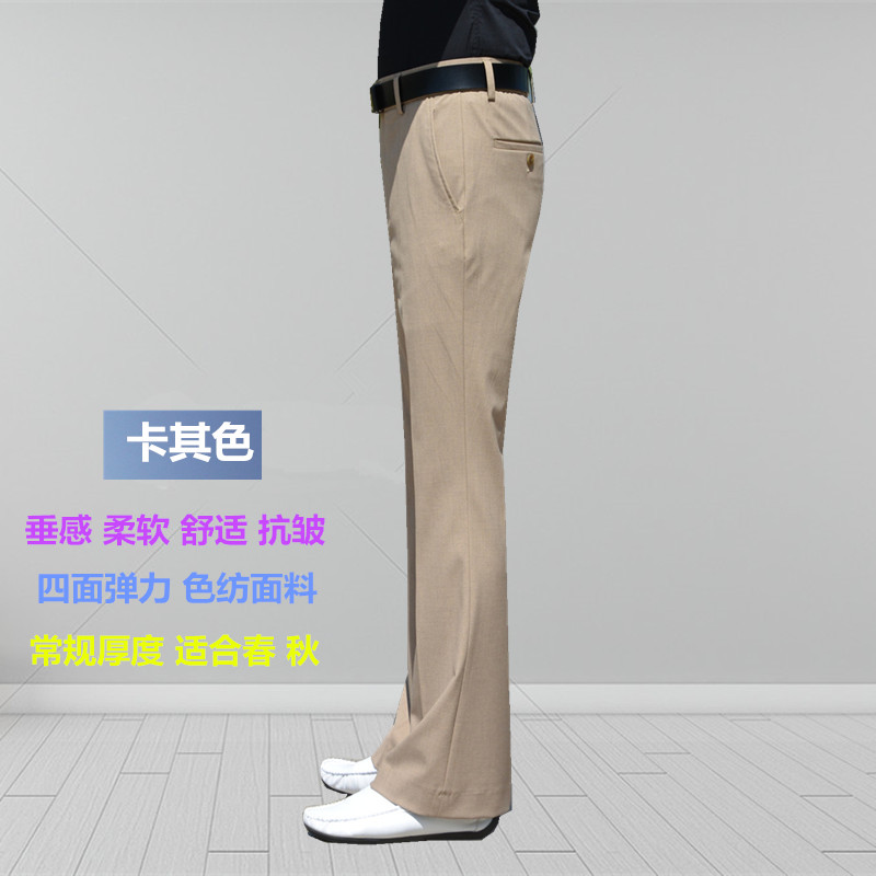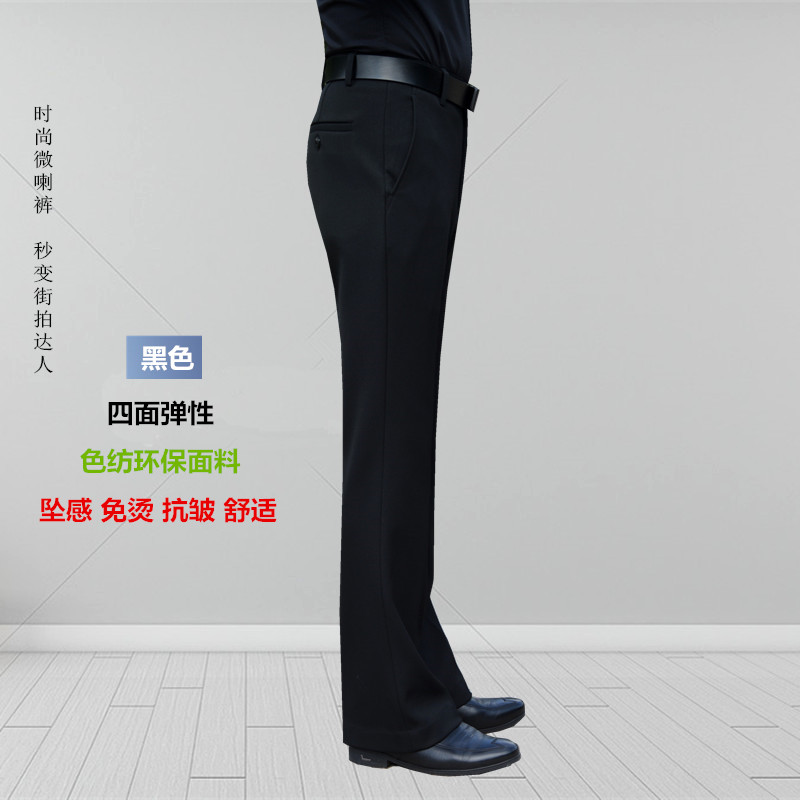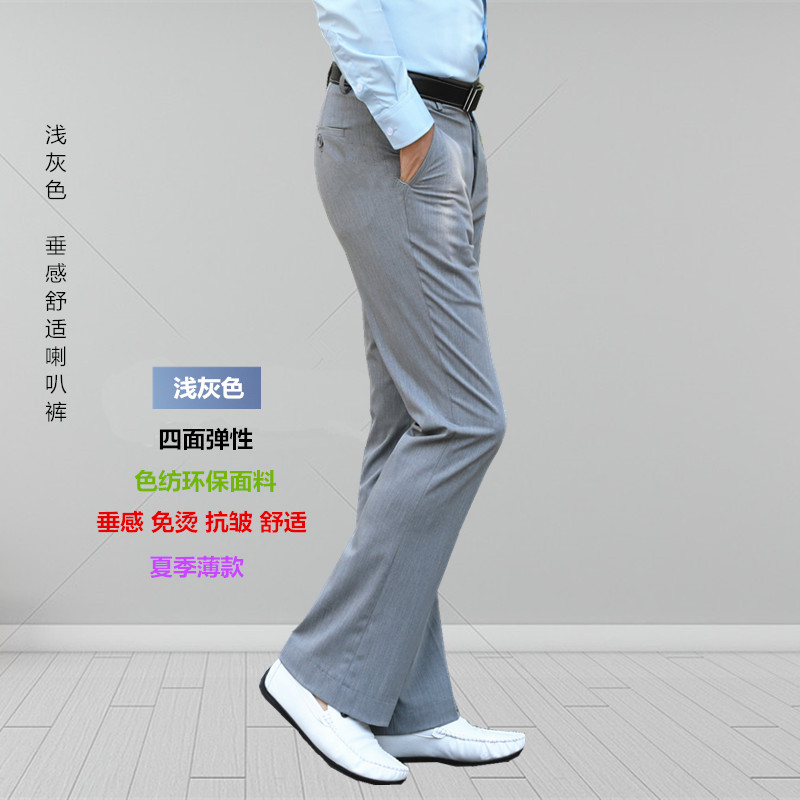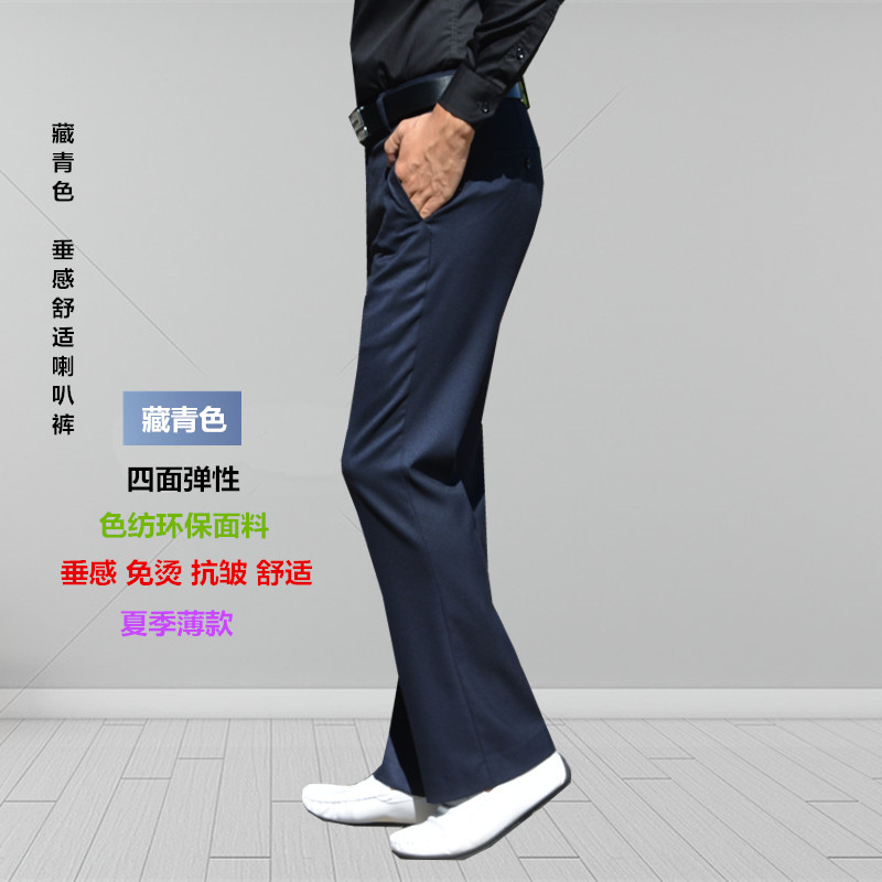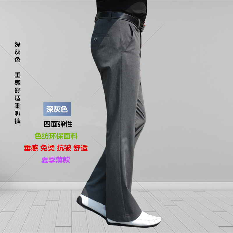 春夏微喇叭裤男垂感弹力阔腿裤免烫修身西裤宽松复古直筒休闲裤子