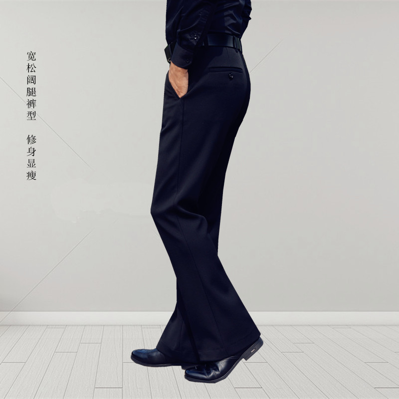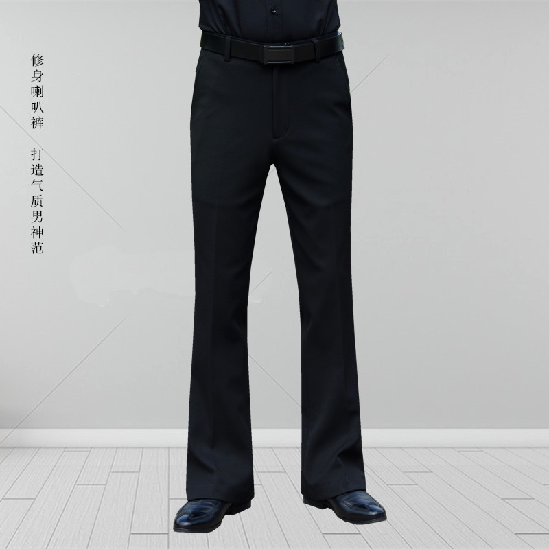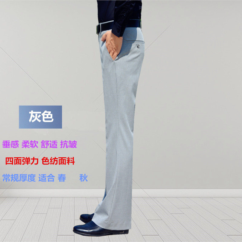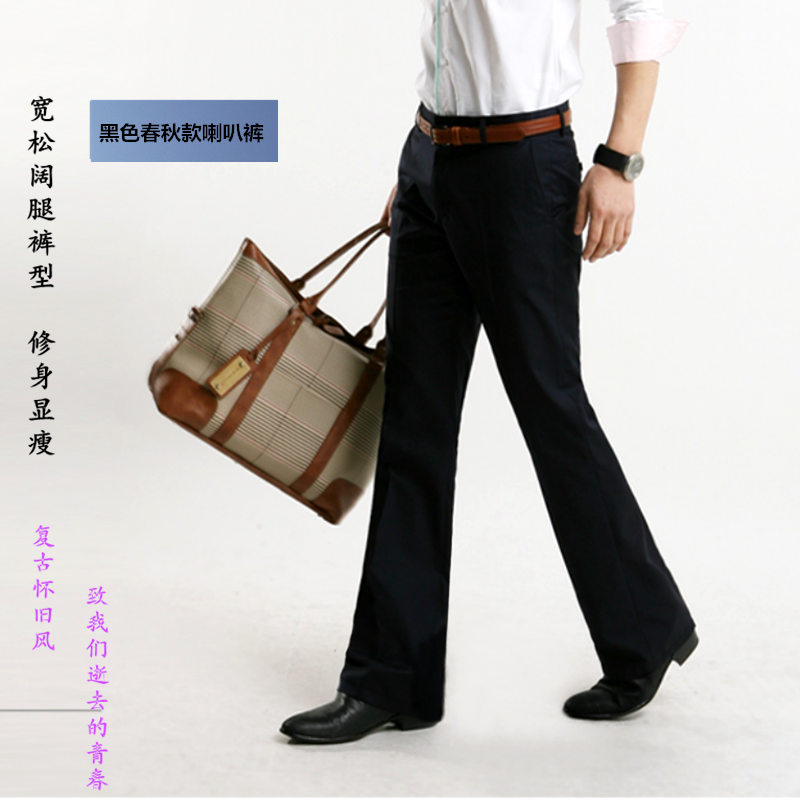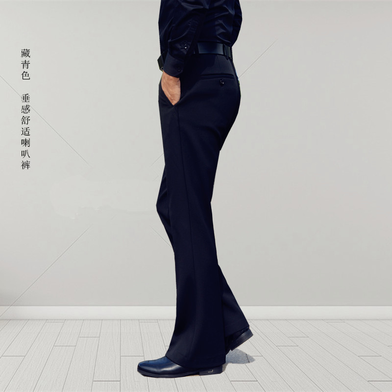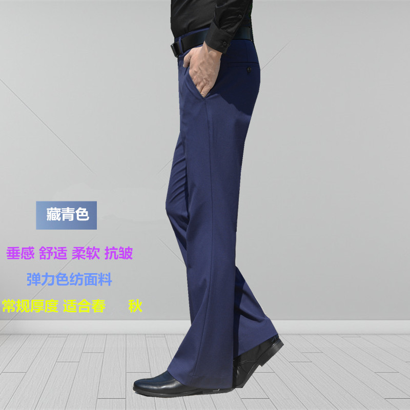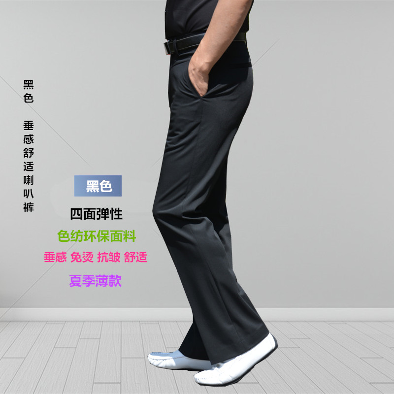 春夏微喇叭裤男垂感弹力阔腿裤免烫修身西裤宽松复古直筒休闲裤子