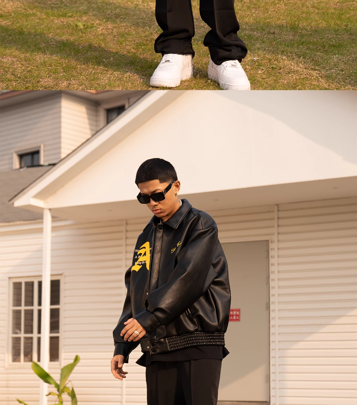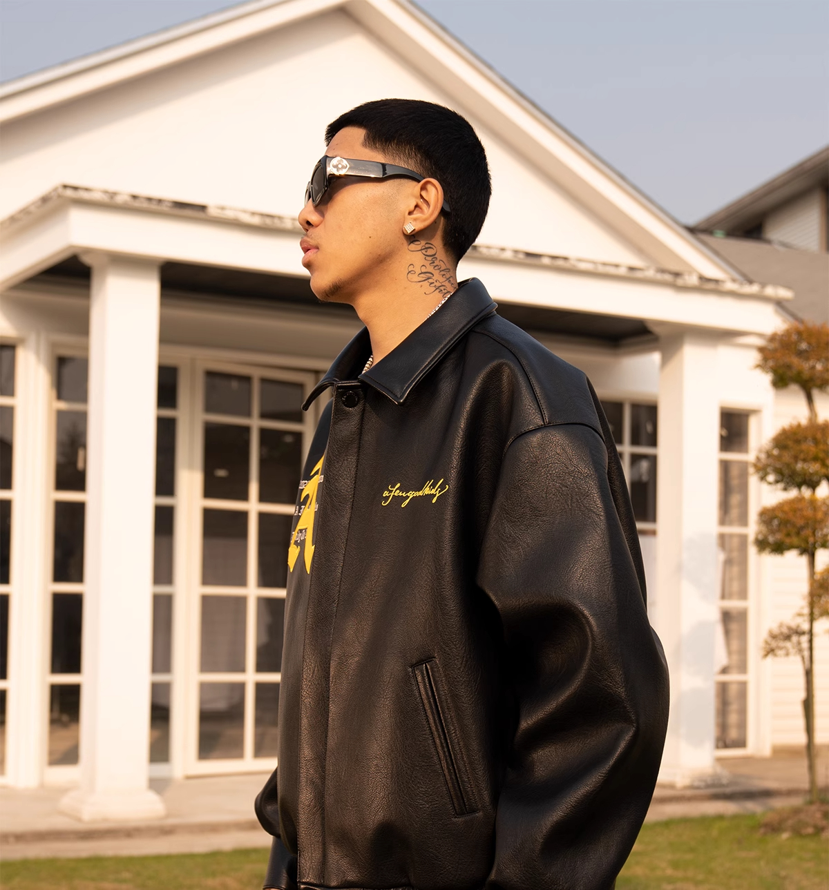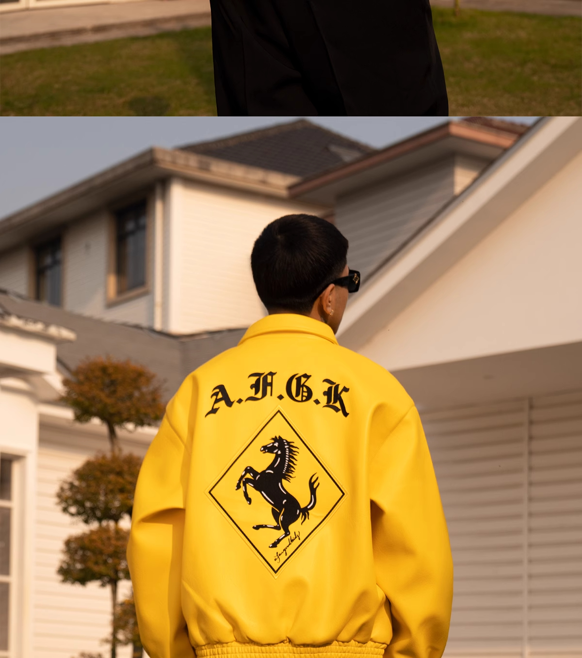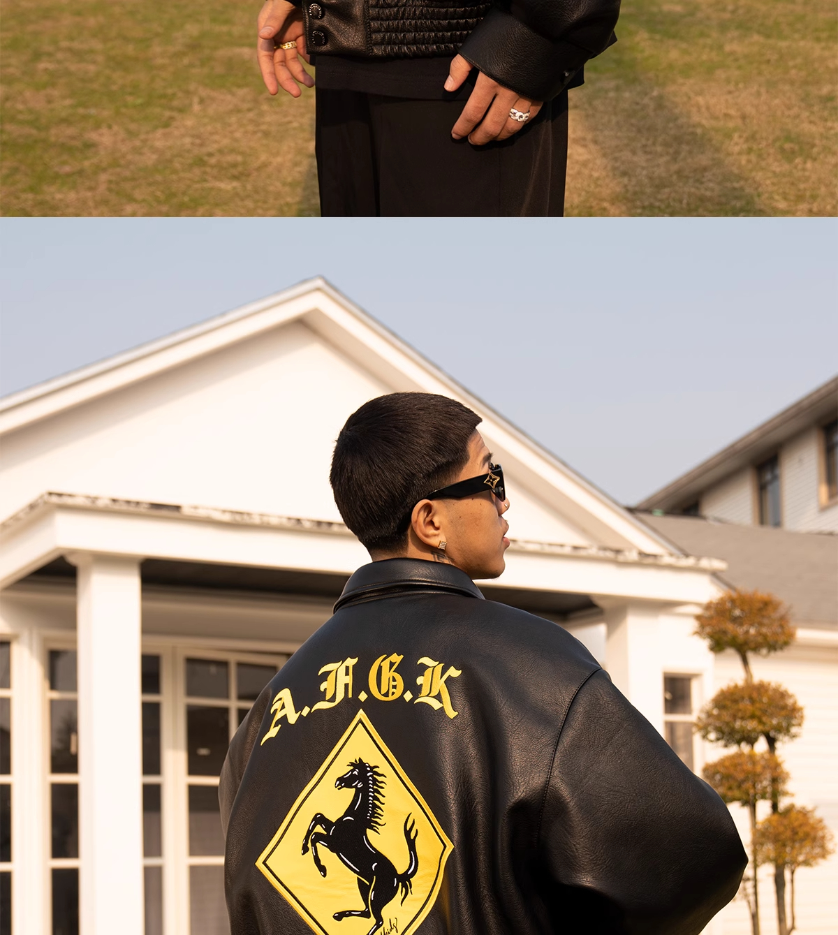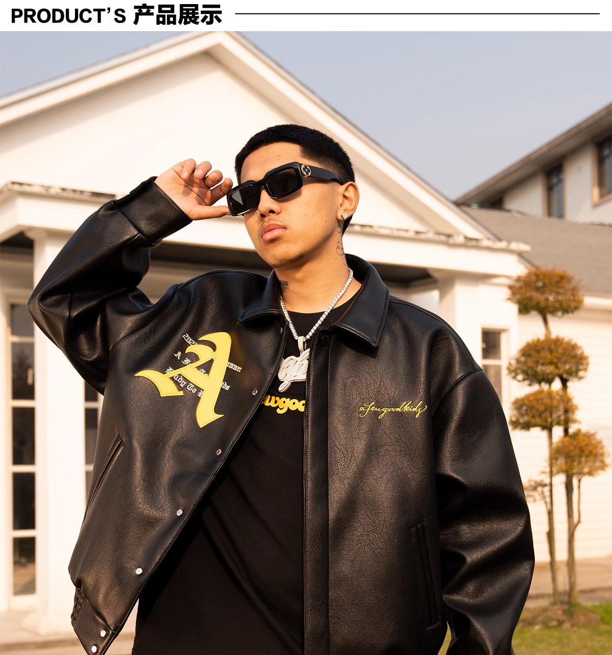 FFF官方AFGK秋冬黑色机车国潮皮衣男士美式街头刺绣皮夹克男外套