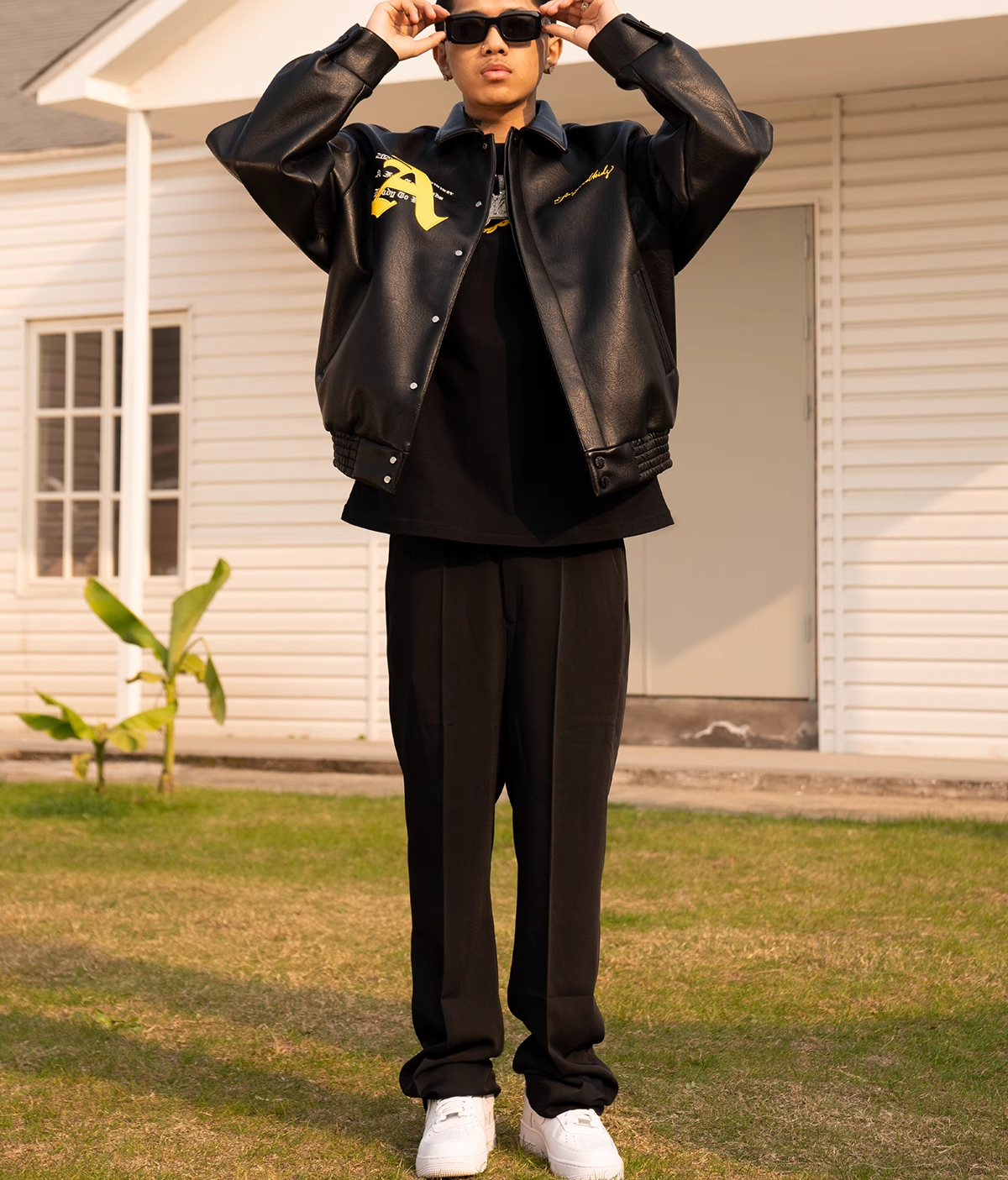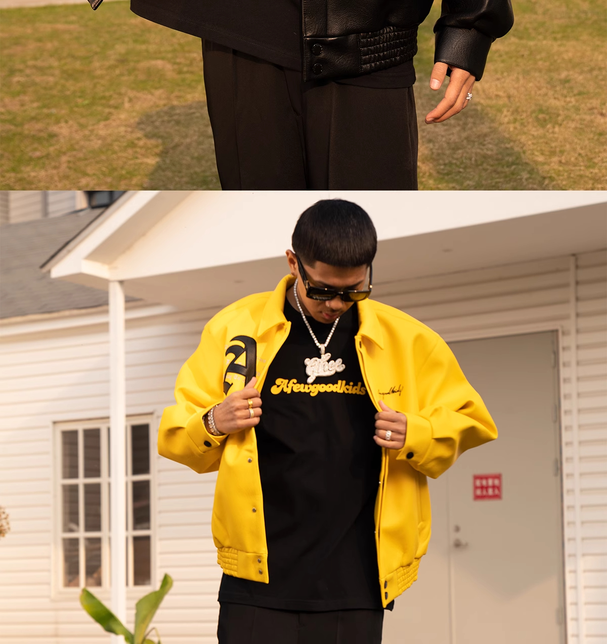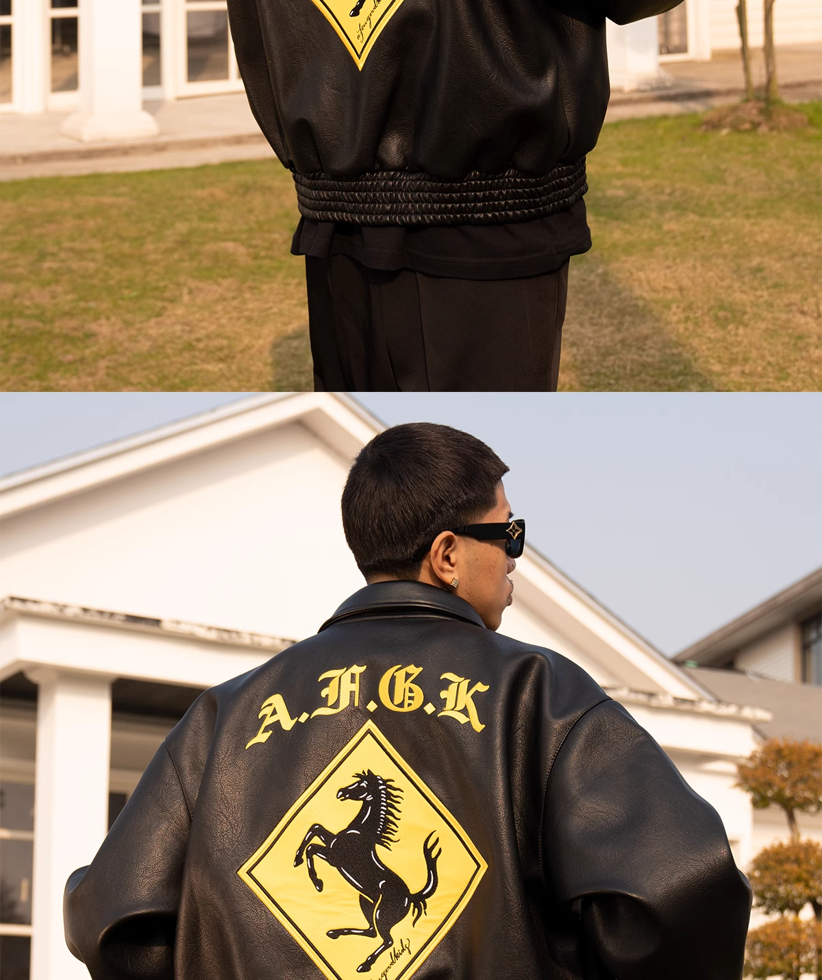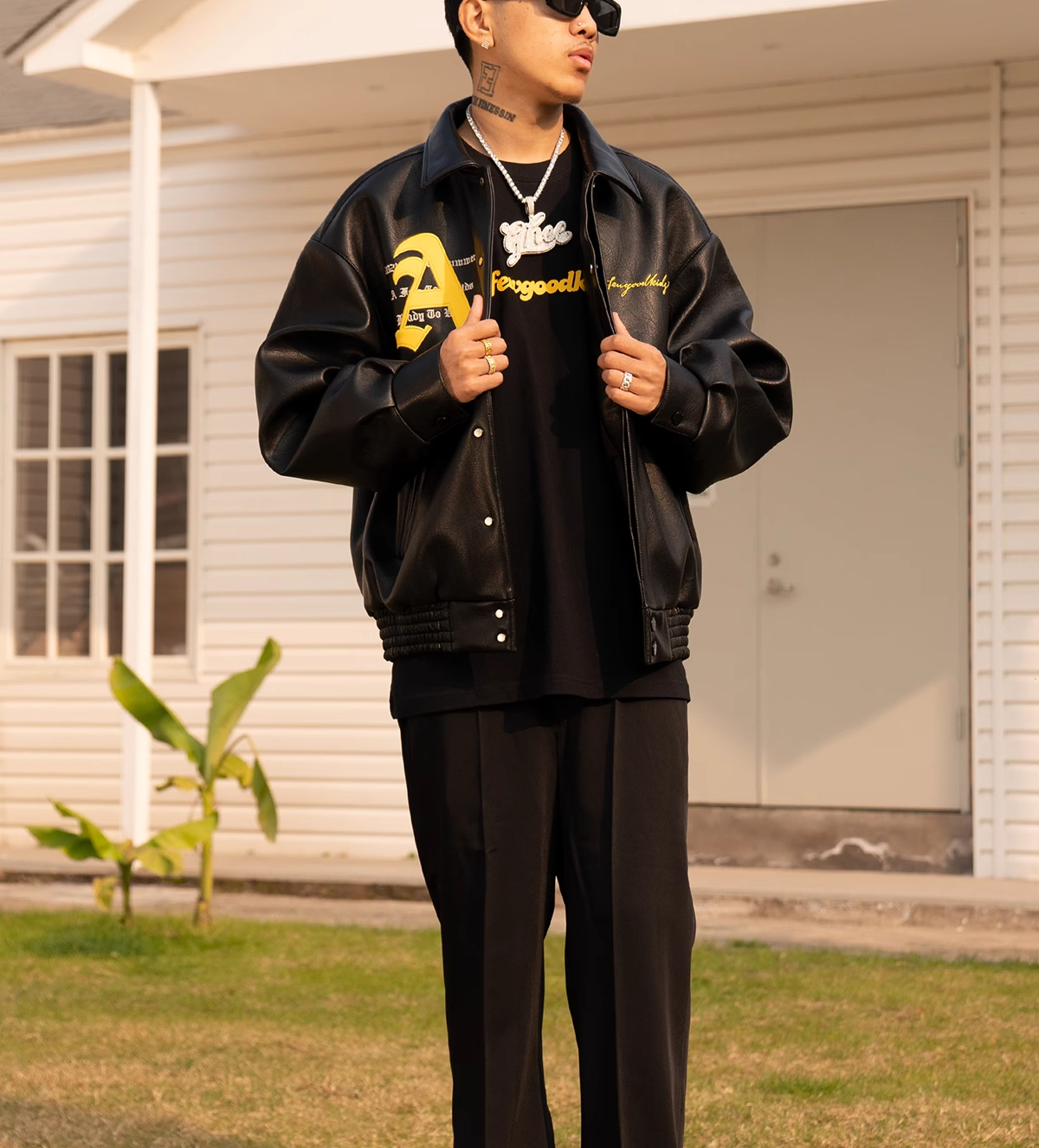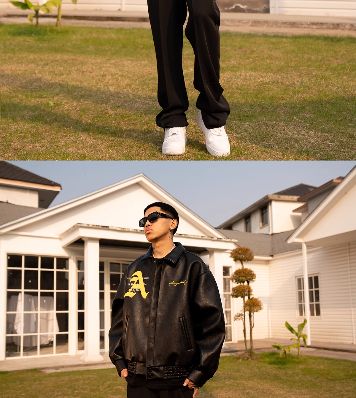 FFF官方AFGK秋冬黑色机车国潮皮衣男士美式街头刺绣皮夹克男外套