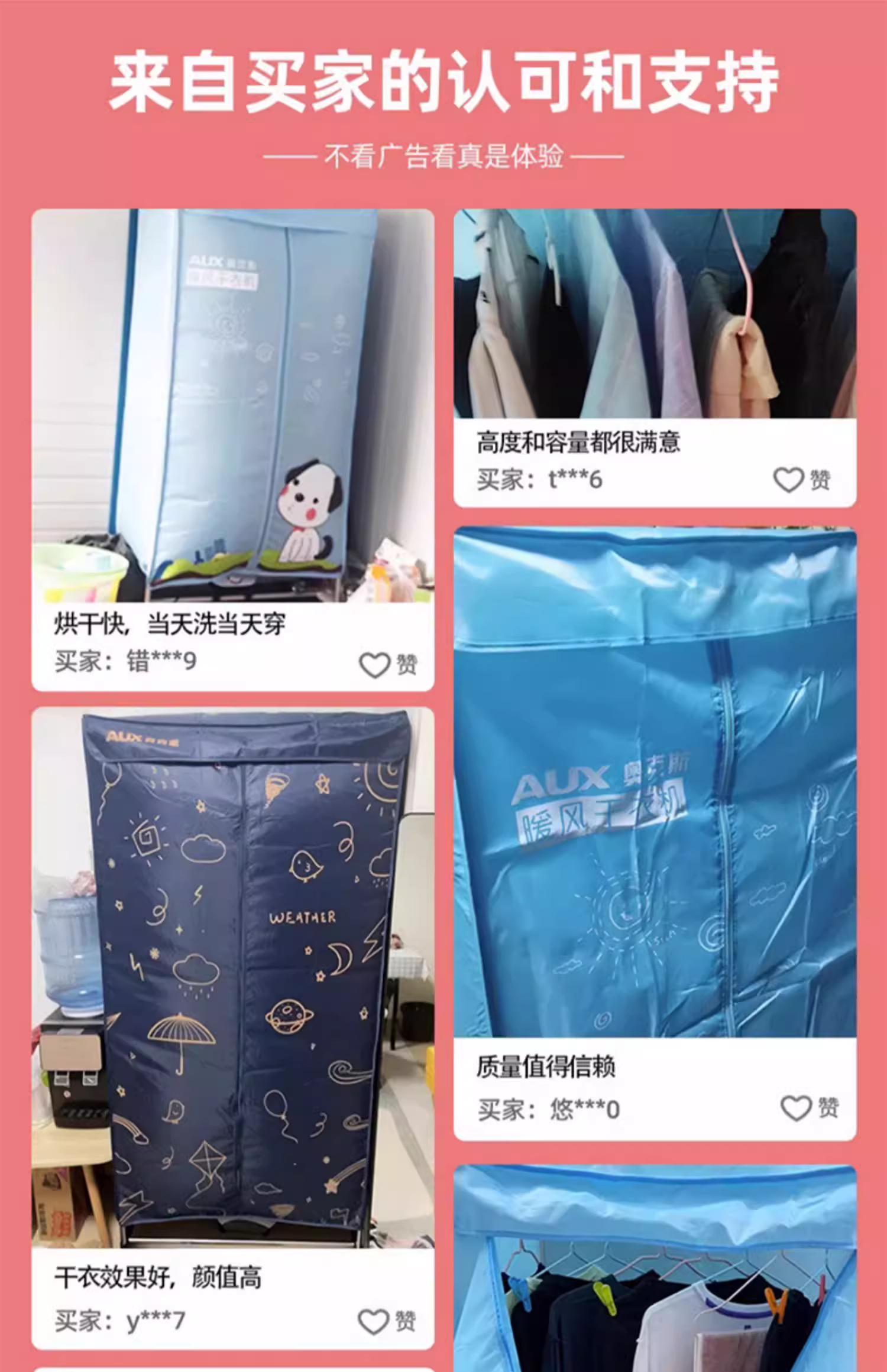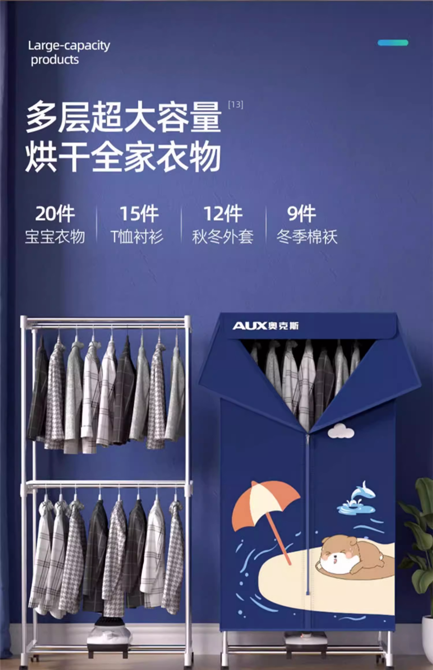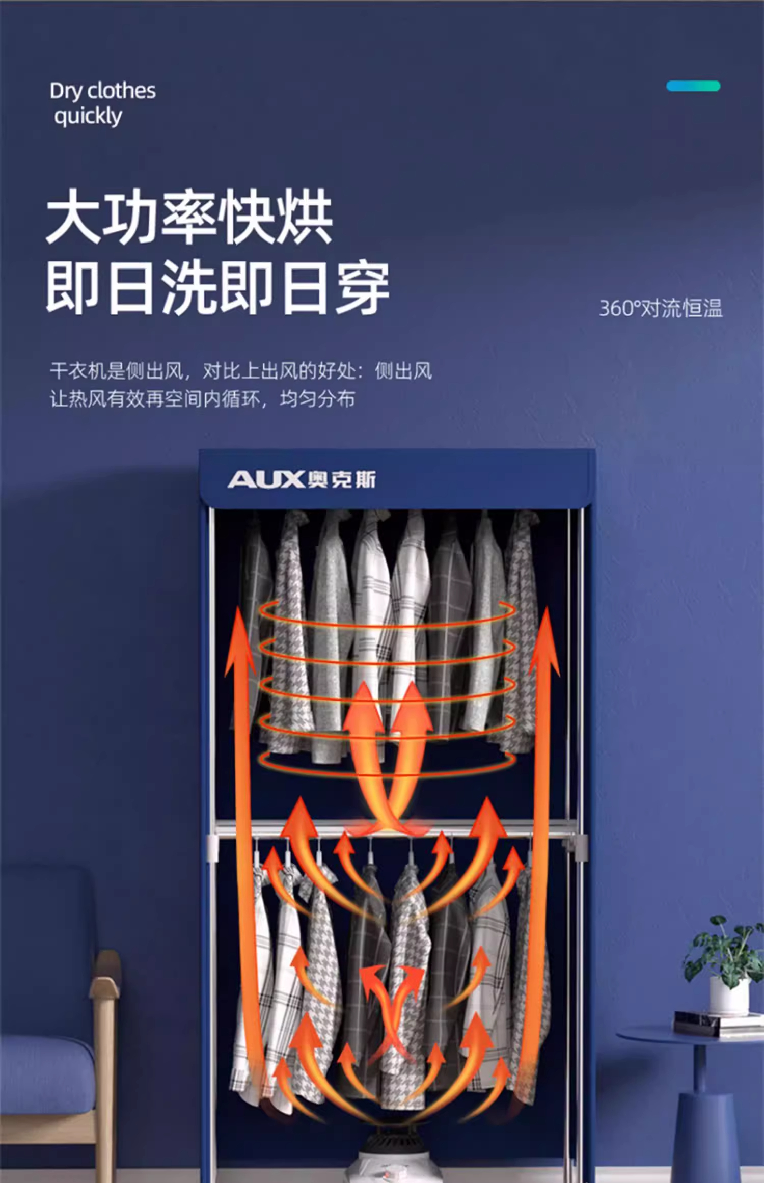 奥克斯干衣机烘干家用烘衣服小型宿舍家庭风干衣物哄烤器折叠衣柜