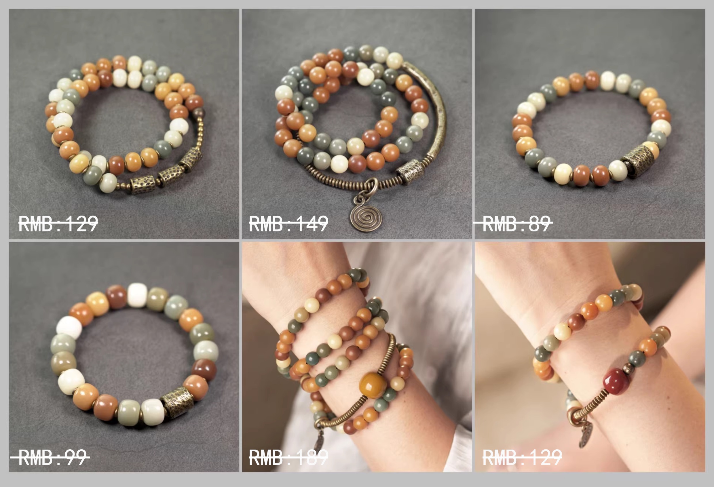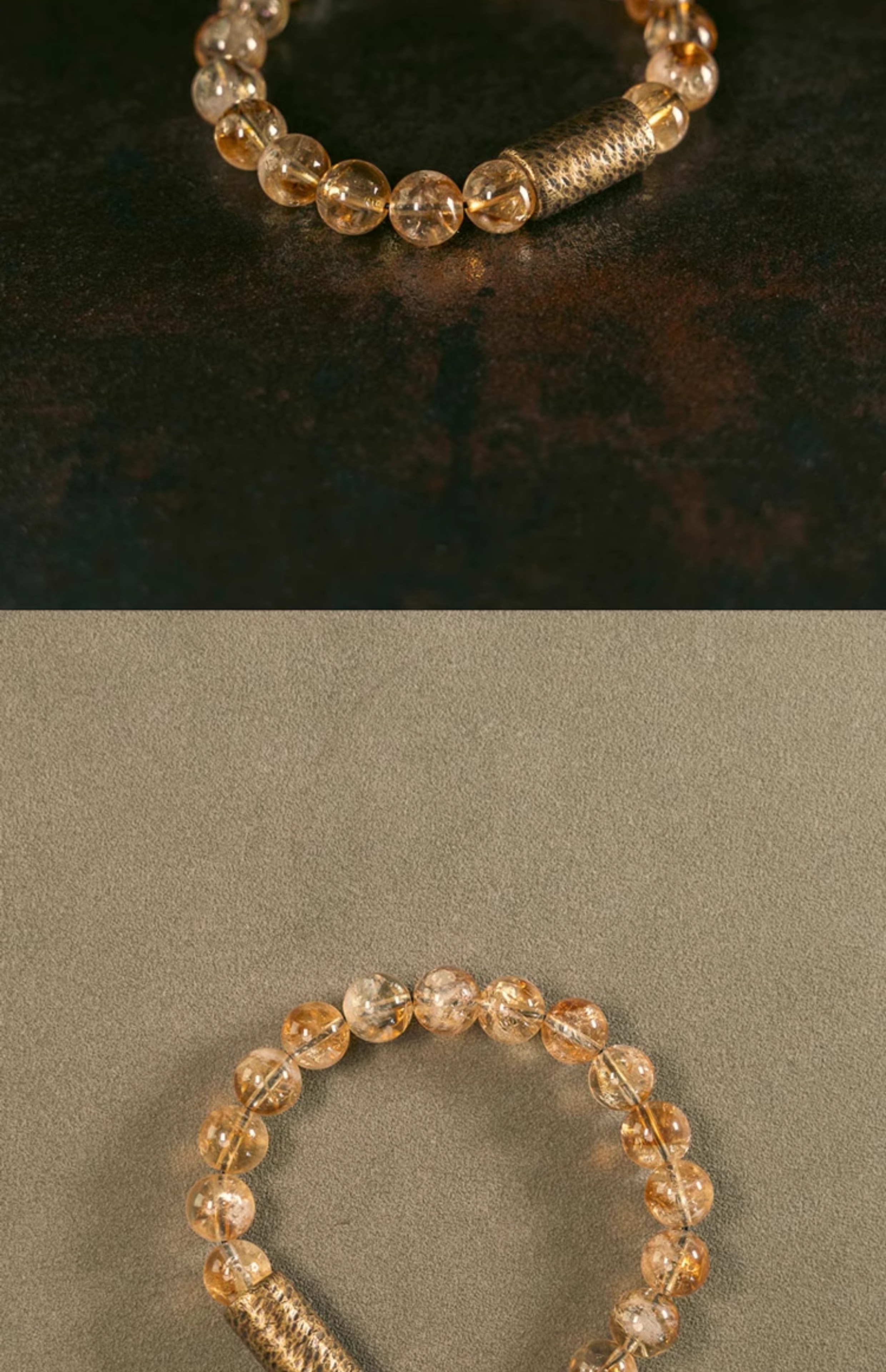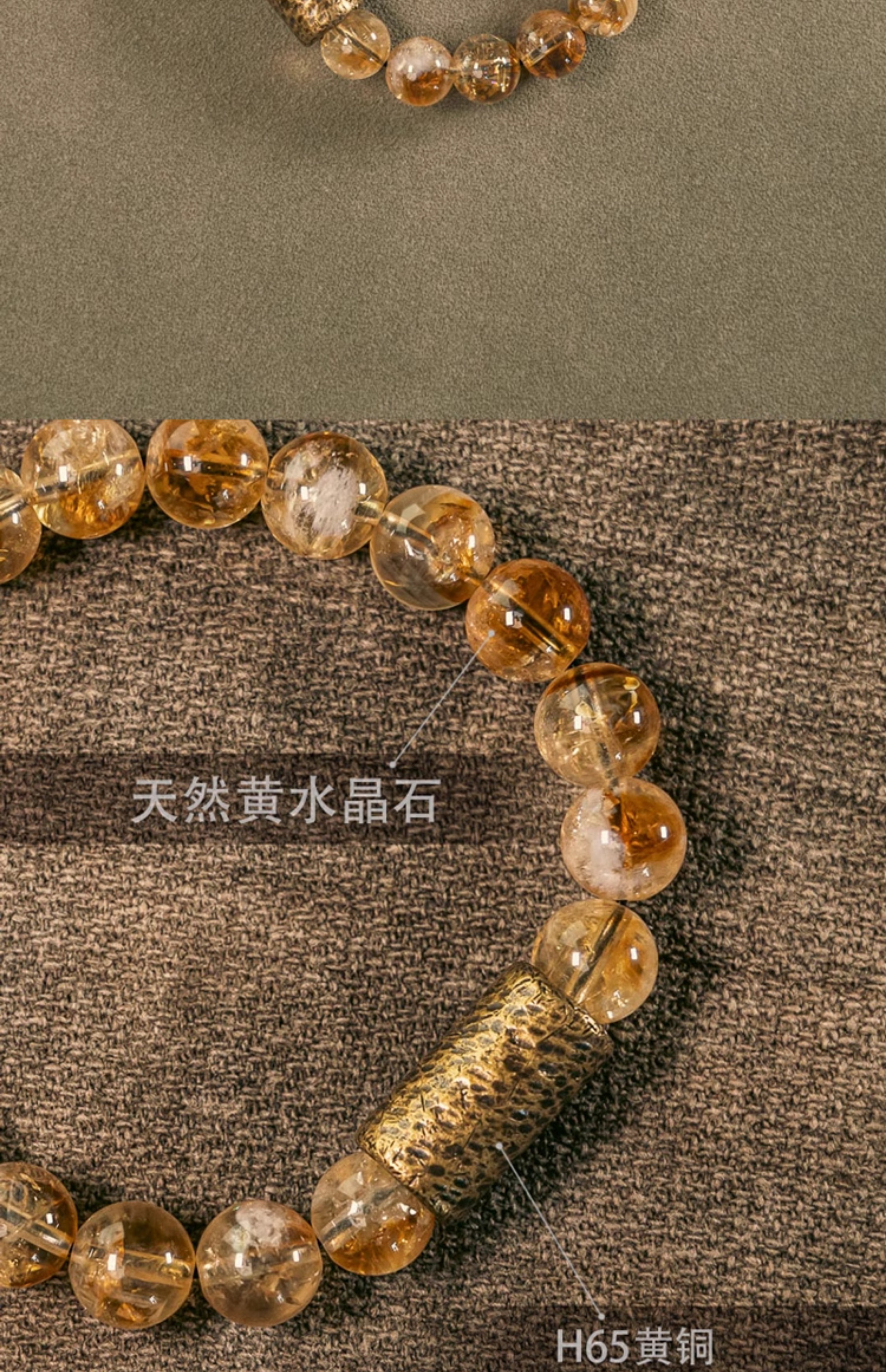 原创个性黄水晶彩晶圆珠手链女 复古设计单圈百搭情侣手串男饰品