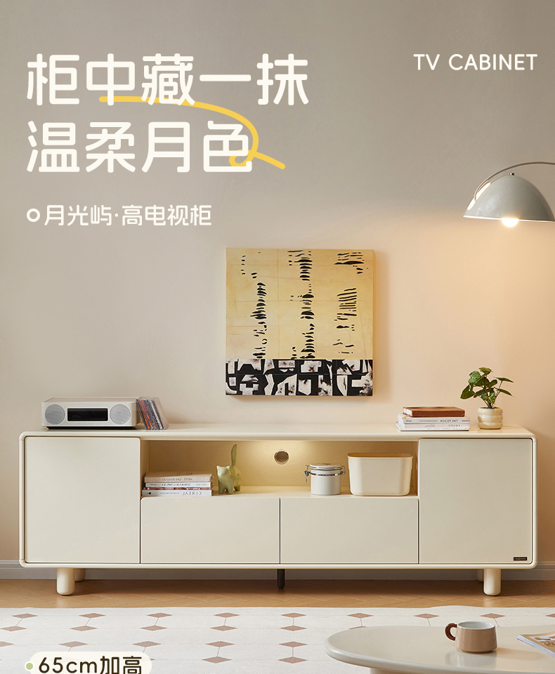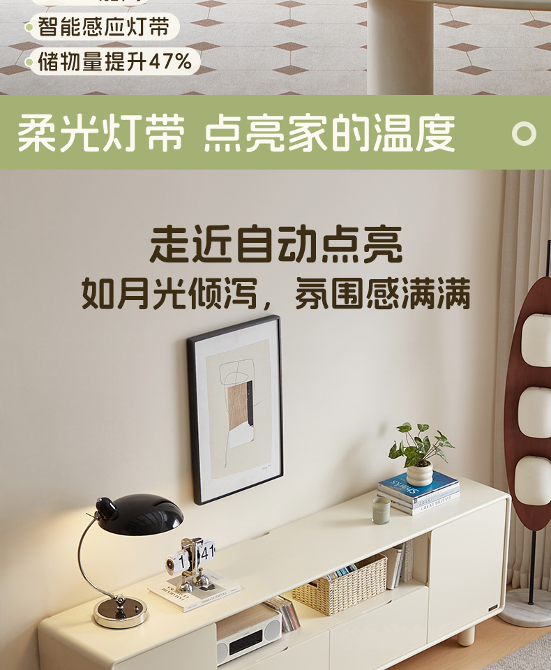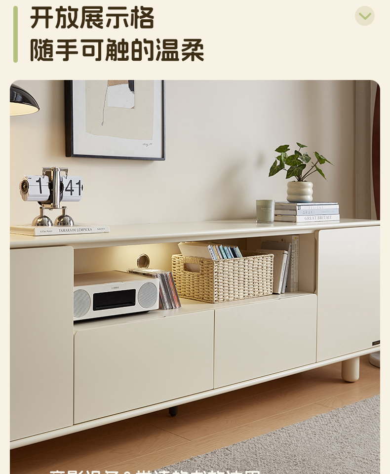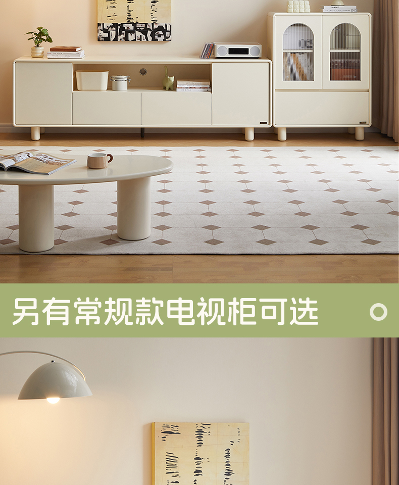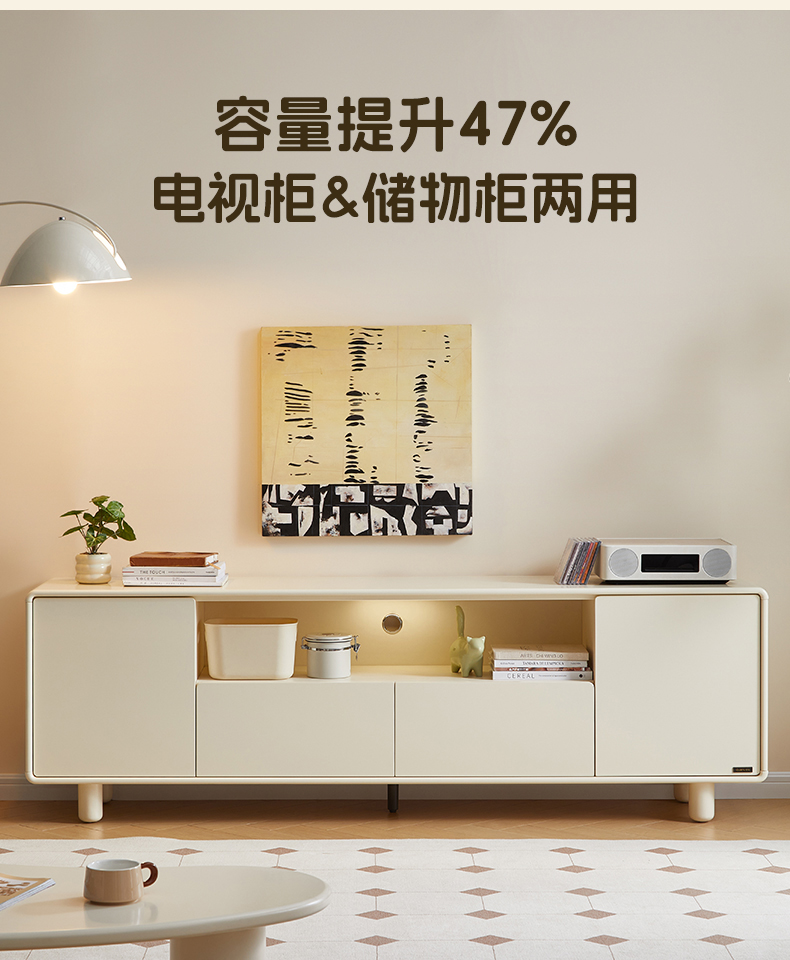 全友家居奶油风智能充电组合电视柜客厅2025新款收纳储物柜一体