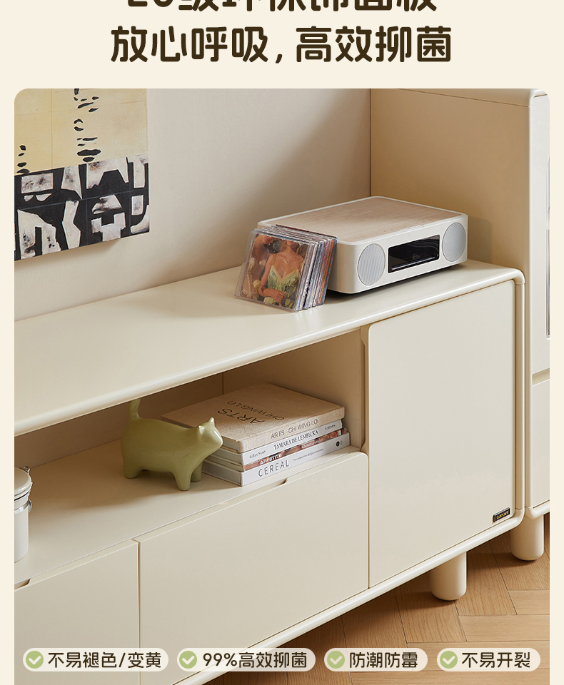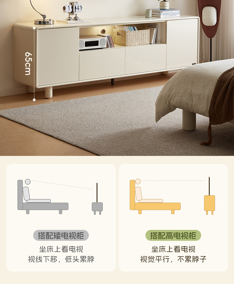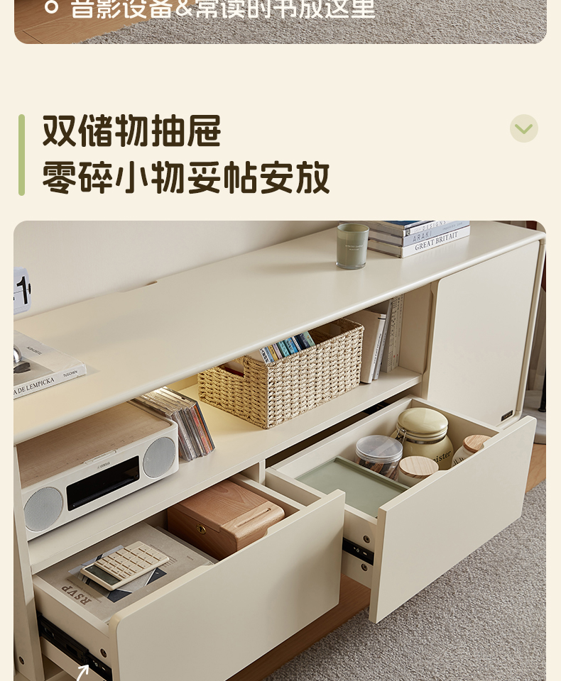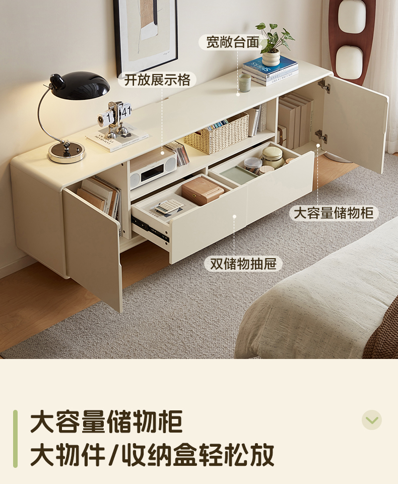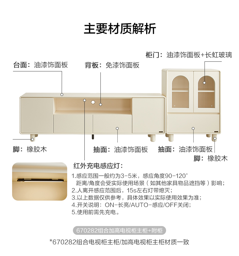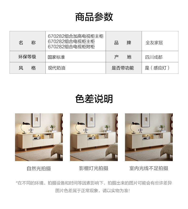 全友家居奶油风智能充电组合电视柜客厅2025新款收纳储物柜一体