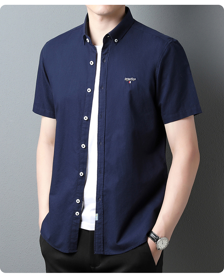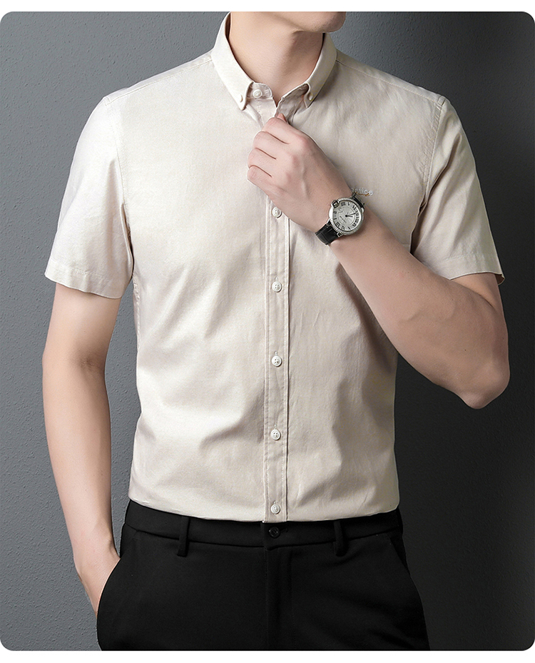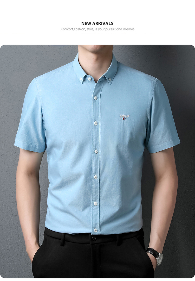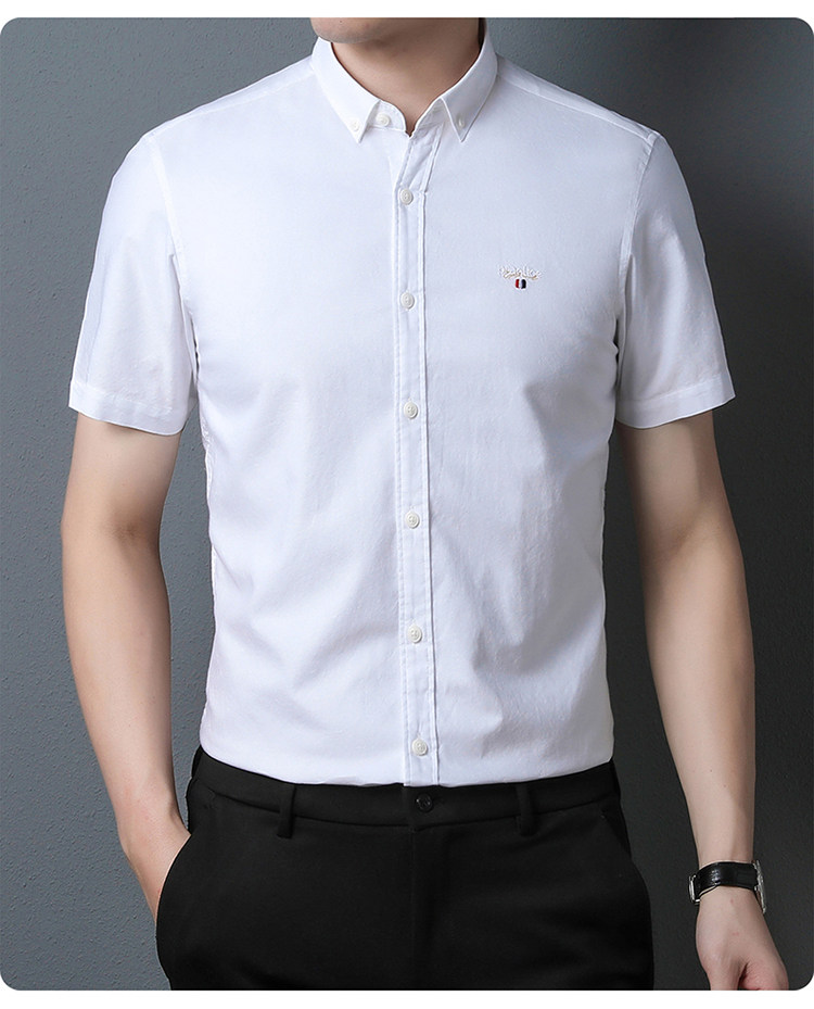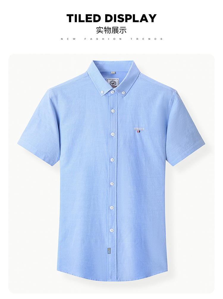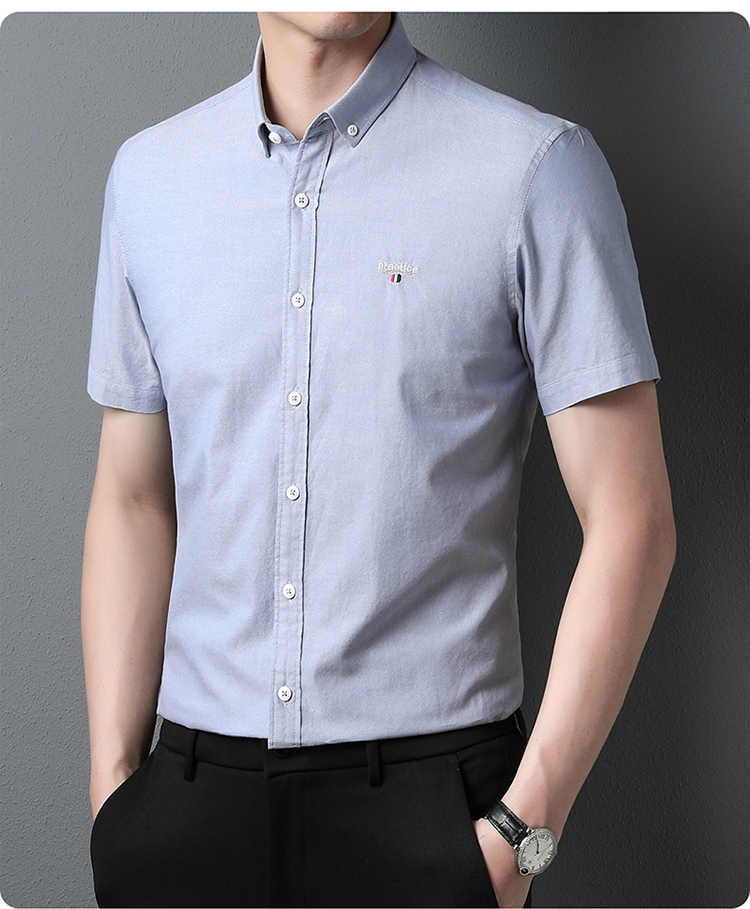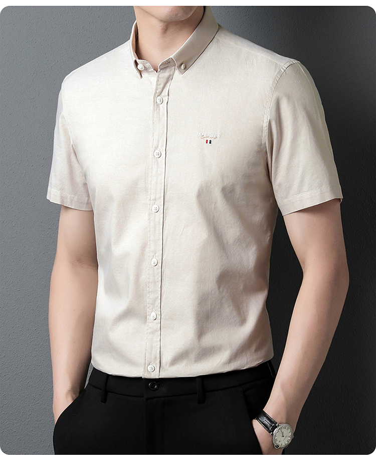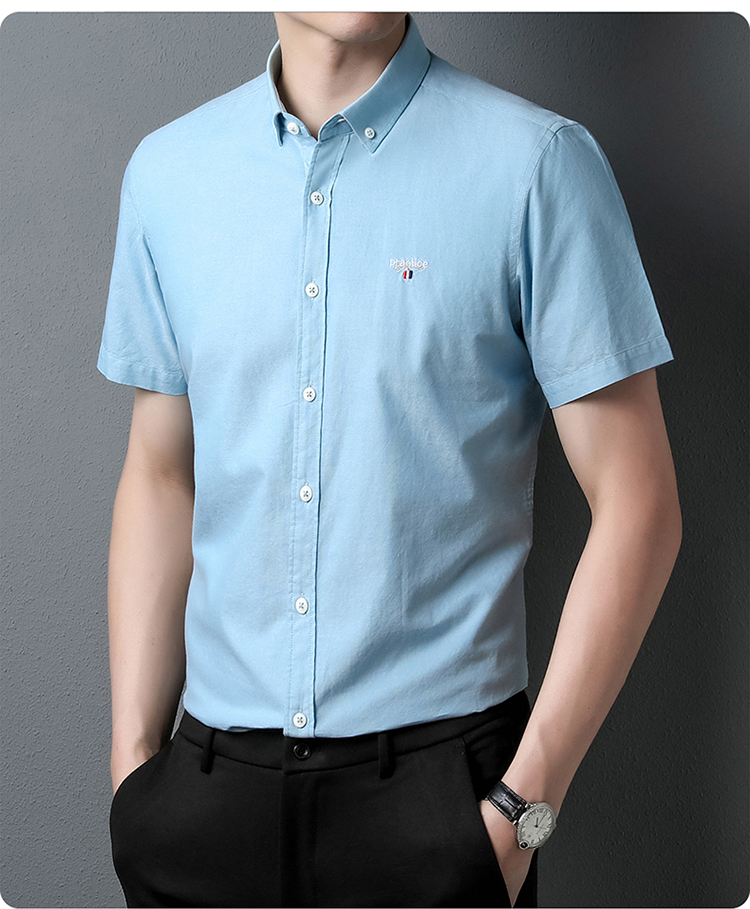 啄木鸟高端衬衫男短袖夏季纯棉半袖免烫男装2023新款男士休闲衬衣