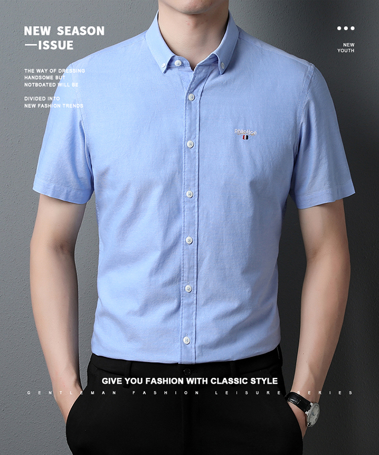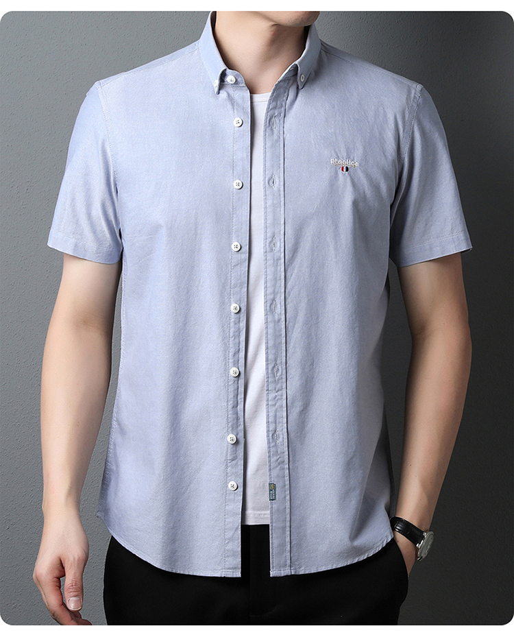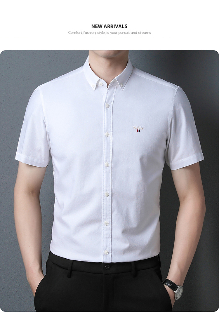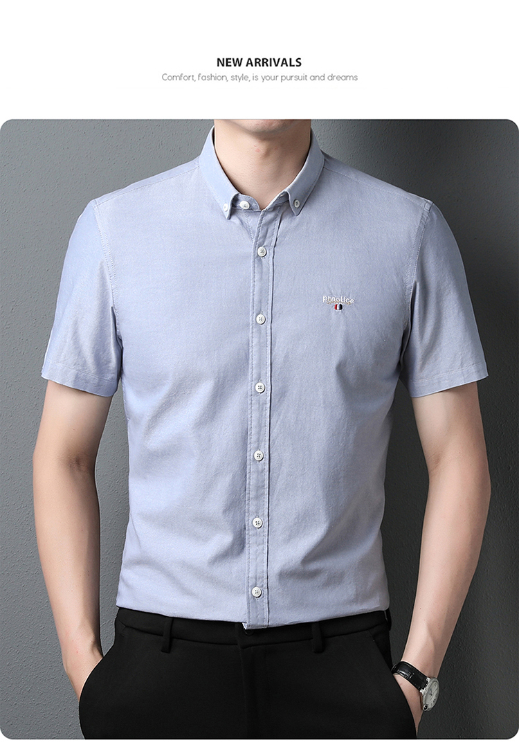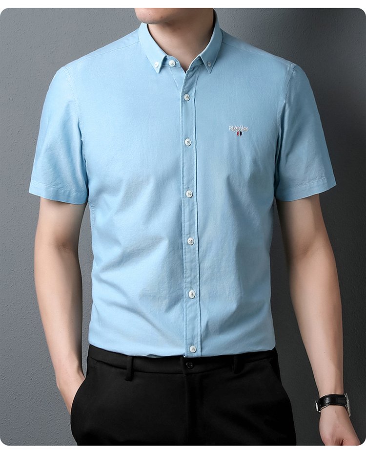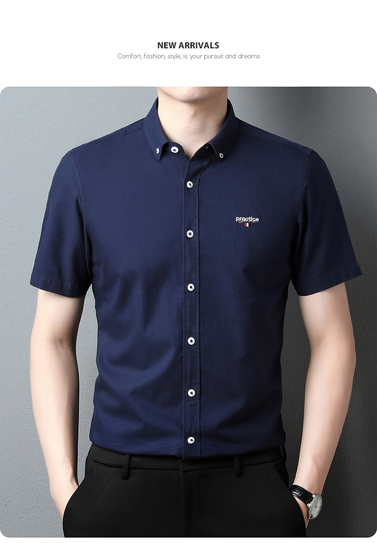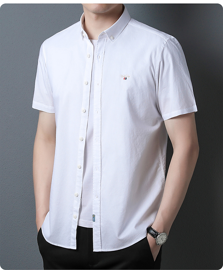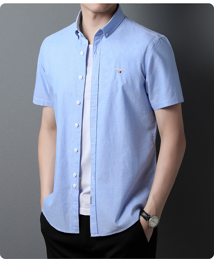 啄木鸟高端衬衫男短袖夏季纯棉半袖免烫男装2023新款男士休闲衬衣