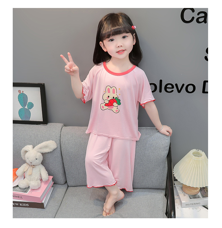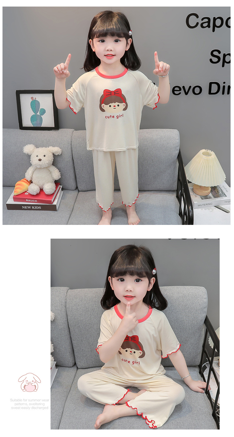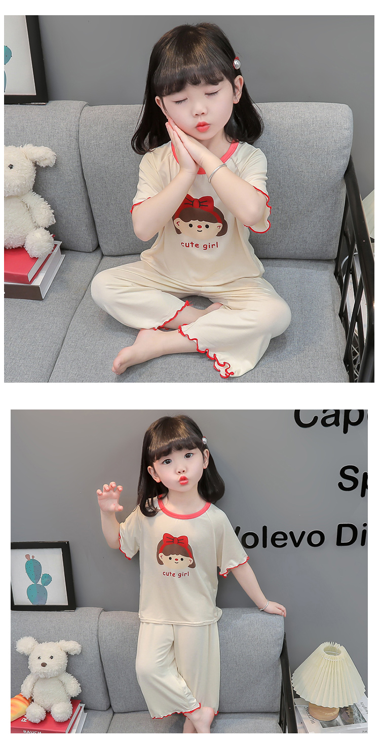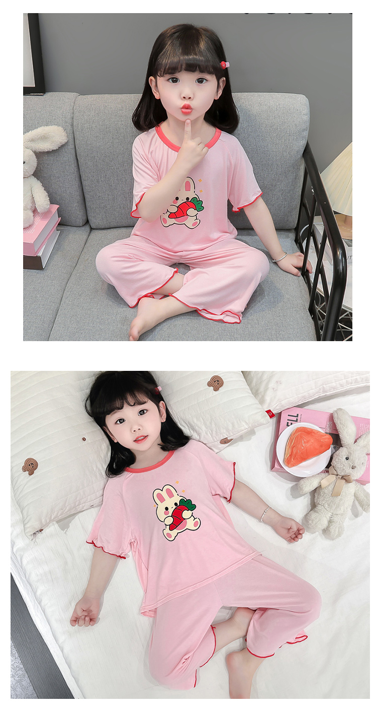 女童莫代尔睡衣夏季新款女中大宝宝薄款儿童短袖空调家居服套装