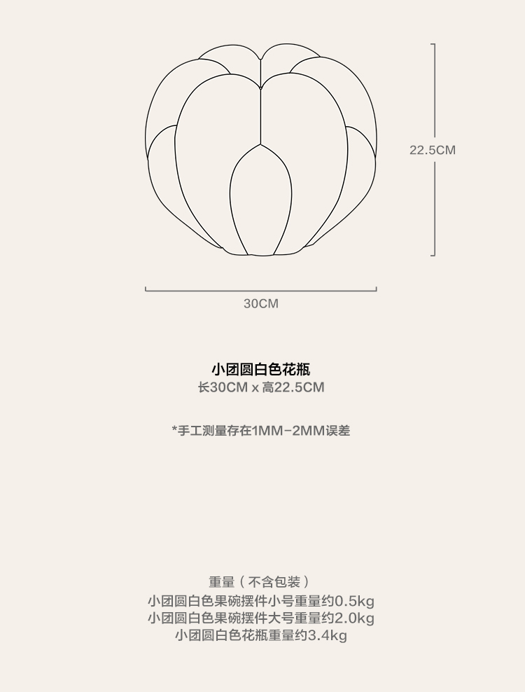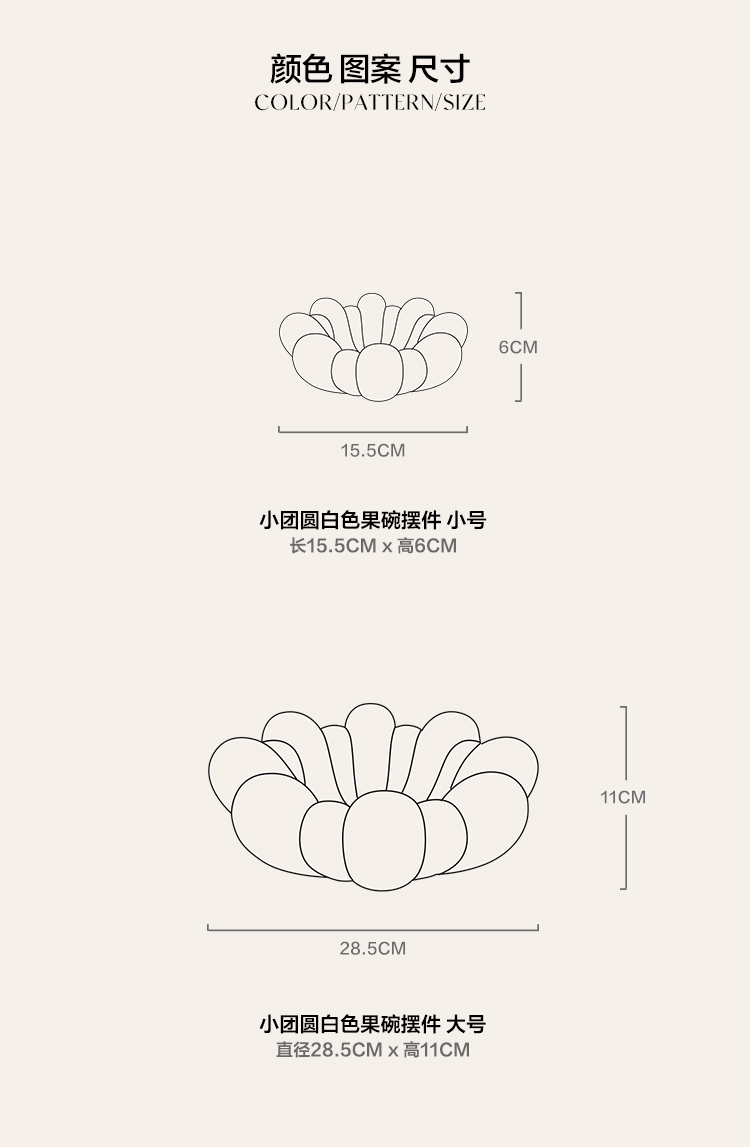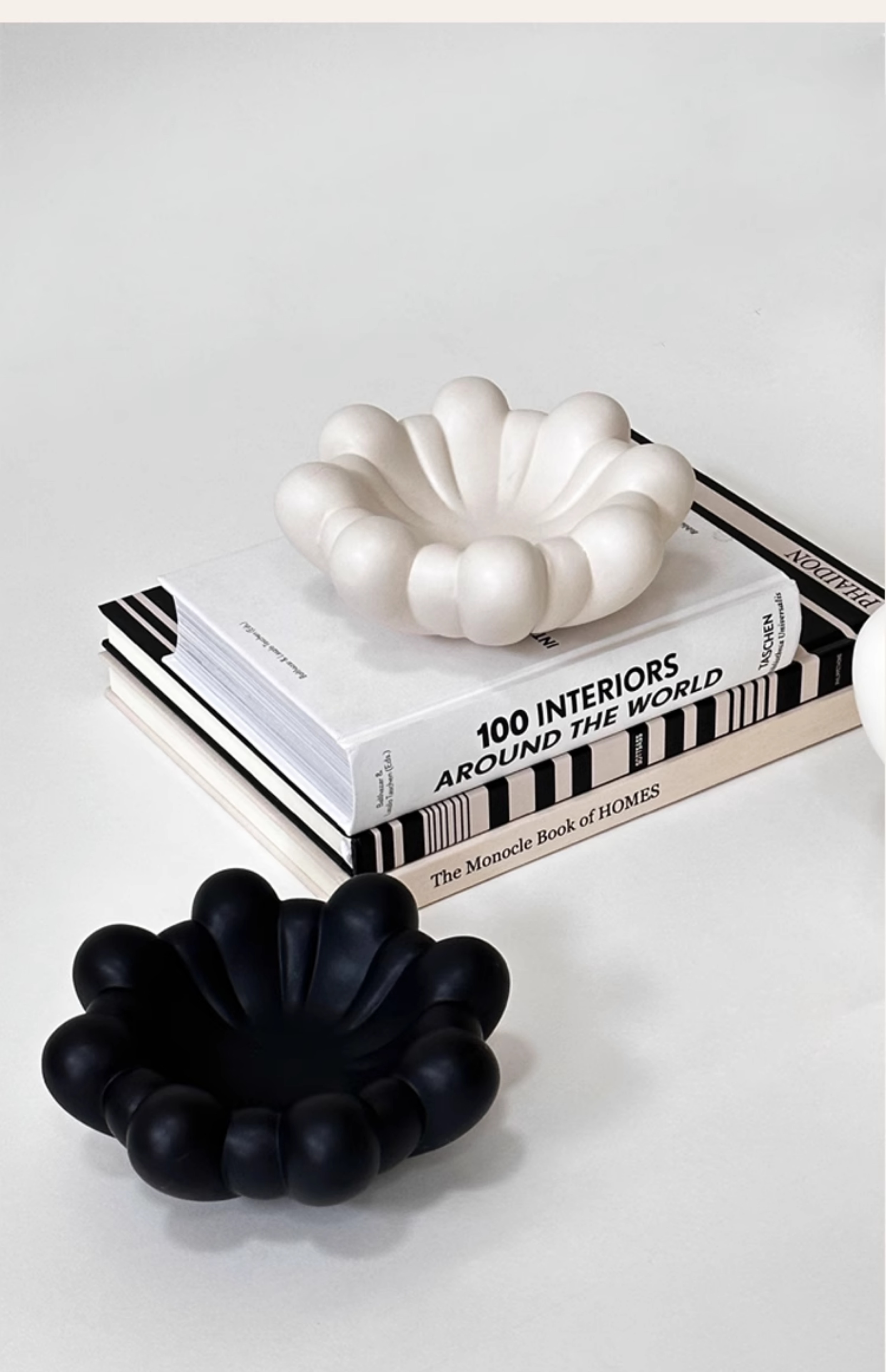 觅屿/小团圆系列奶油风装饰果盘收纳盘白色陶瓷花瓶法式家居摆件