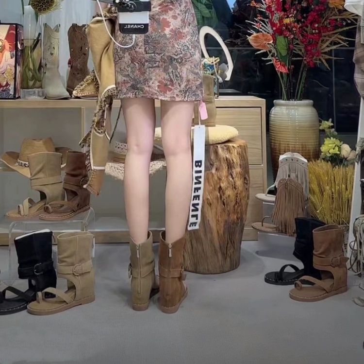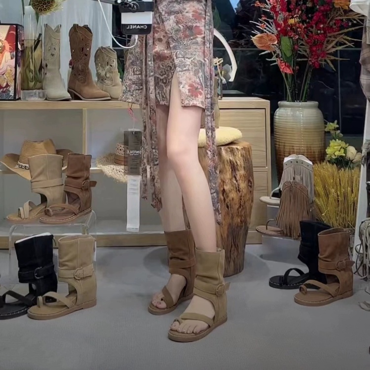 复古罗马套趾凉靴女2025年夏季新款坡跟高帮凉鞋内增高后拉链短靴