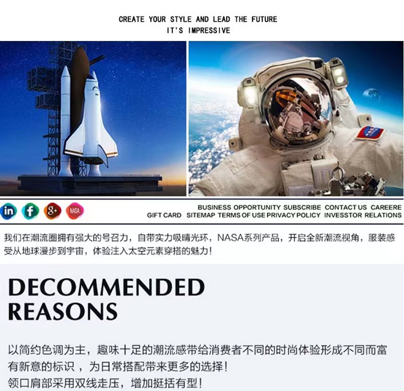 NASA联名短袖t恤男夏季男士潮流简约小众上衣纯棉体恤男女款衣服