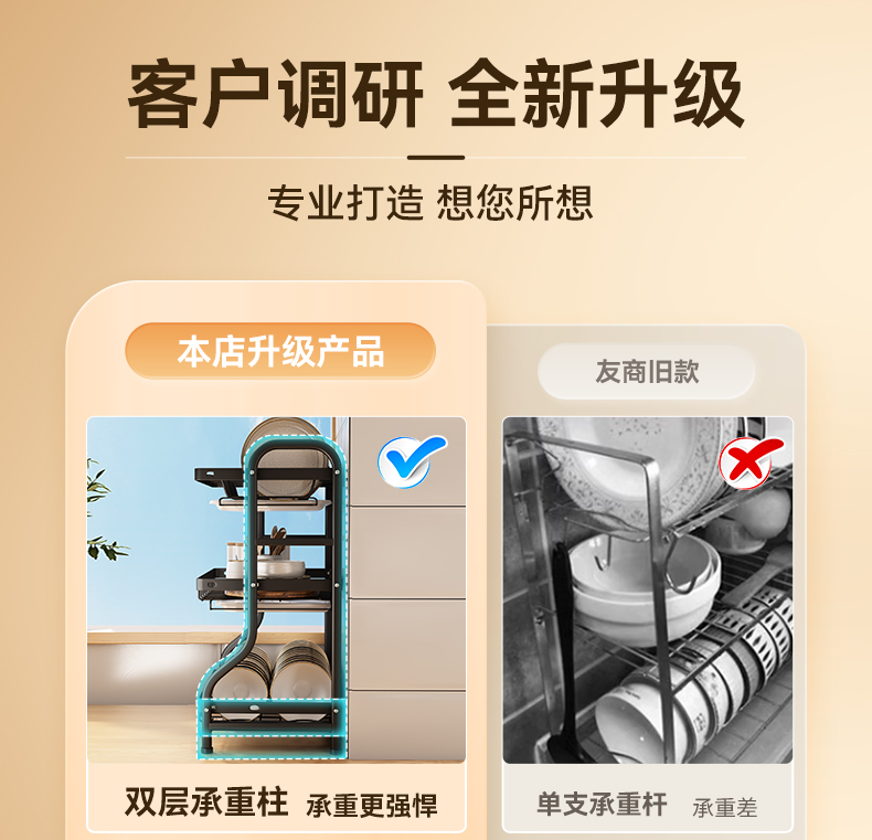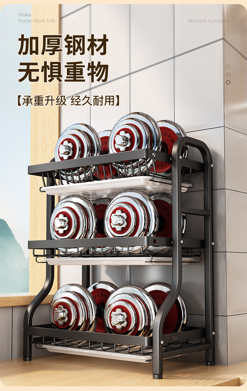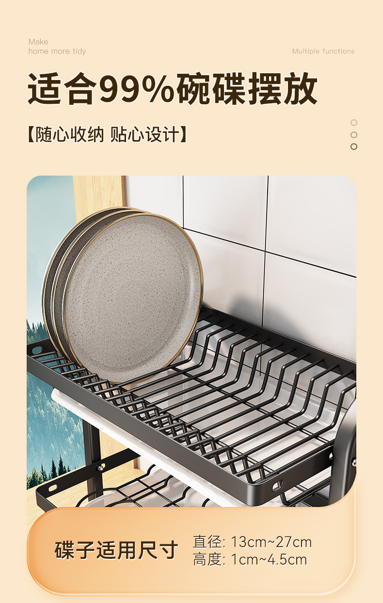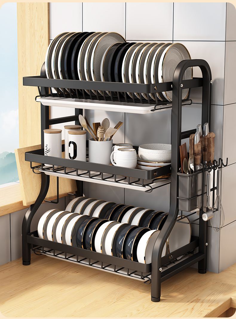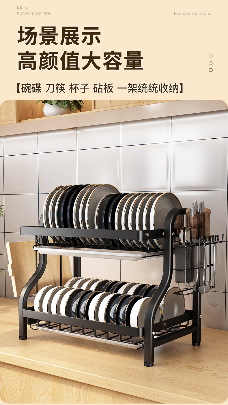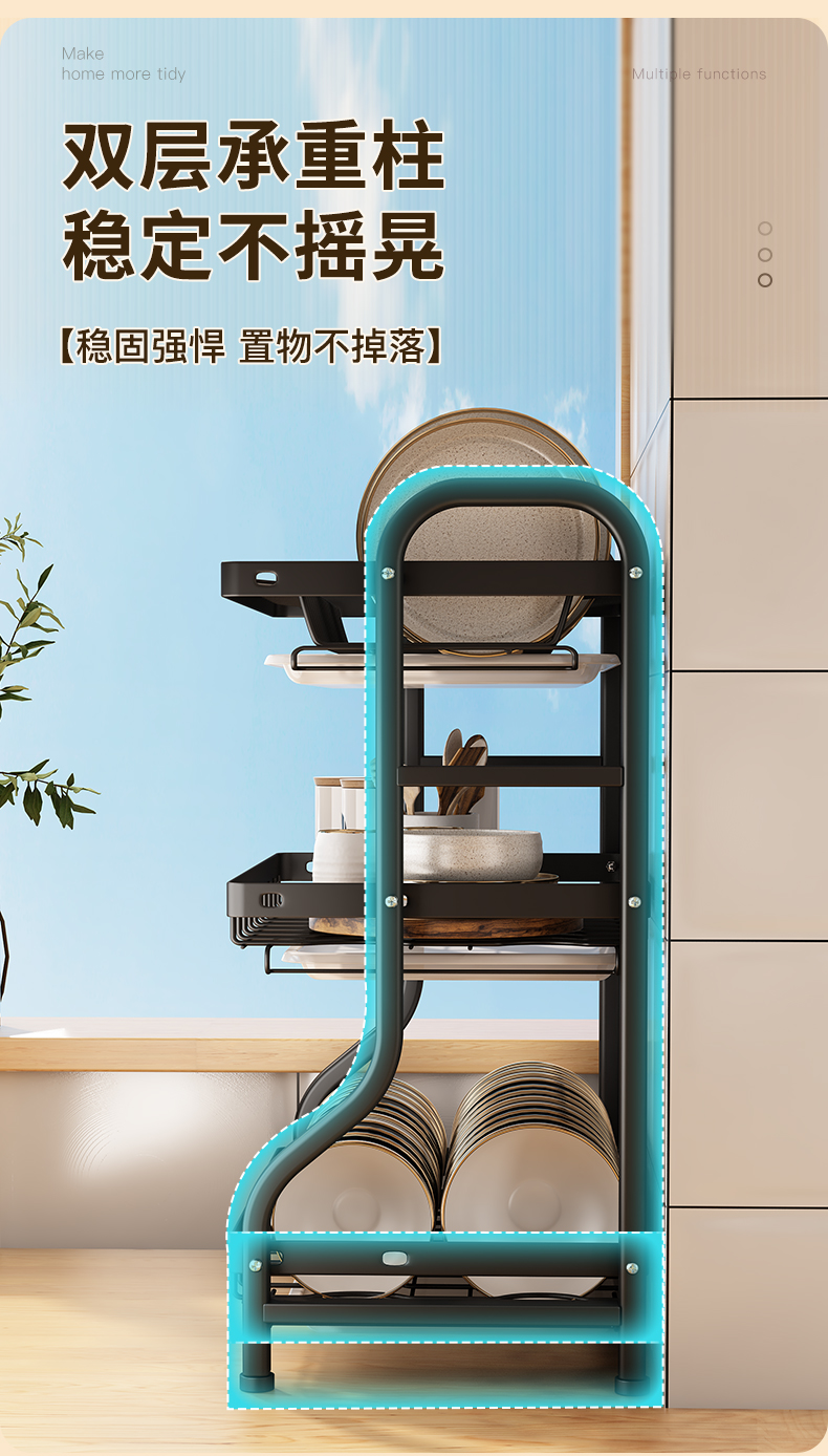碗碟收纳架碗架多功能放碗盘沥水架碗柜家用三层厨房置物架刀架筷