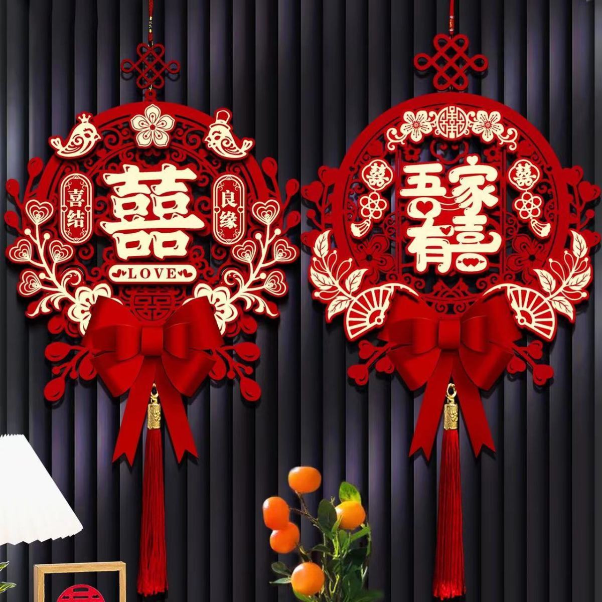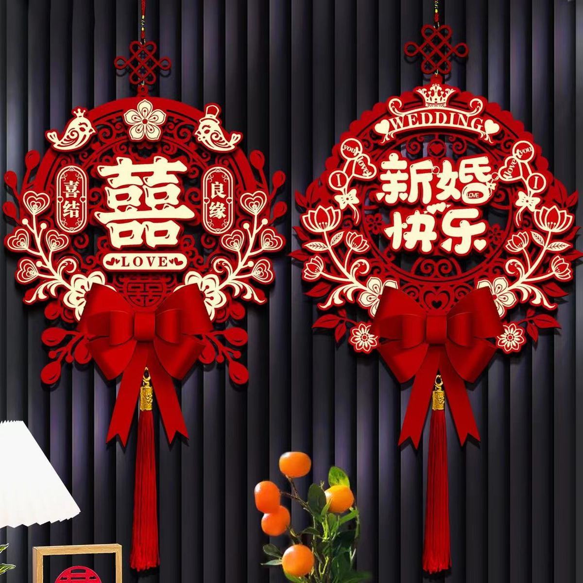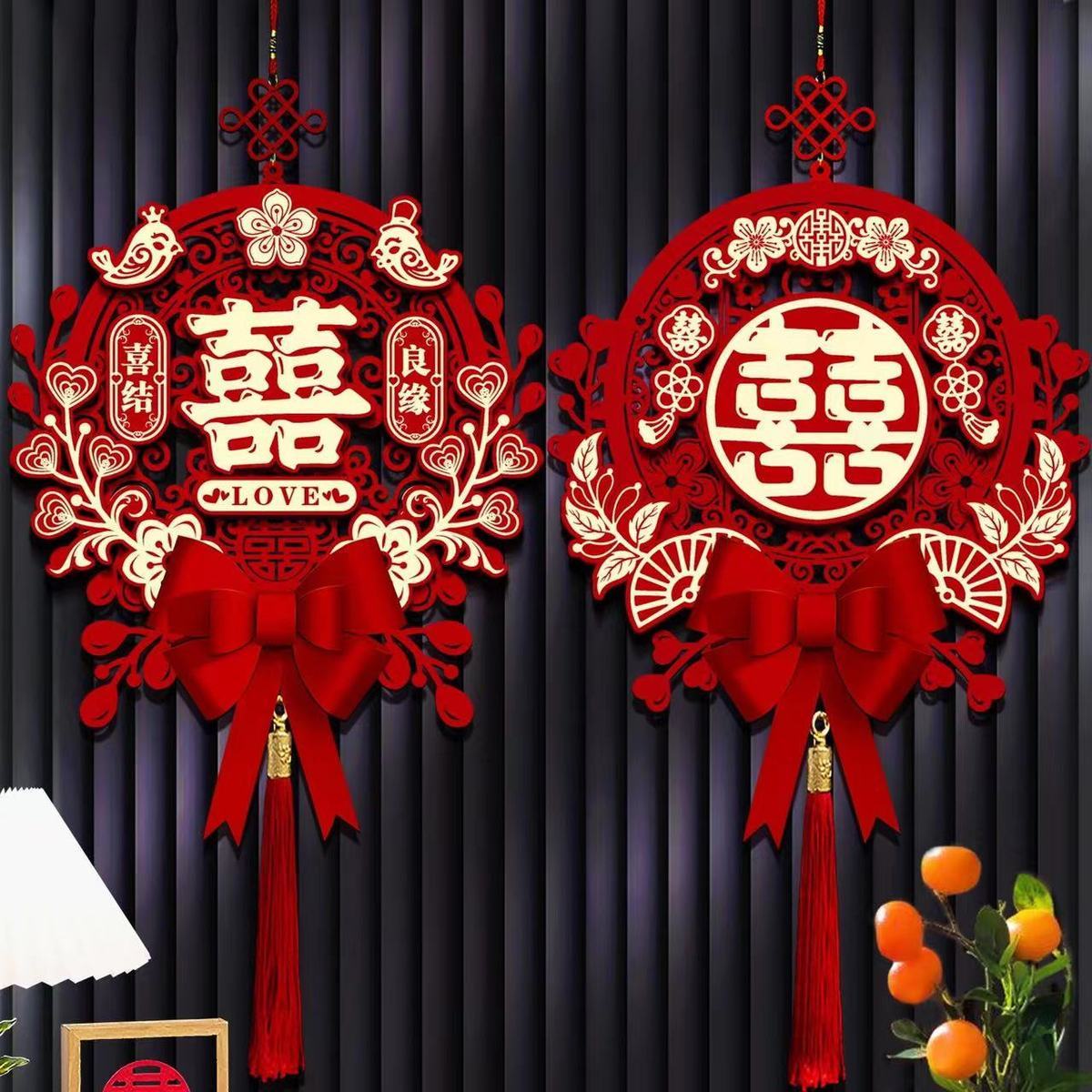 结婚喜字装饰挂件婚房布置套装男方客厅女方卧室新房拉花用品大全