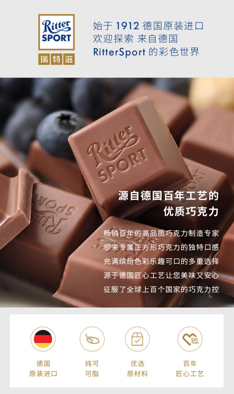 德国进口瑞特滋榛果巧克力100g*3块装排块休闲旅游零食
