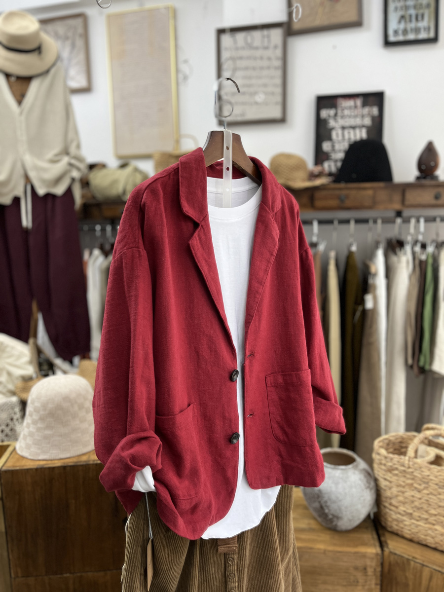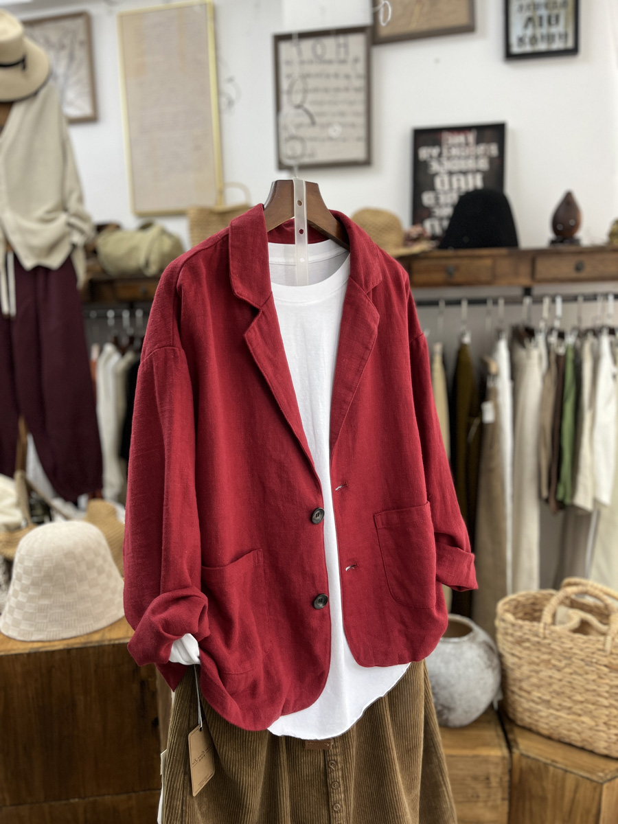 2024秋季新款长袖棉麻小西装外套女士春秋款文艺复古休闲麻料上衣
