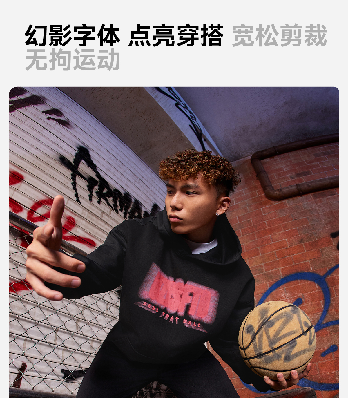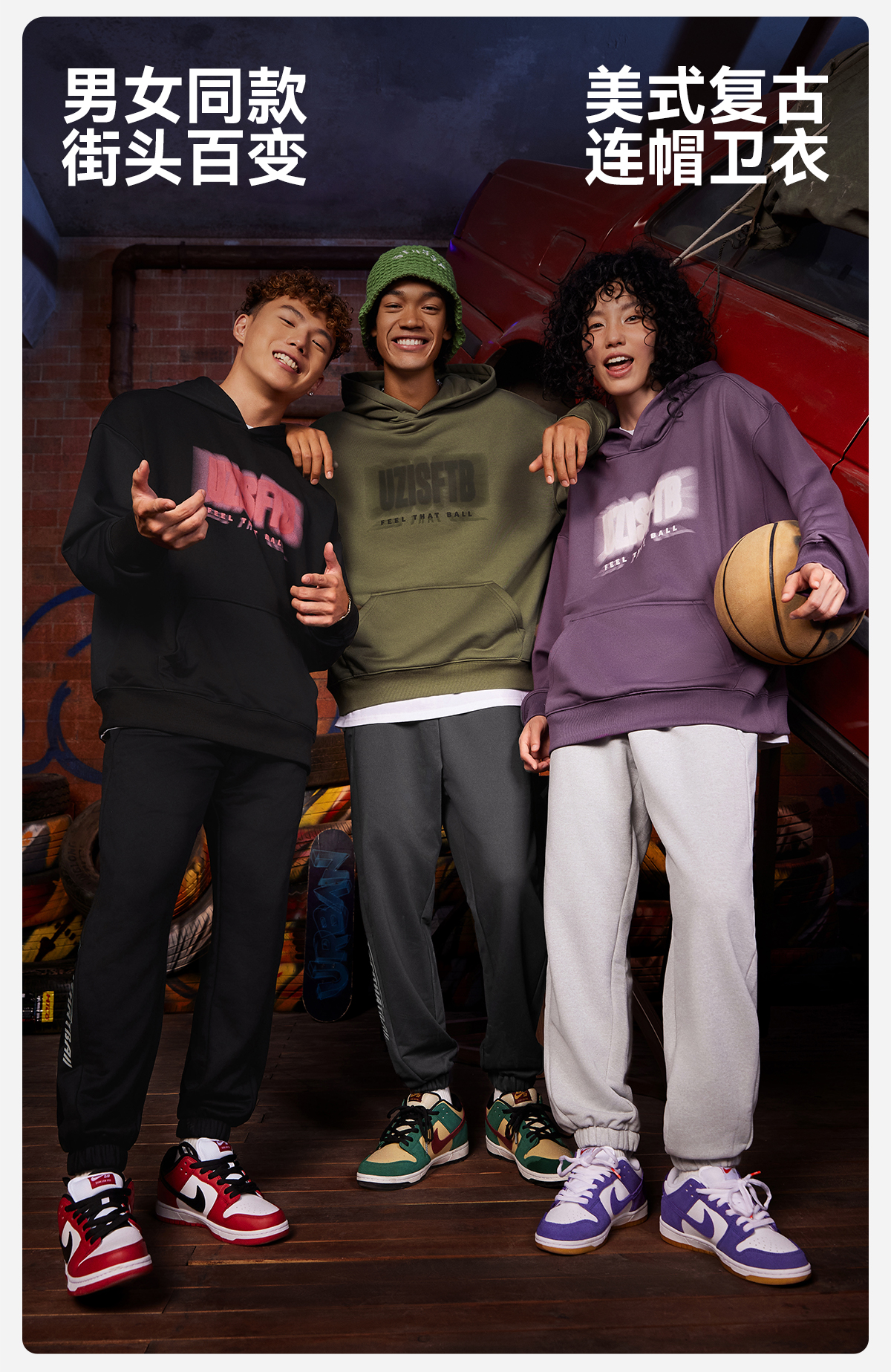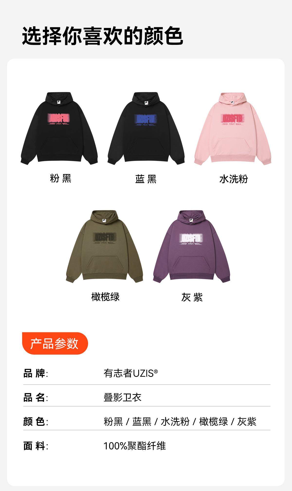 有志者UZIS美式潮流运动卫衣男春秋宽松保暖复古篮球连帽卫衣叠影