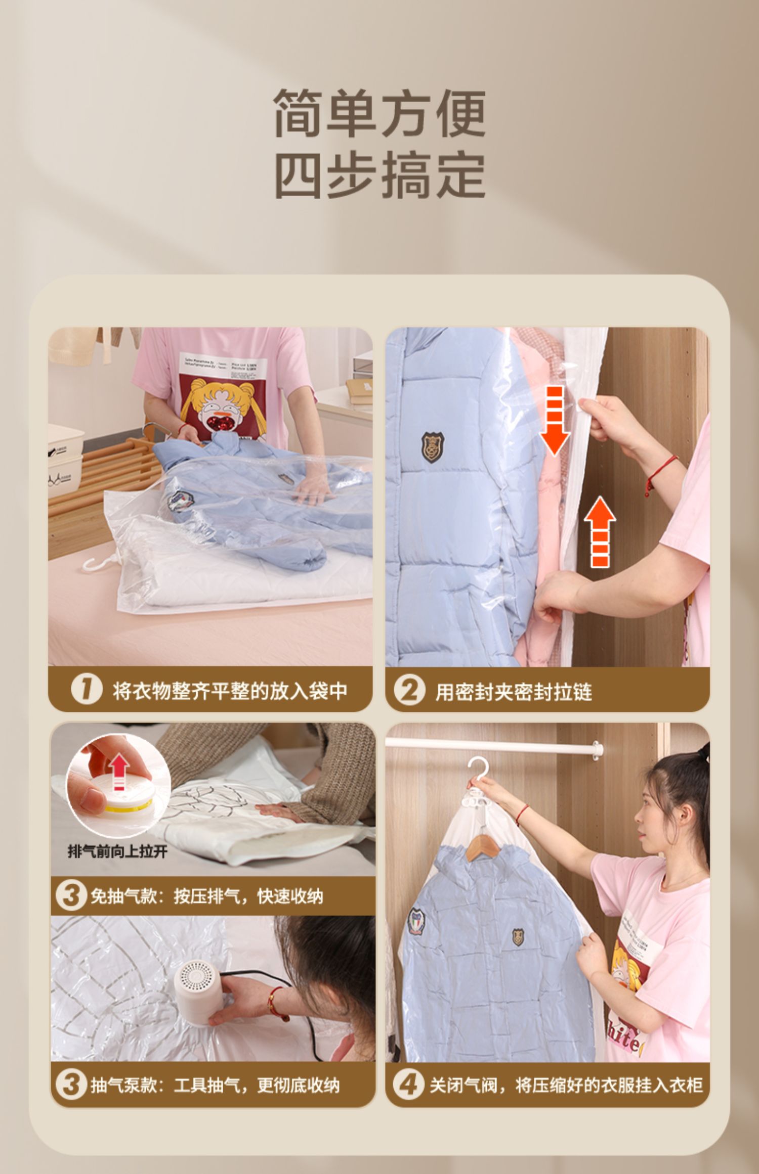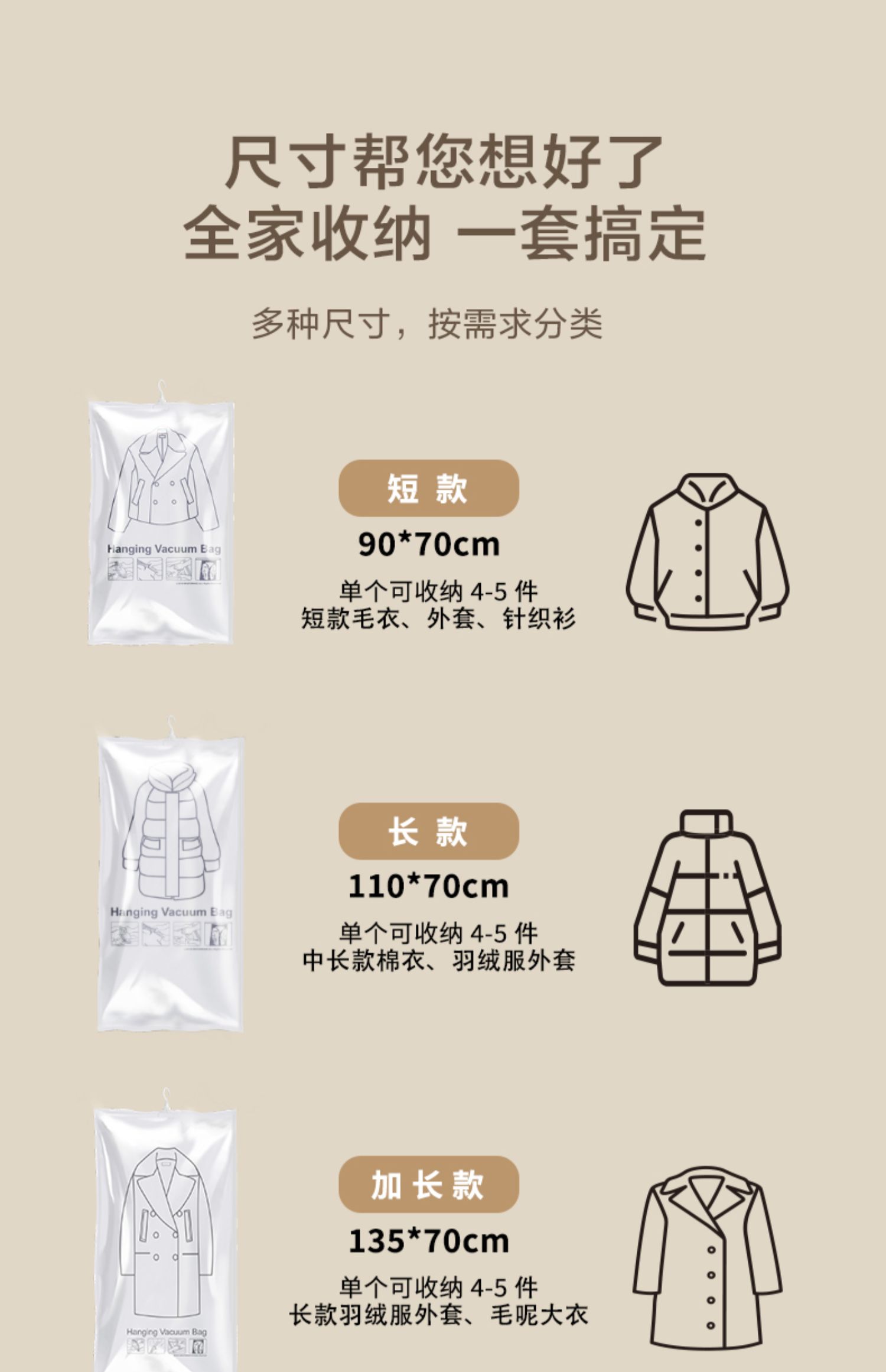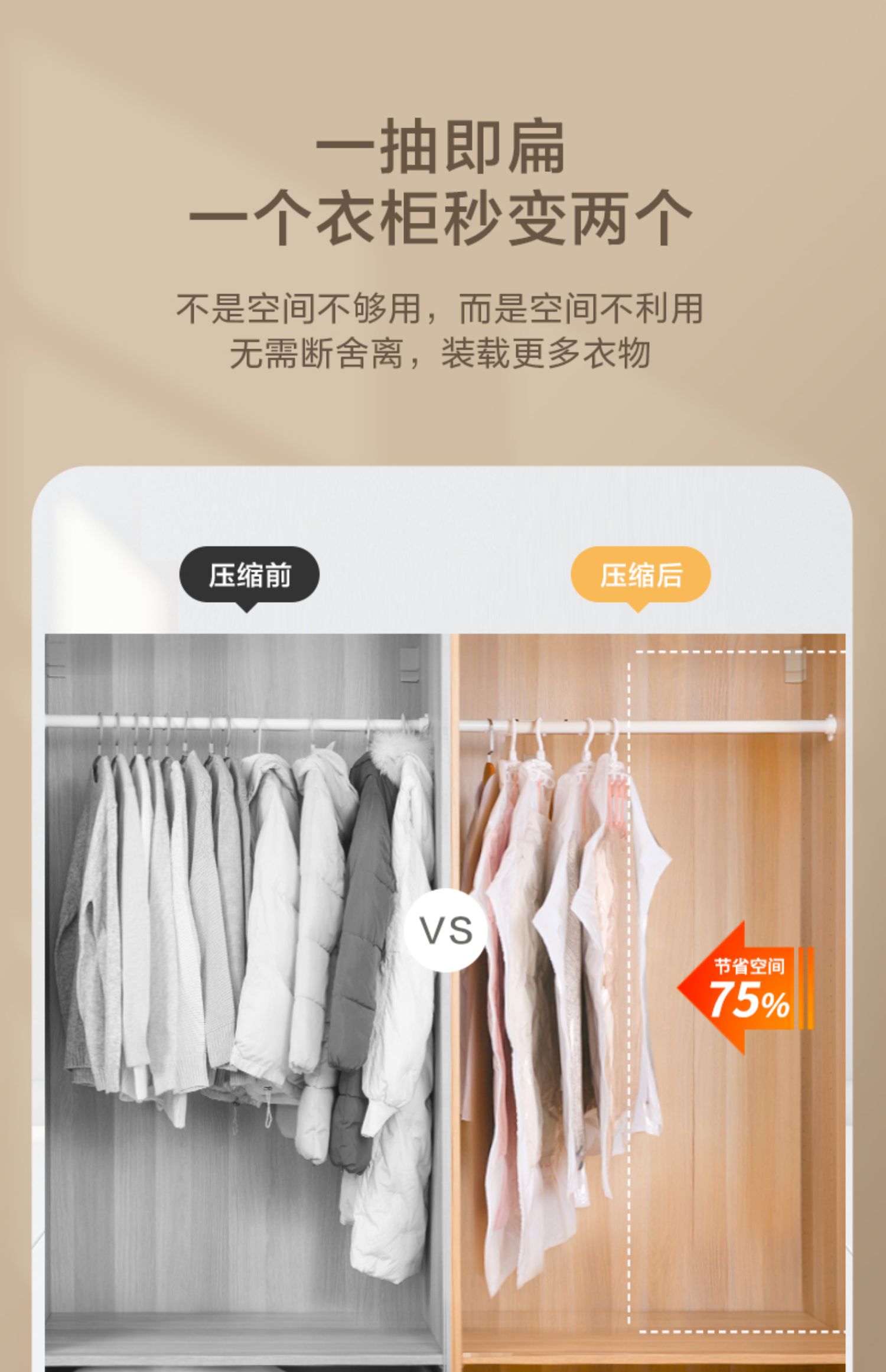 收纳博士免抽气挂式压缩袋羽绒服大衣收纳袋防尘打包袋衣柜整理袋