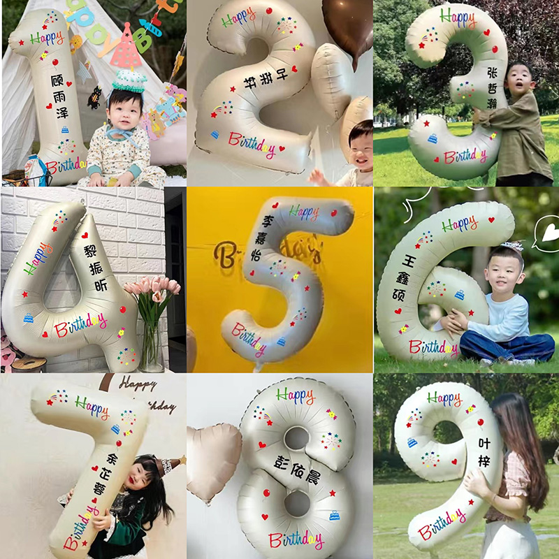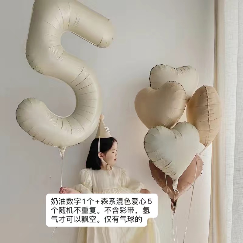 ins小红书同款奶油色数字气球周岁儿童宝宝生日装饰场景布置派对