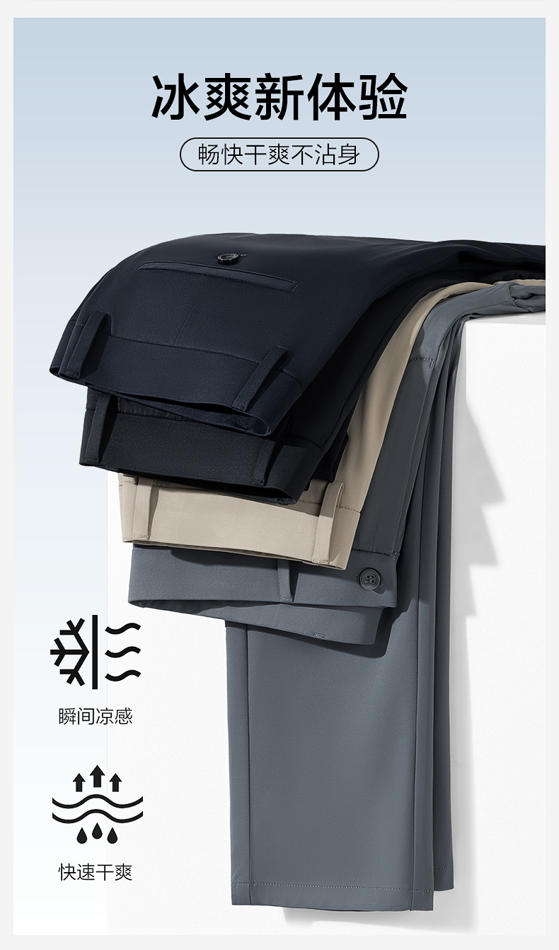 海澜之家高级感冰丝休闲裤男士2025新款春夏薄款商务修身直筒西裤