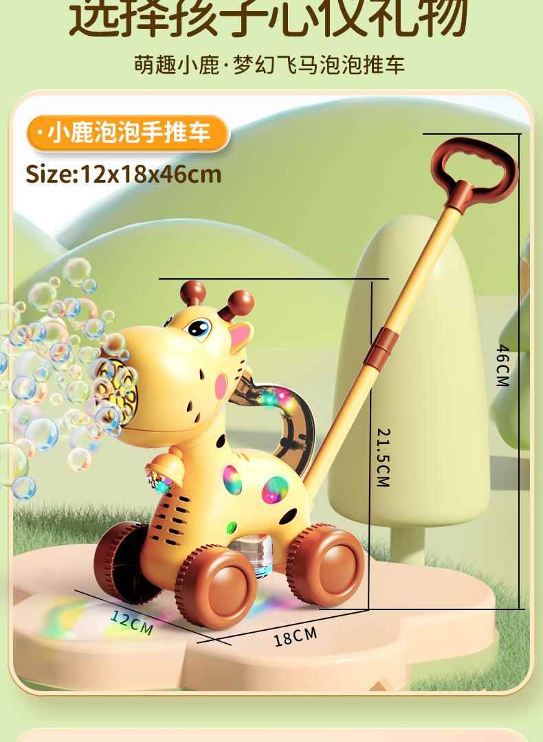 长颈鹿吹泡泡机手持推车男孩女孩电动全自动婴幼儿童2024新款玩具