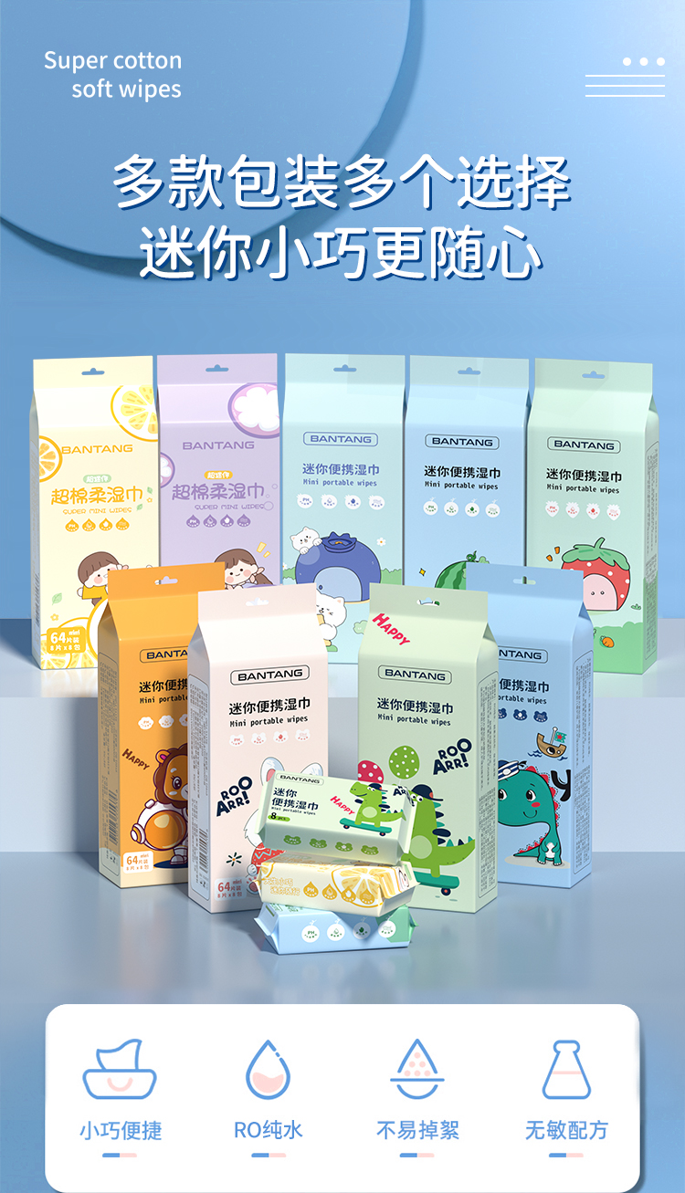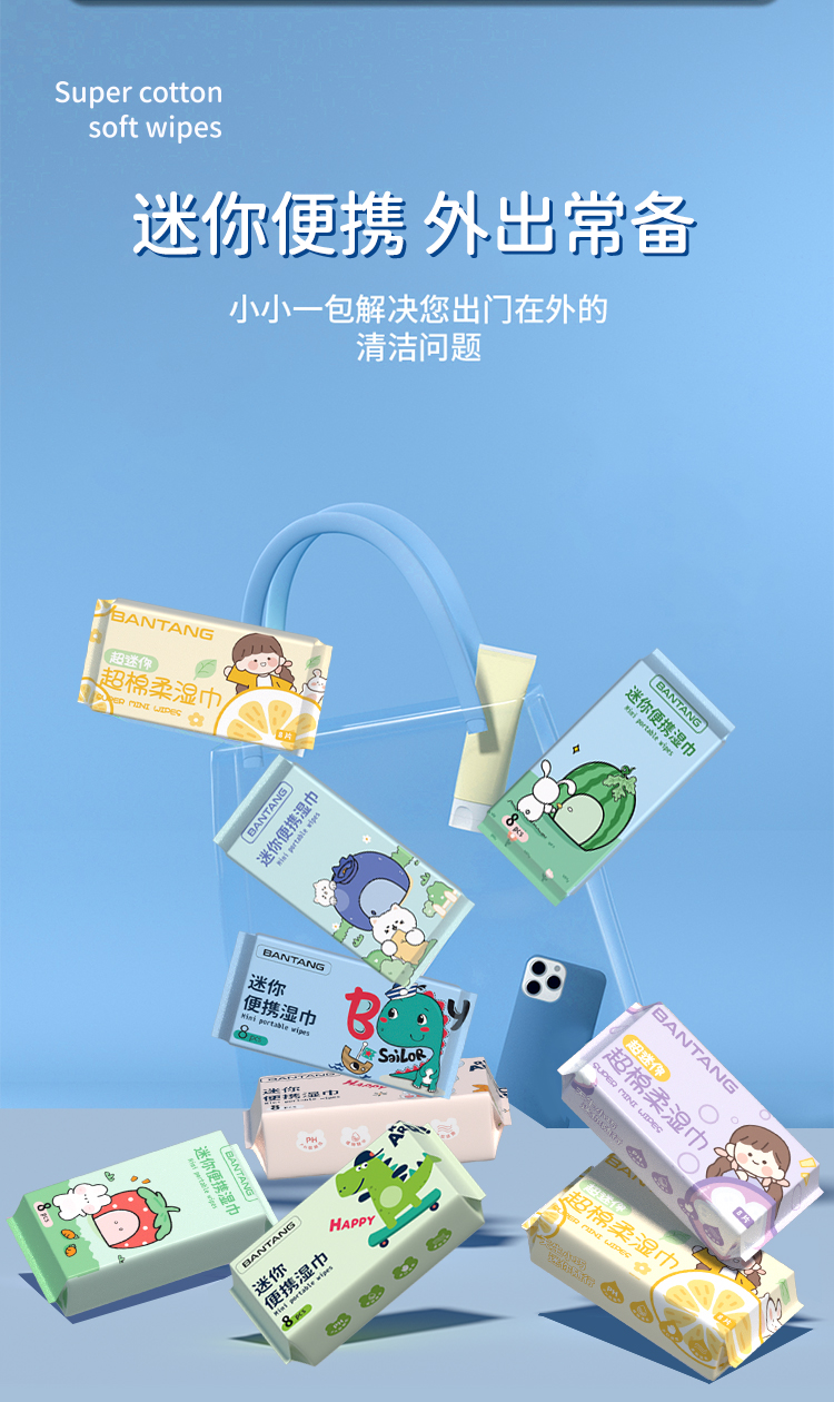 婴儿湿巾小包便携迷你随身装小学生儿童新生宝手口专用清洁湿纸巾