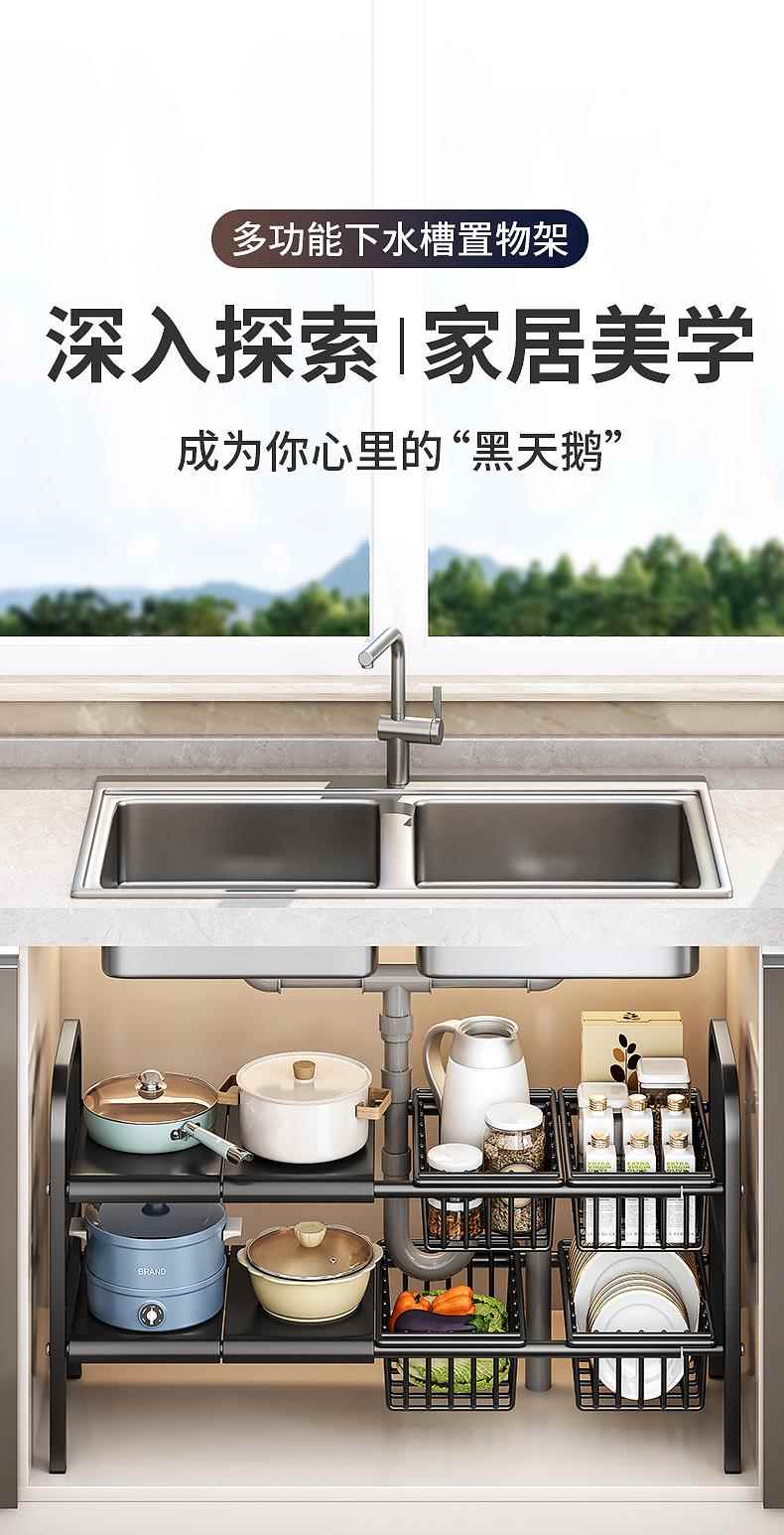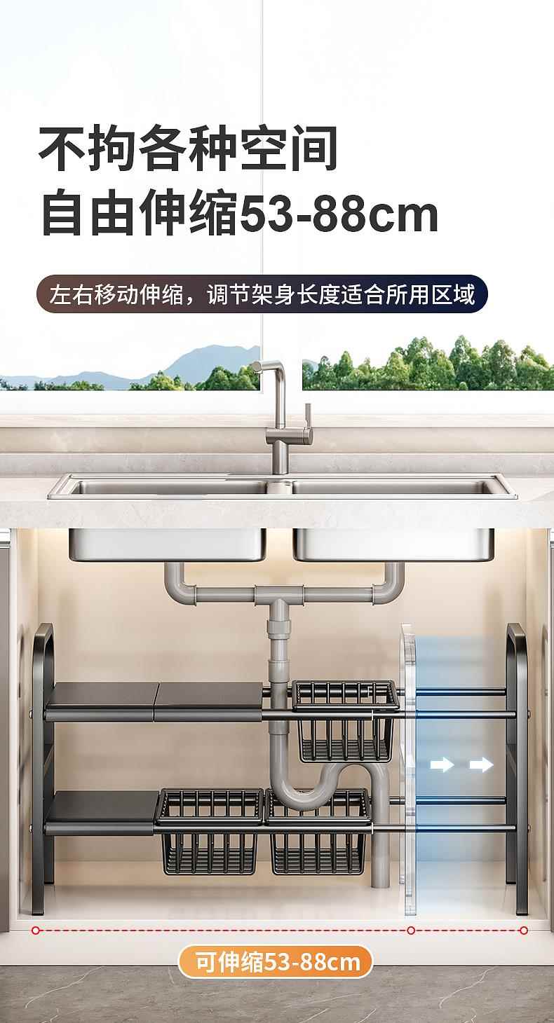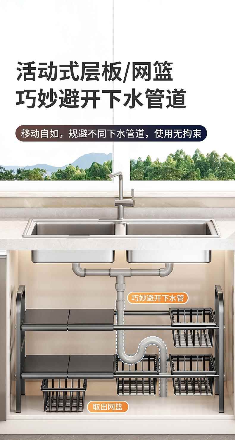 下水槽置物架收纳浴室柜下洗手台下橱柜内分层卫生间整理架子神器