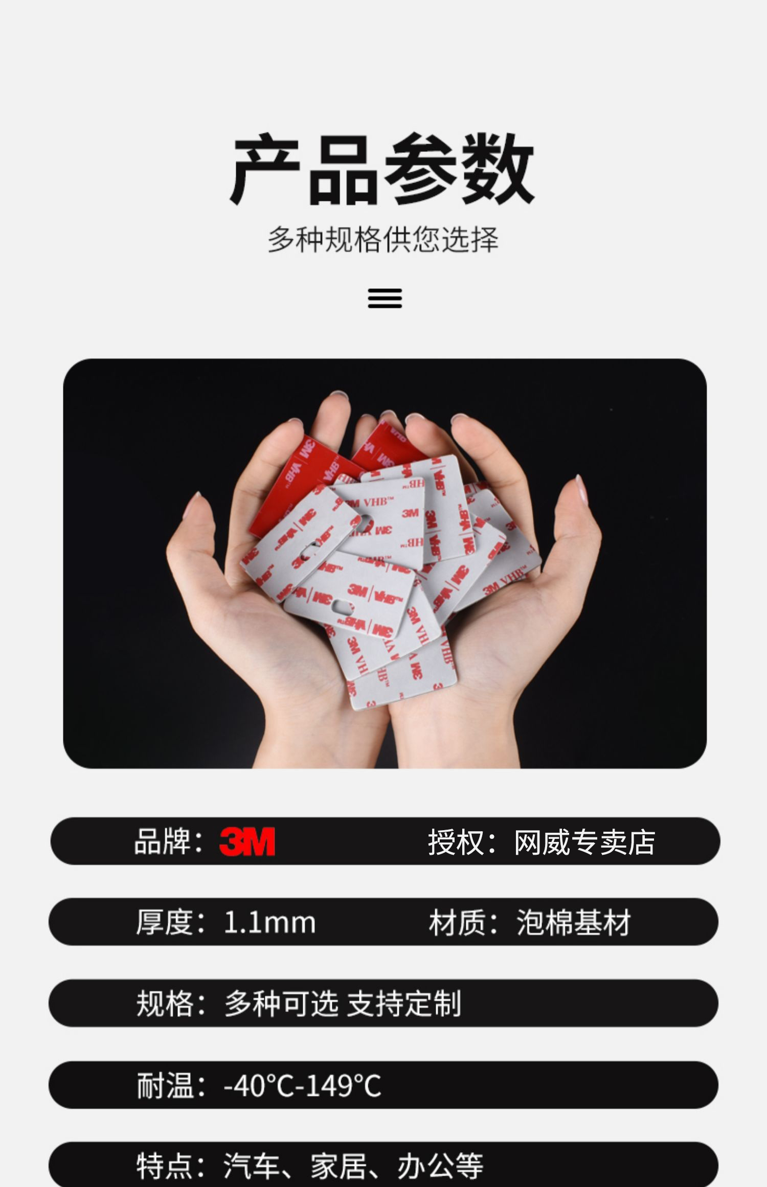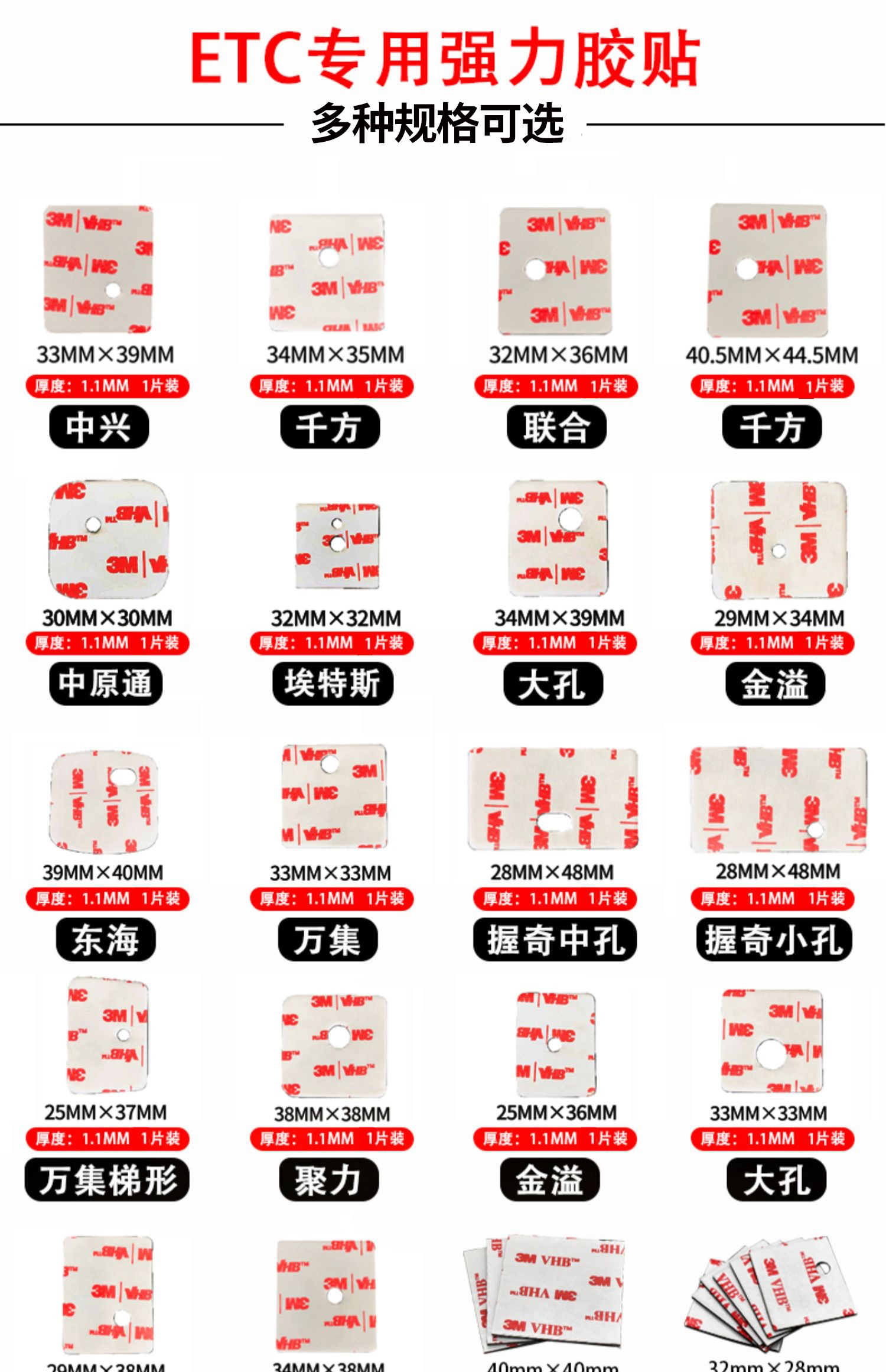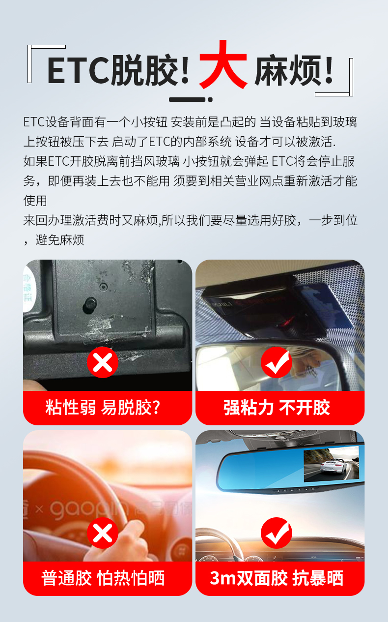 3m双面胶高粘度强力固定无痕etc专用背胶家用车用粘支架记录仪贴