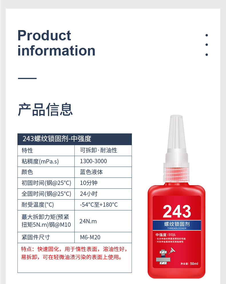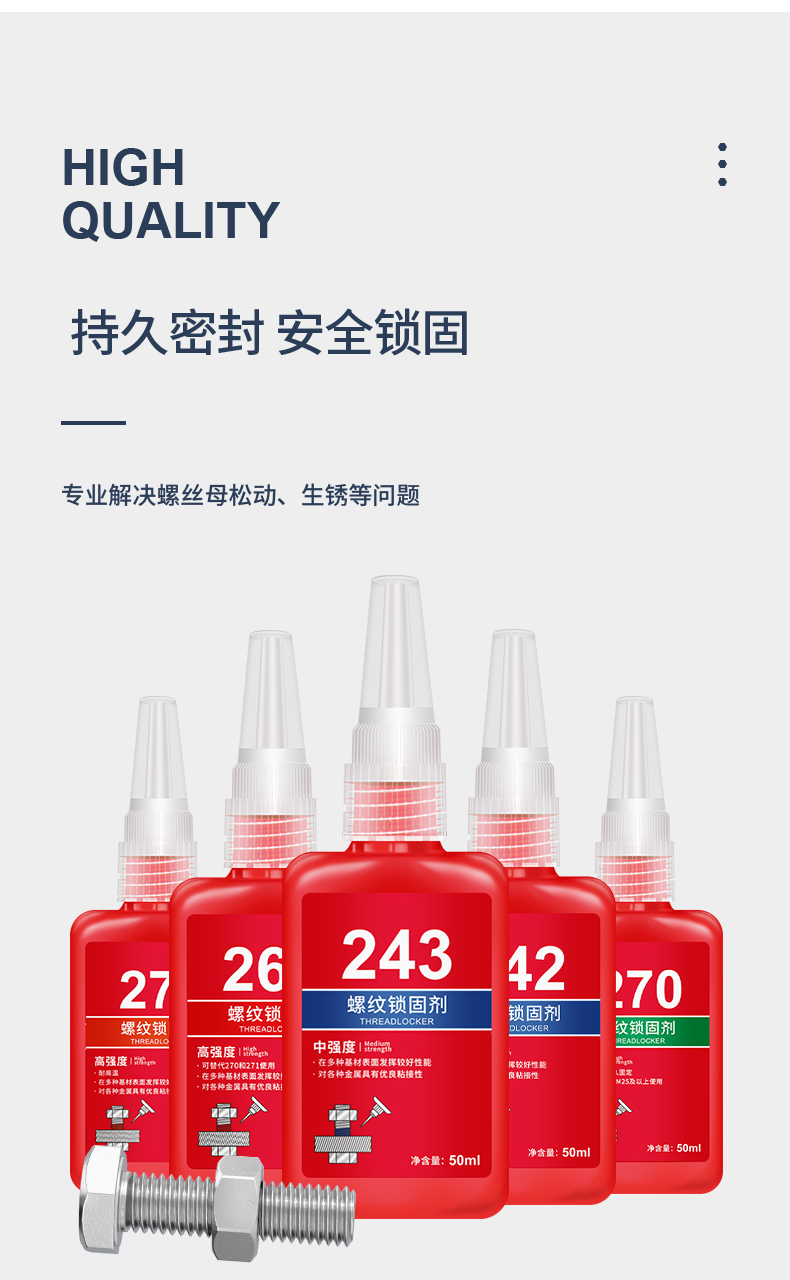 佰瑞特高强度螺丝锁固胶螺纹紧固防松胶水金属密封防盗耐高温药剂