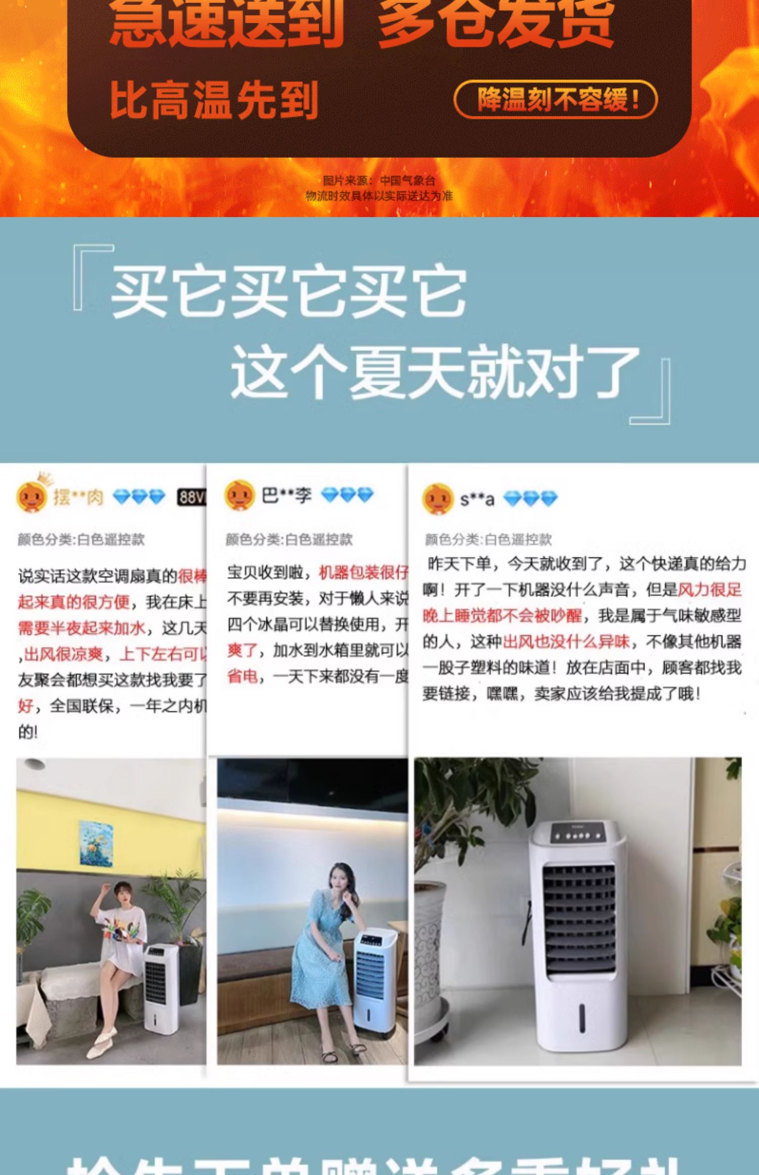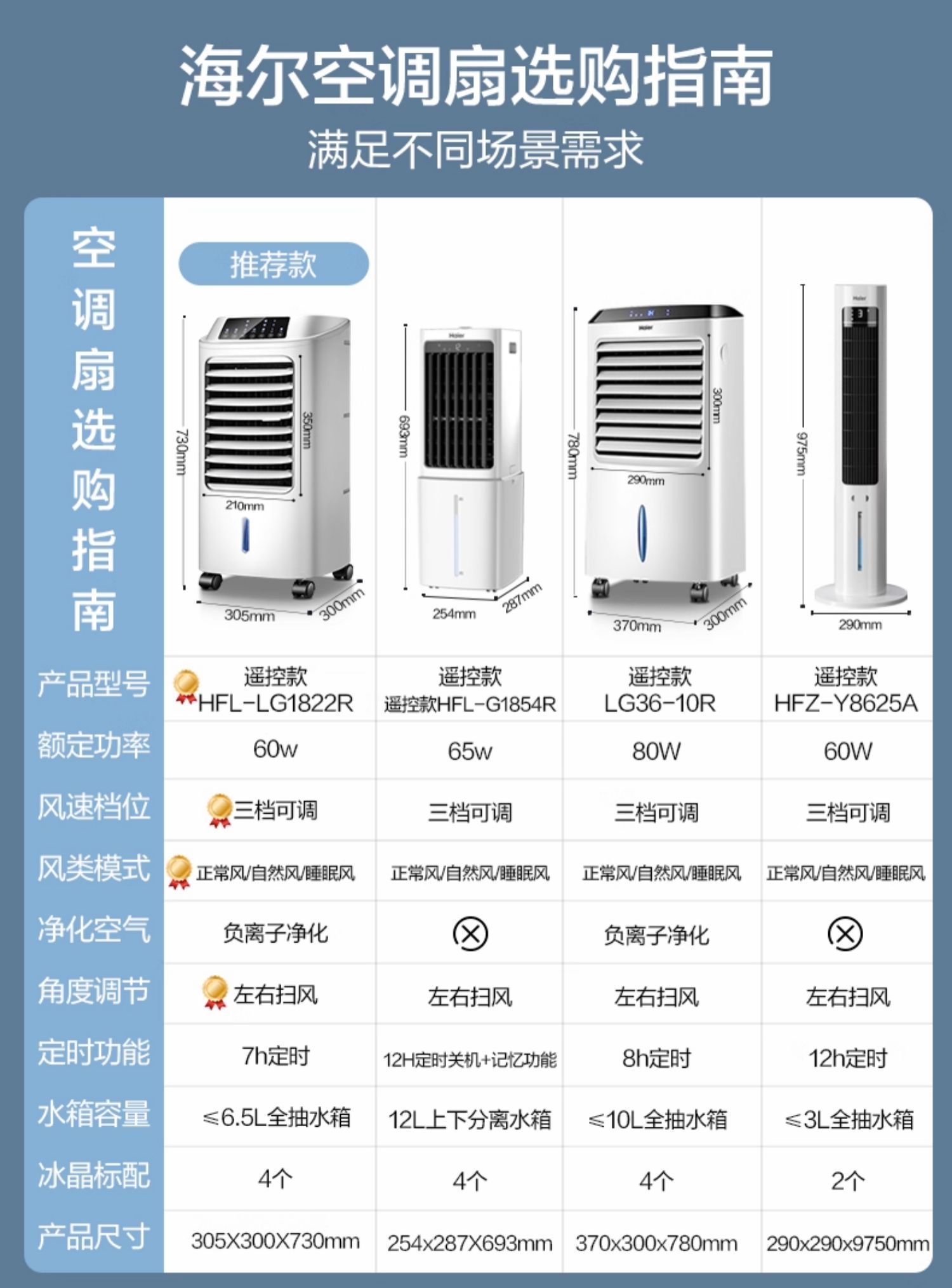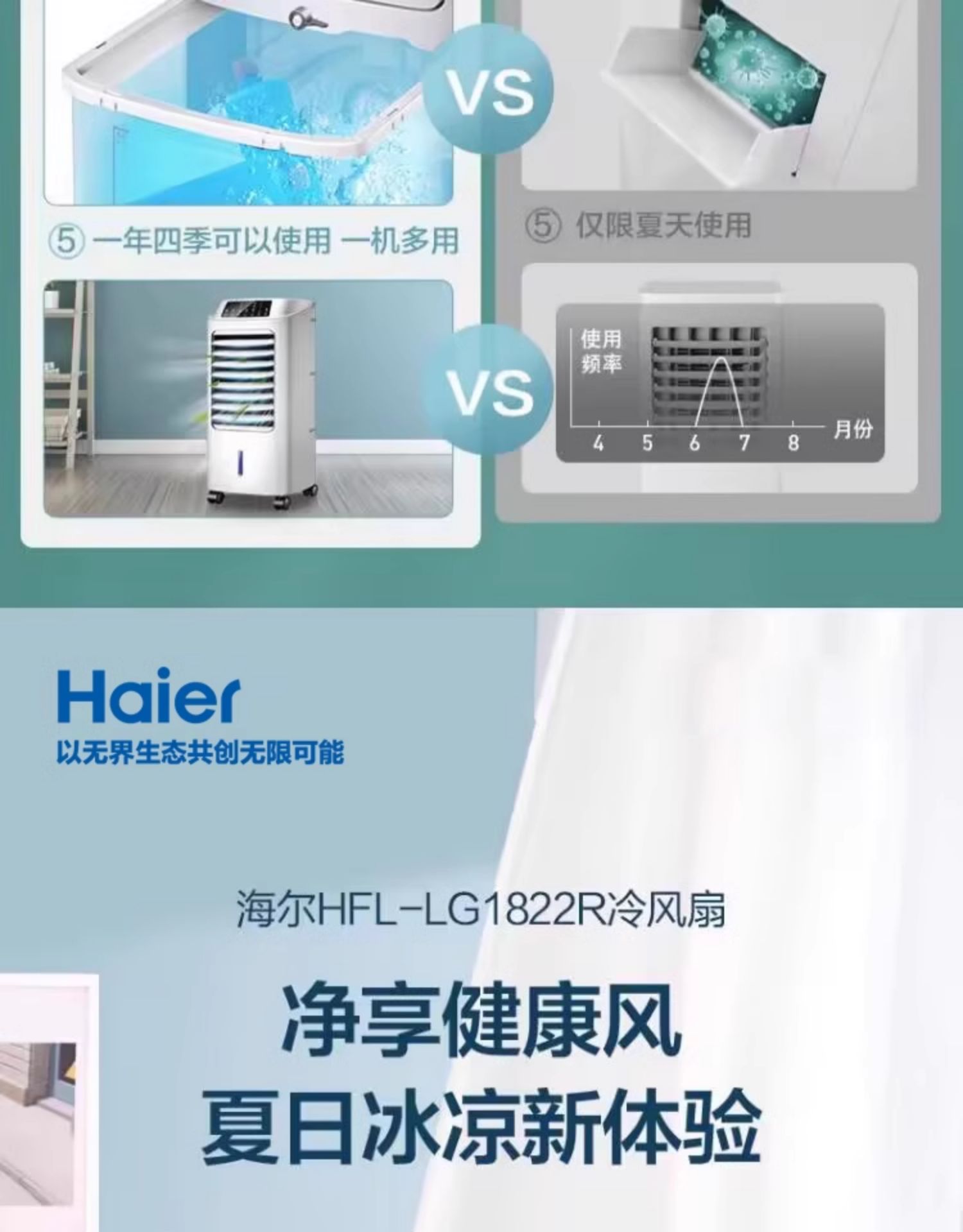 海尔空调扇制冷风扇家用单冷型水冷风机冷气扇制冷器移动小空调
