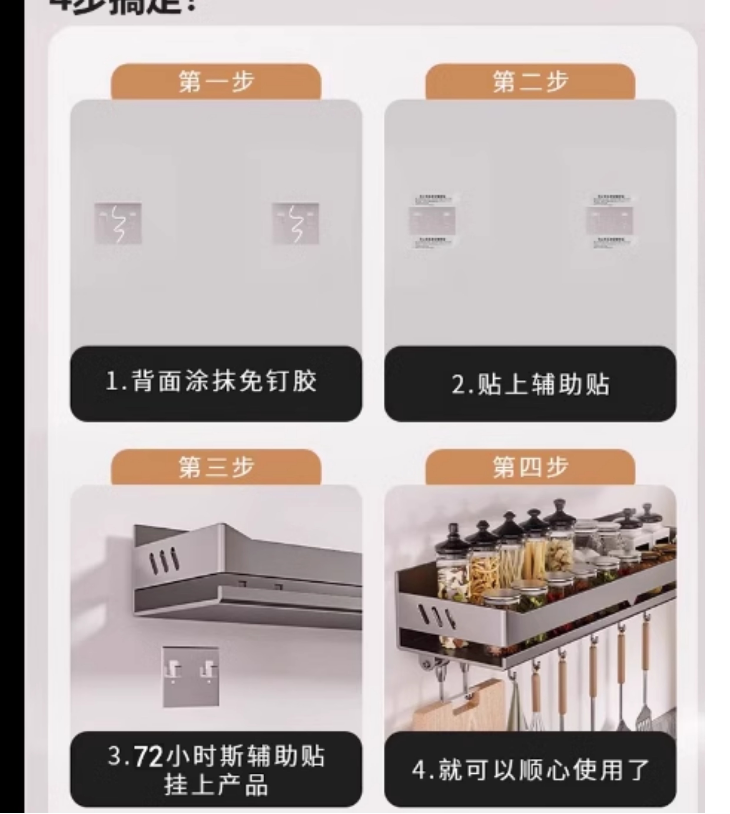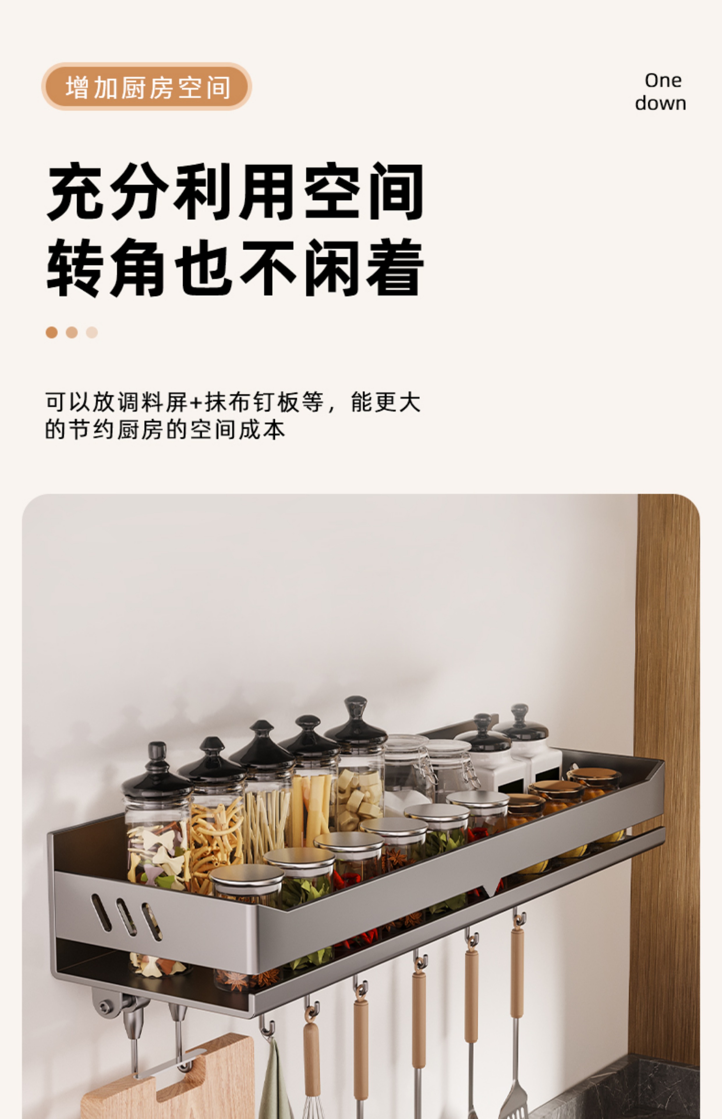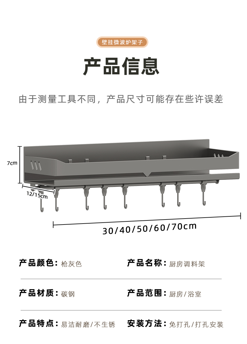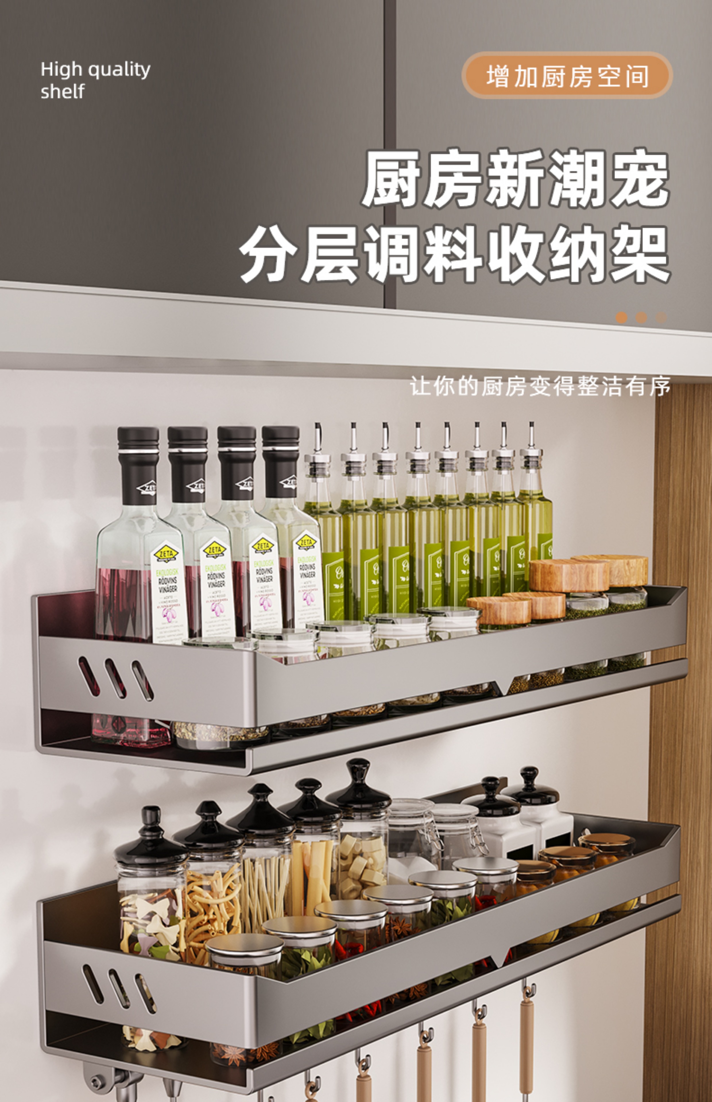 枪灰厨房壁挂调料置物架墙上免打孔家用调味品油盐酱醋瓶收纳架子