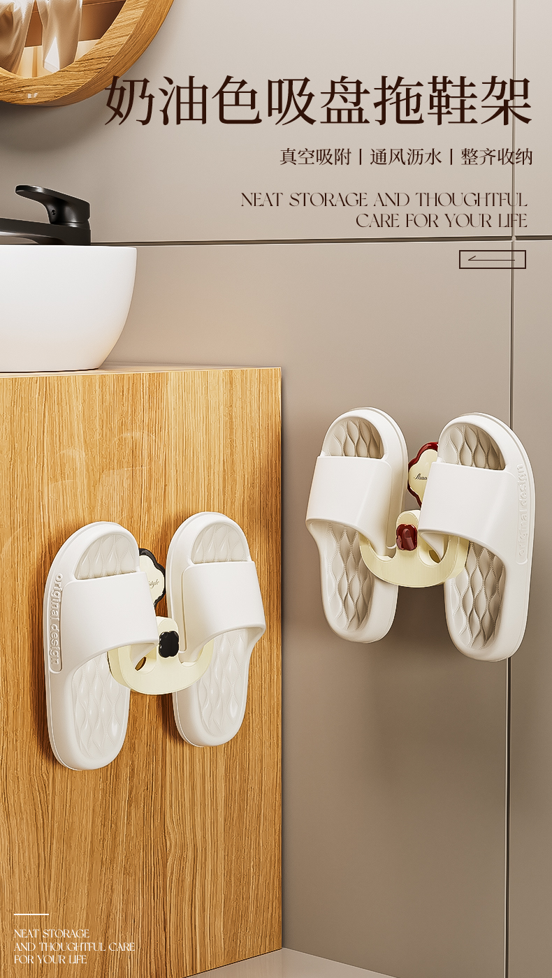 浴室拖鞋架吸盘式免打孔拖鞋挂钩挂架卫生间厕所置物架强力承重