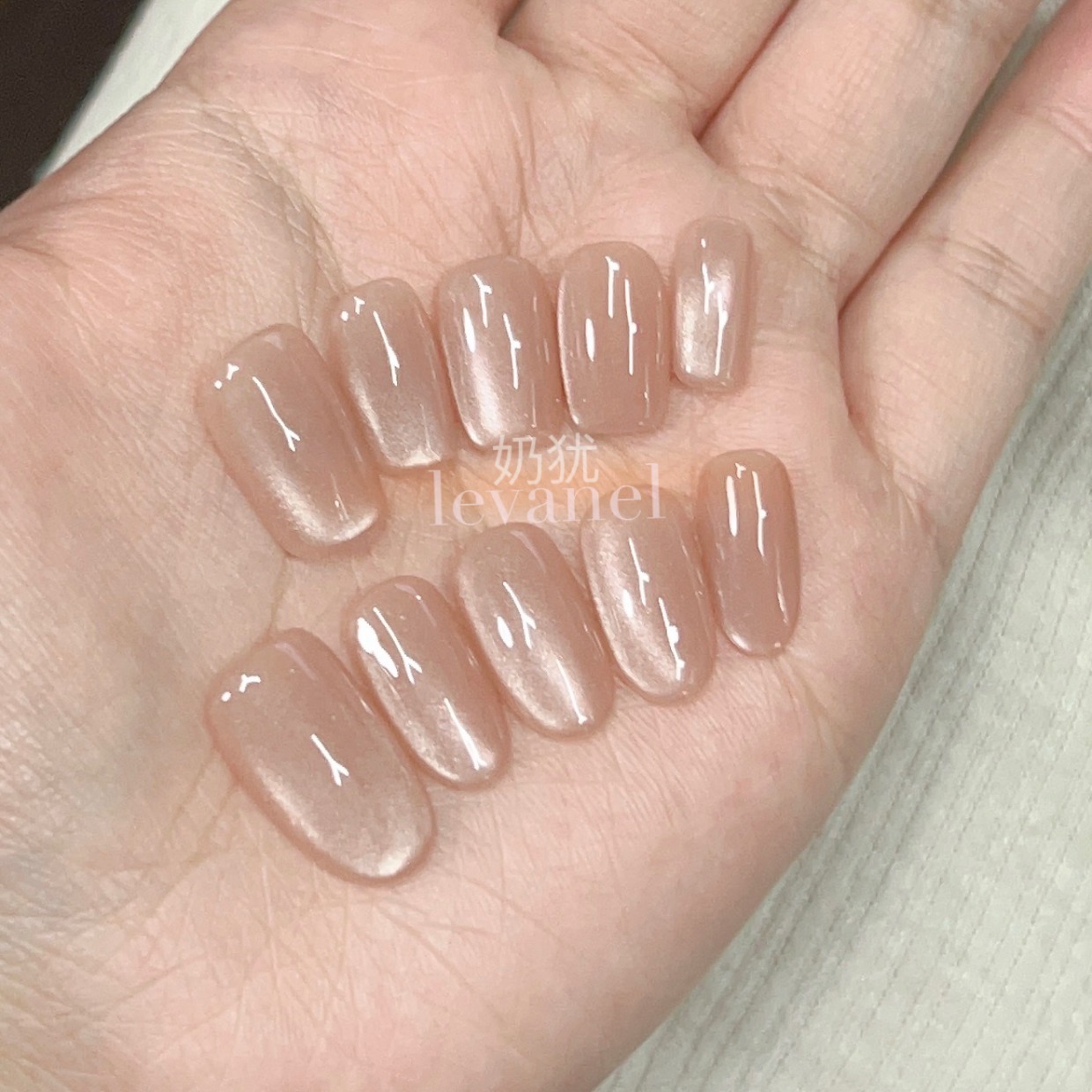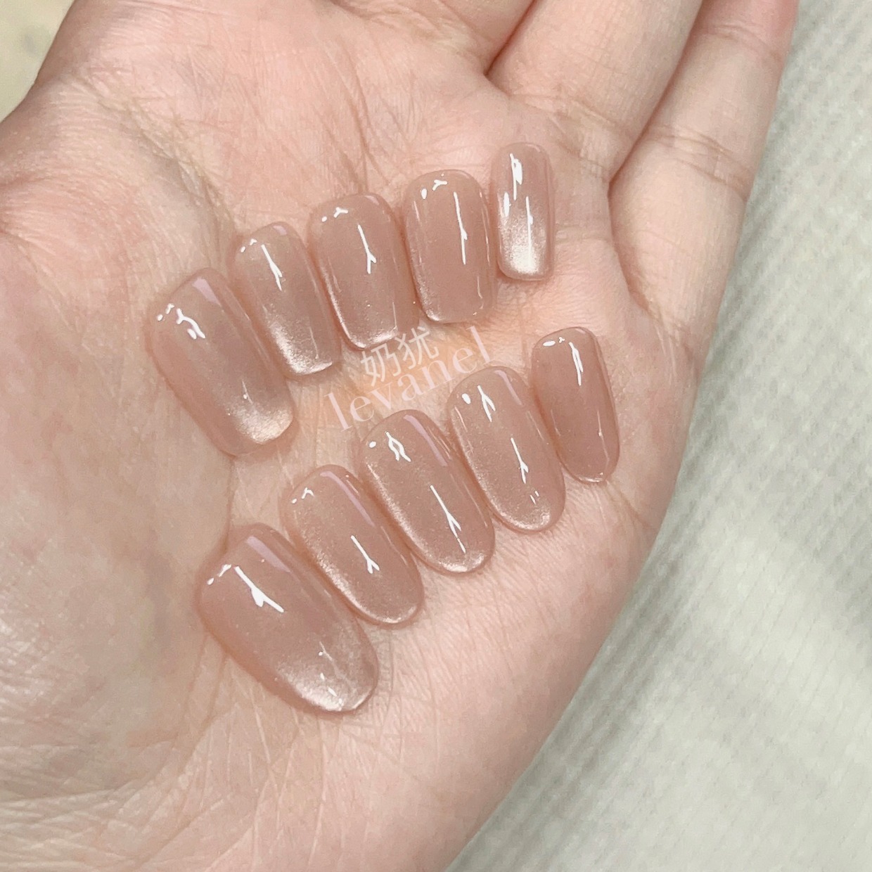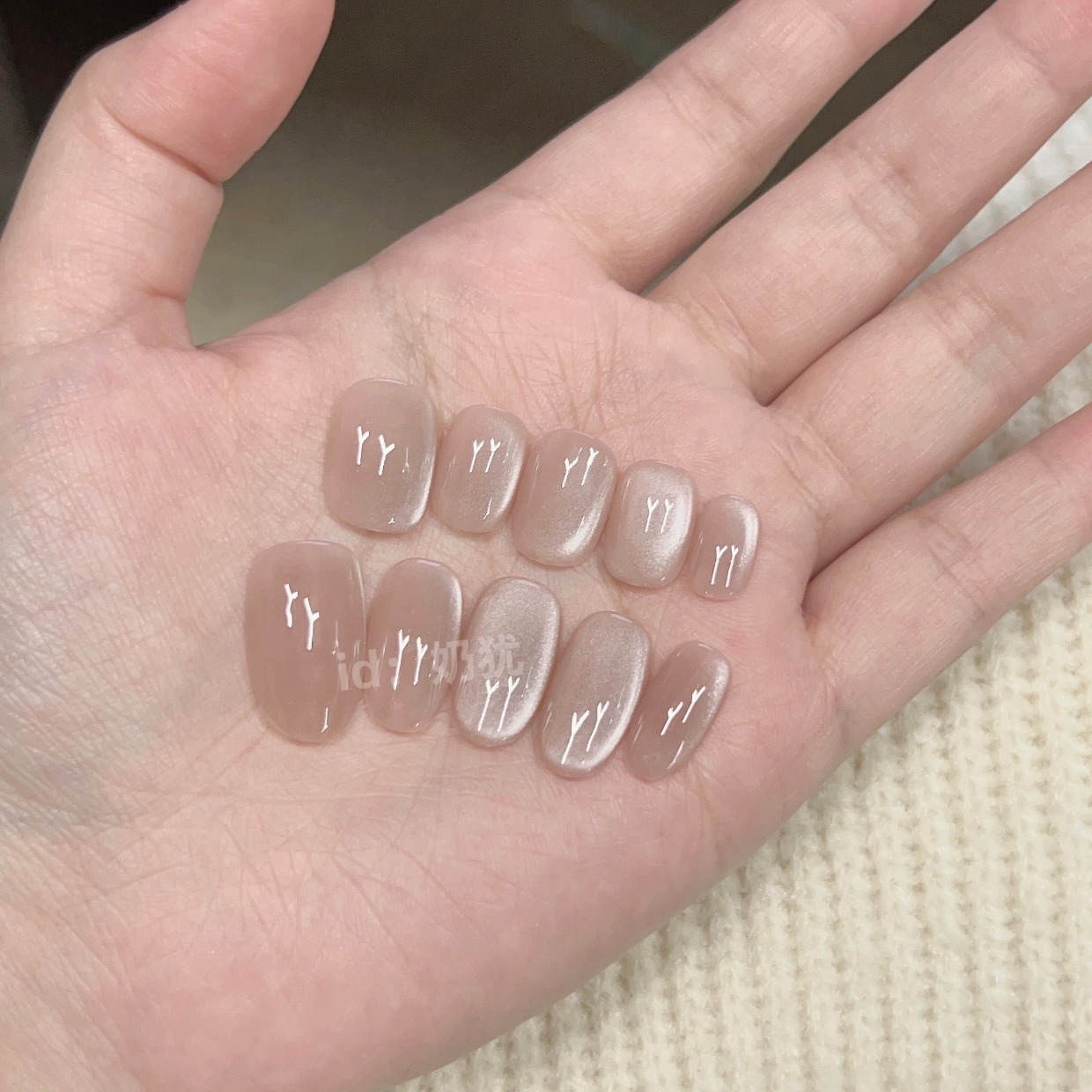 10片纯手工定制蜜柚裸色猫眼纯手工穿戴甲美甲贴片
