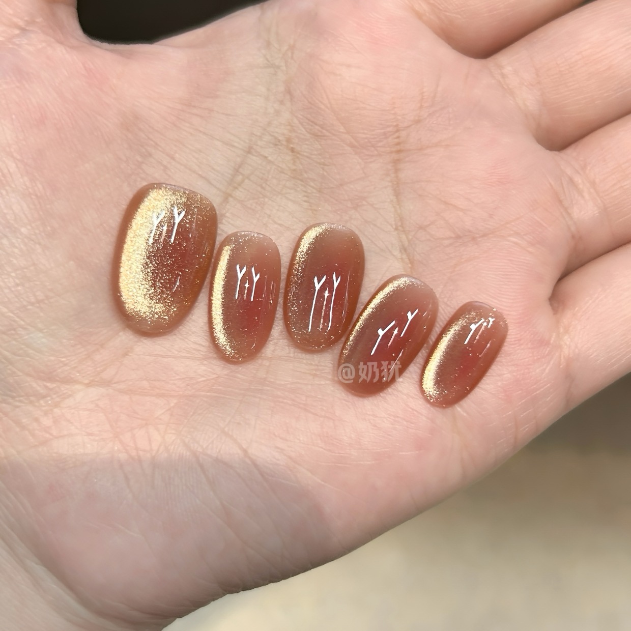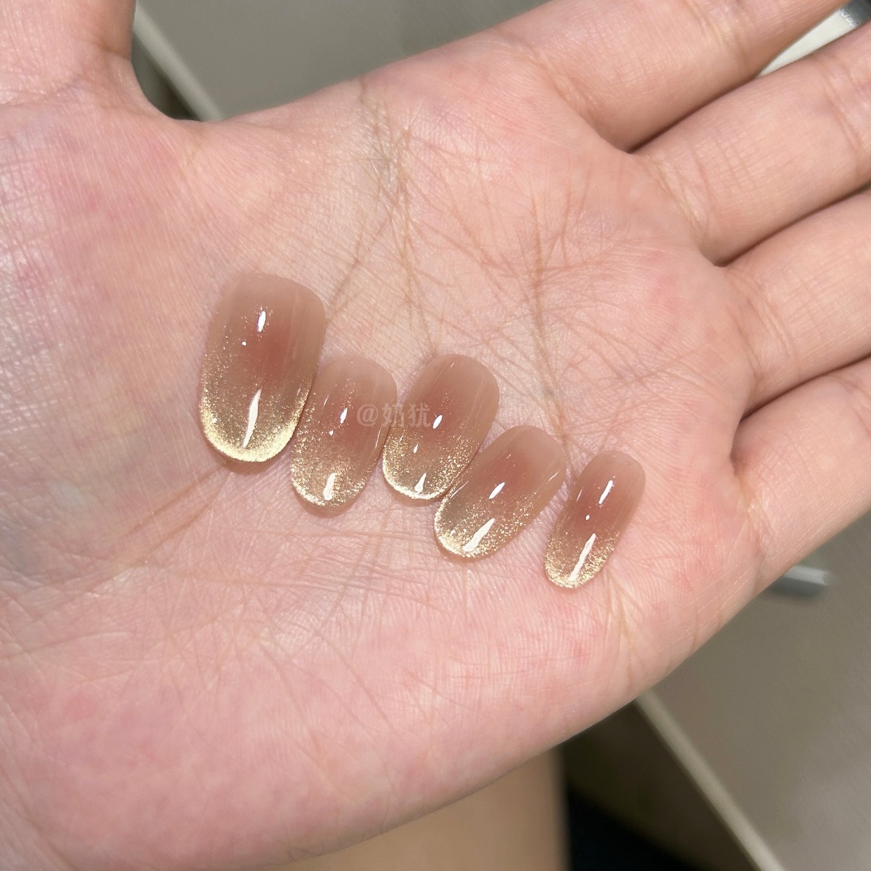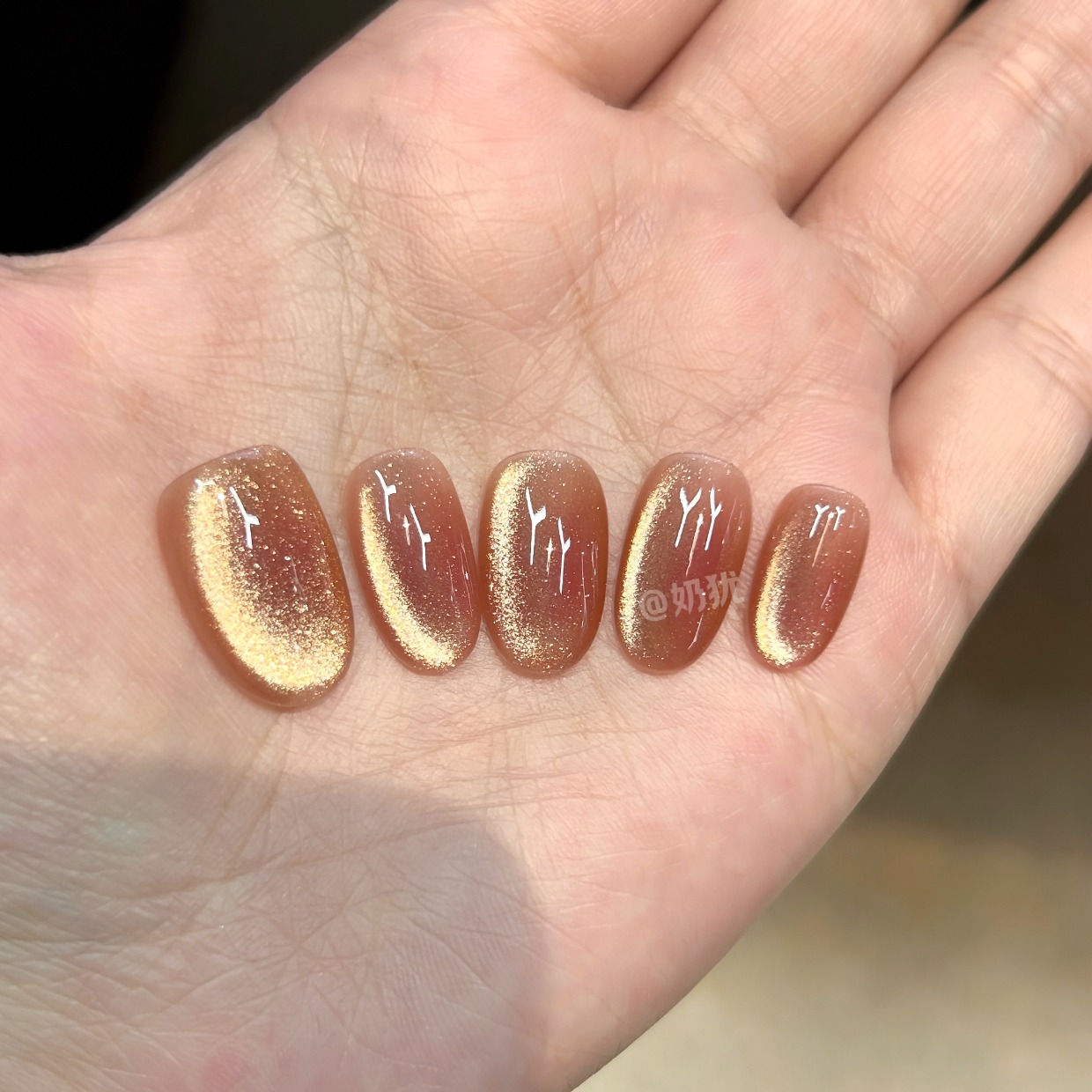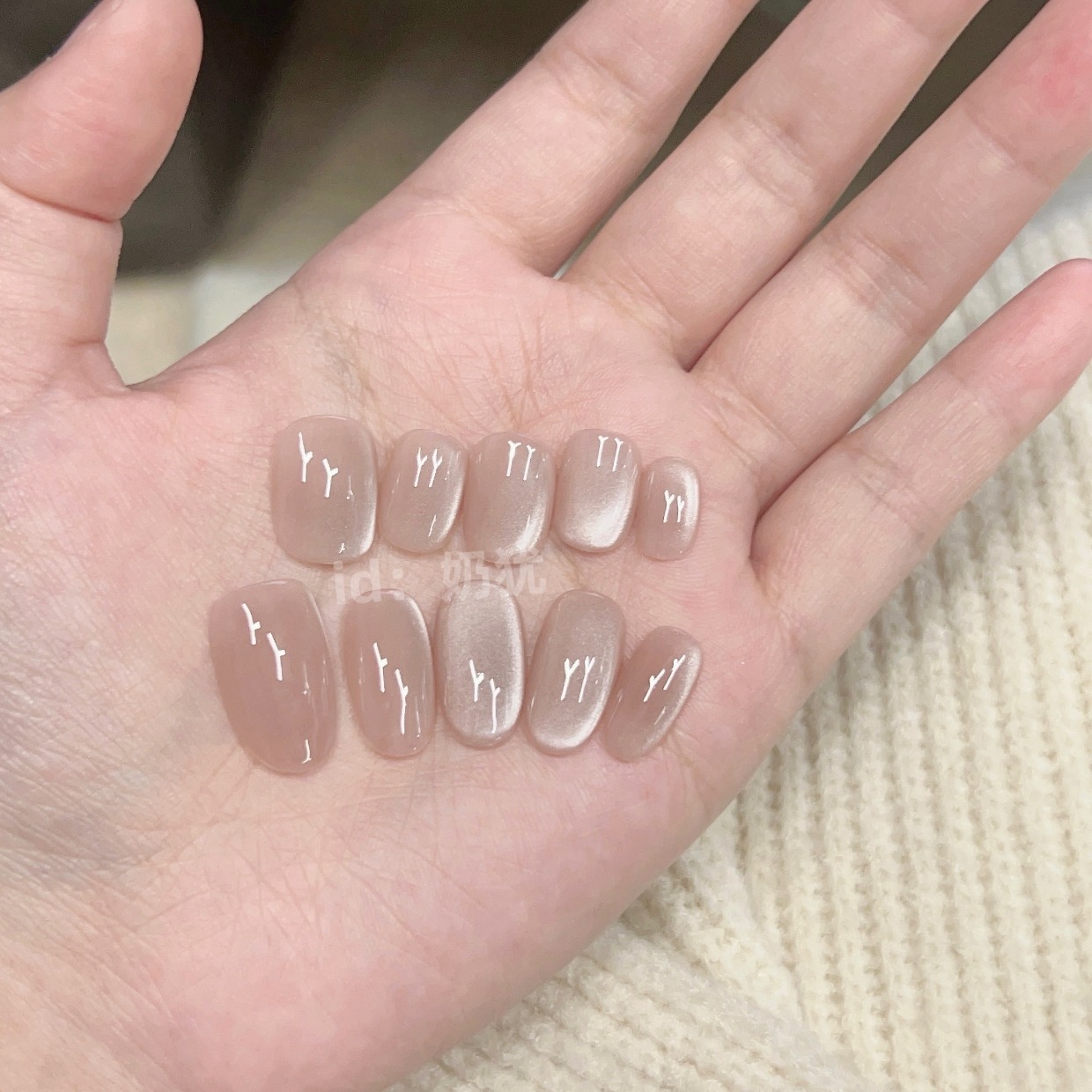 10片纯手工定制蜜柚裸色猫眼纯手工穿戴甲美甲贴片