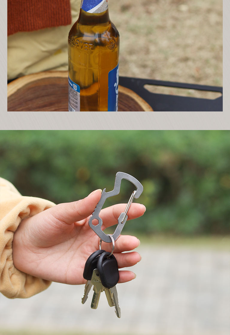户外小角鲨EDC多功能D型扣不锈钢登山扣开瓶器挂扣钥匙快挂露营