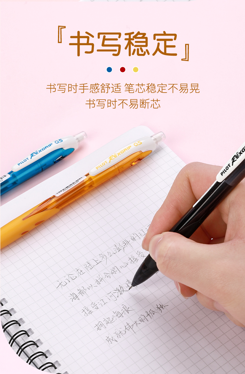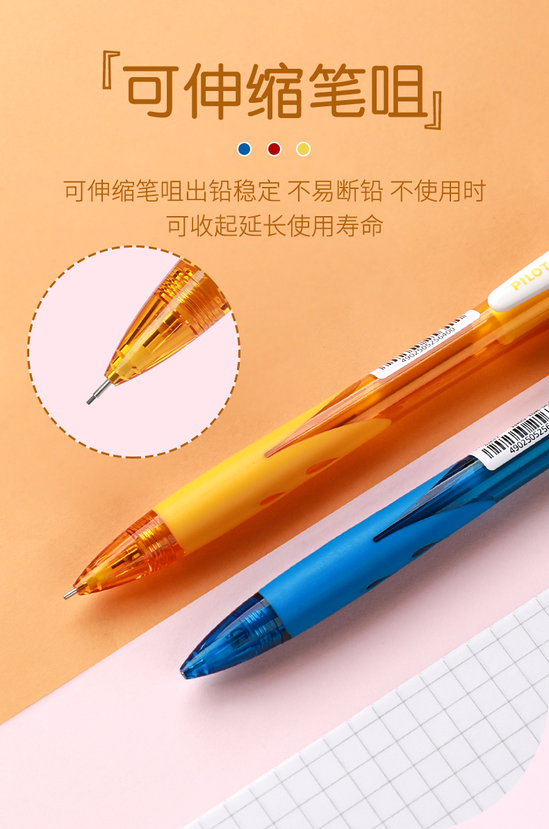 日本Pilot百乐自动铅笔0.5mm彩色透明杆小清新活动铅笔小学生写字手绘用不易断铅芯笔尾带橡皮擦HRG-10R