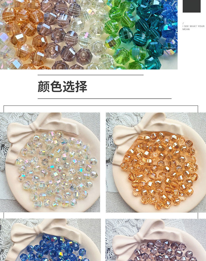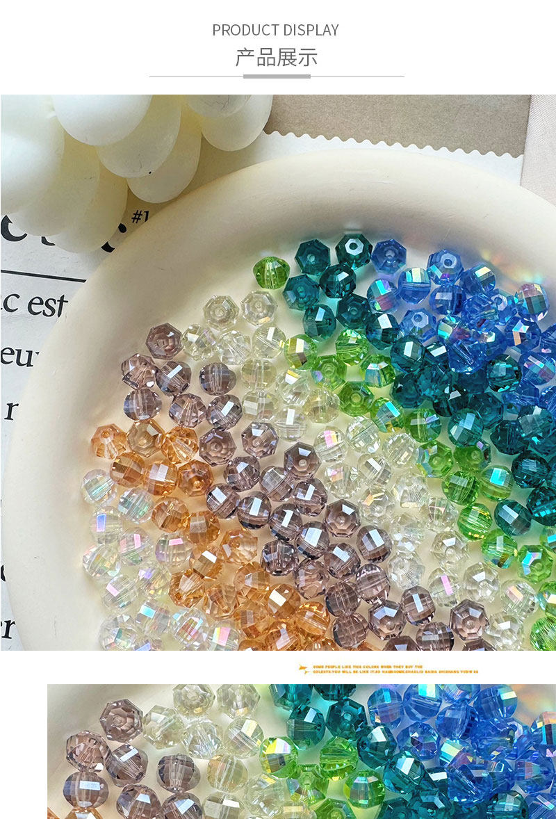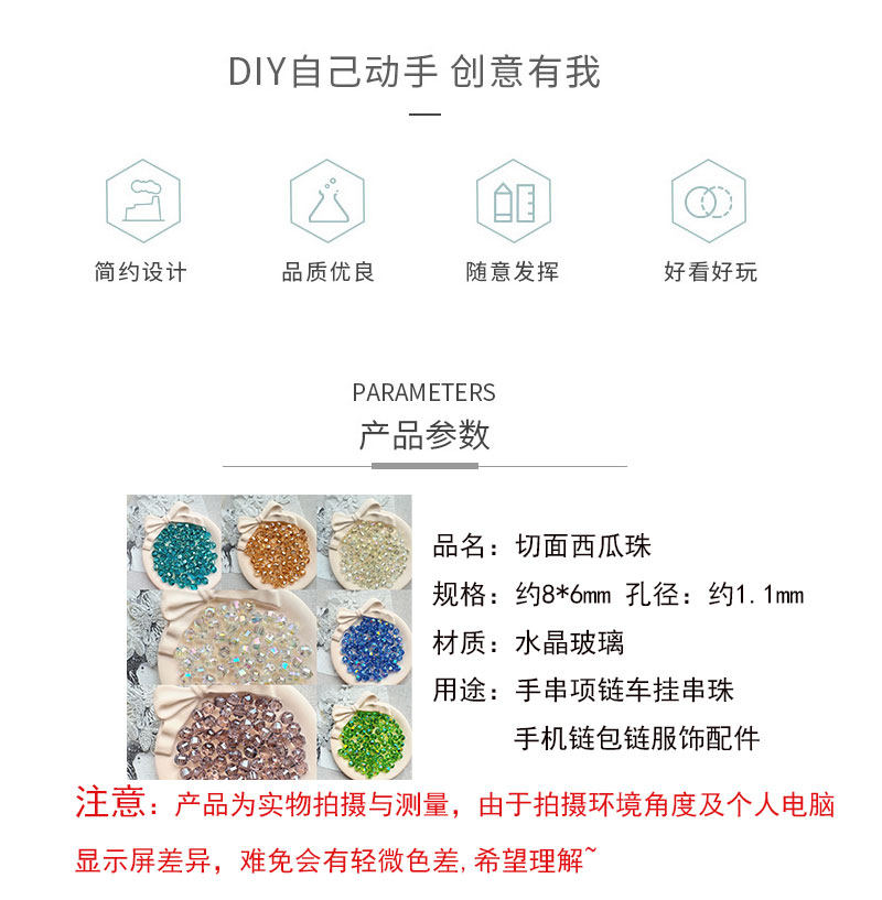 8mm高亮镀彩切面西瓜珠手链项链水晶玻璃串珠散珠手工DIY装饰配件