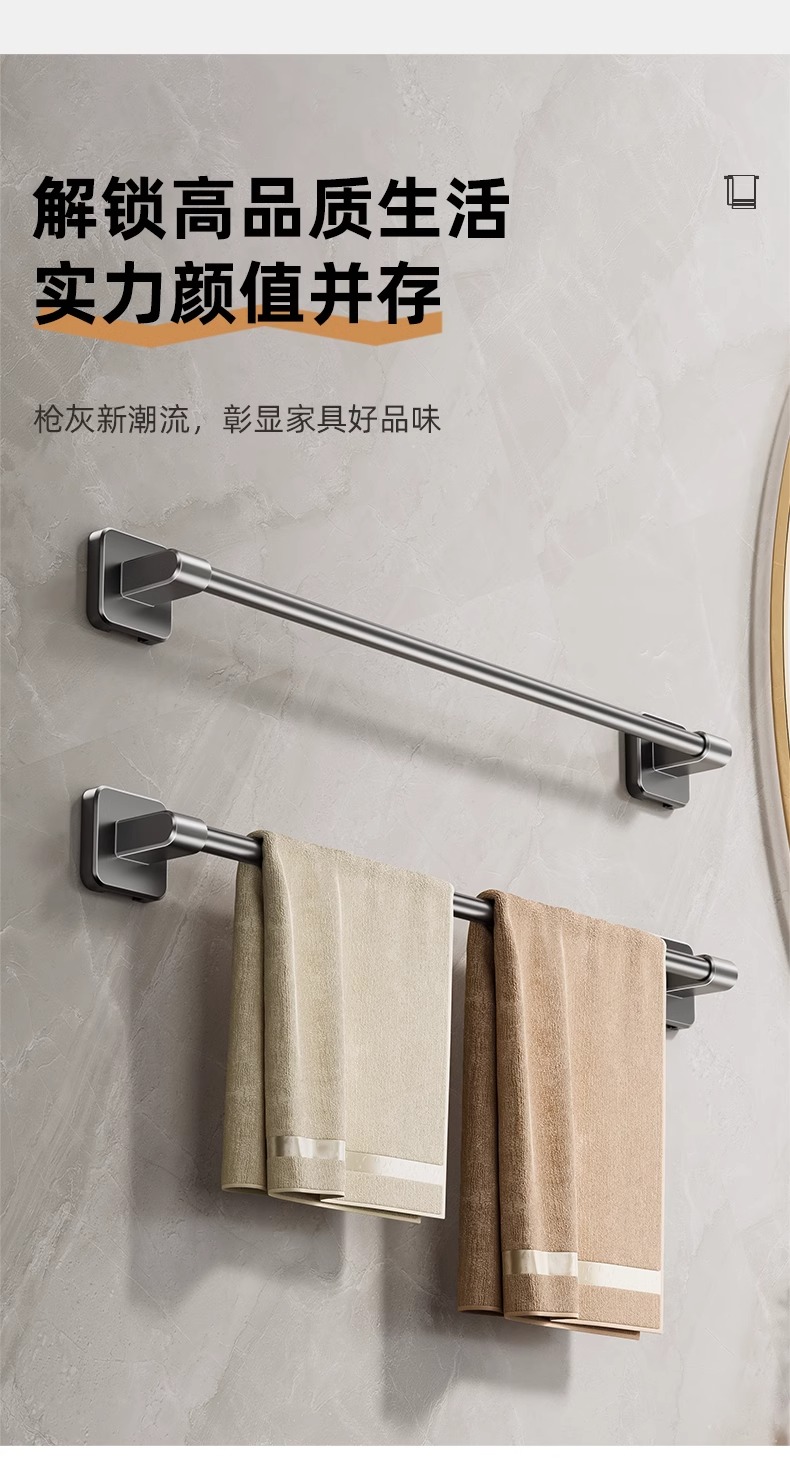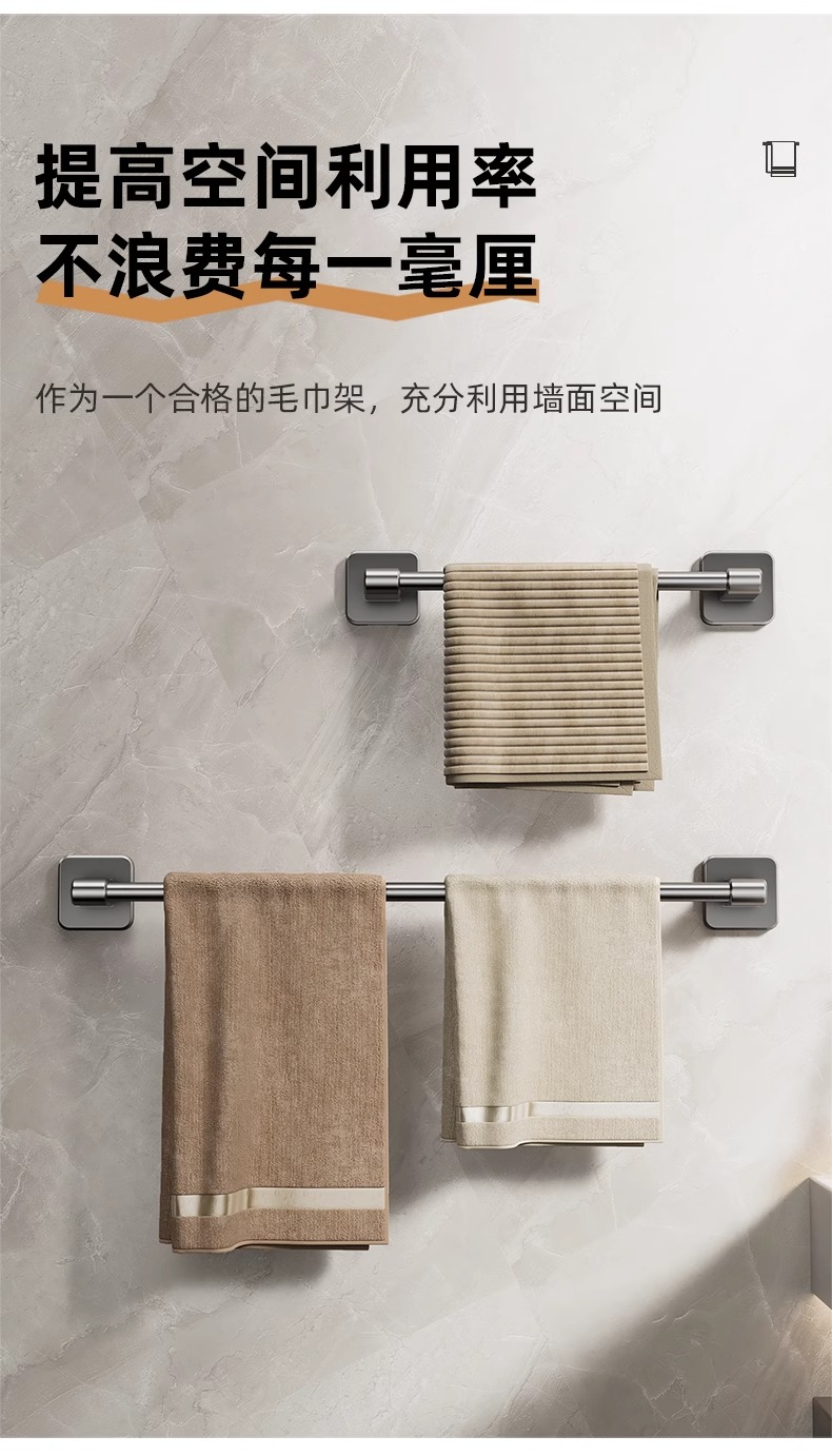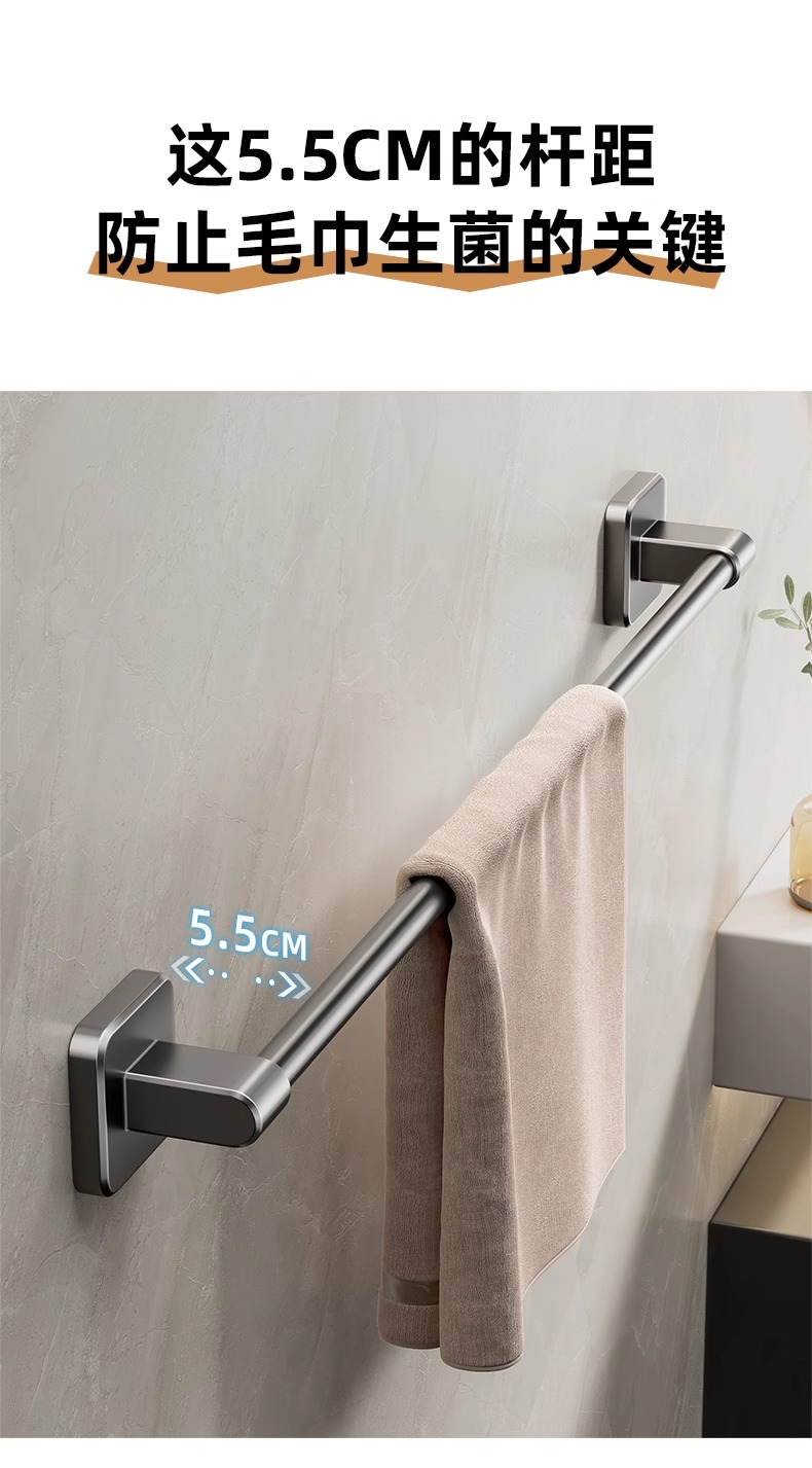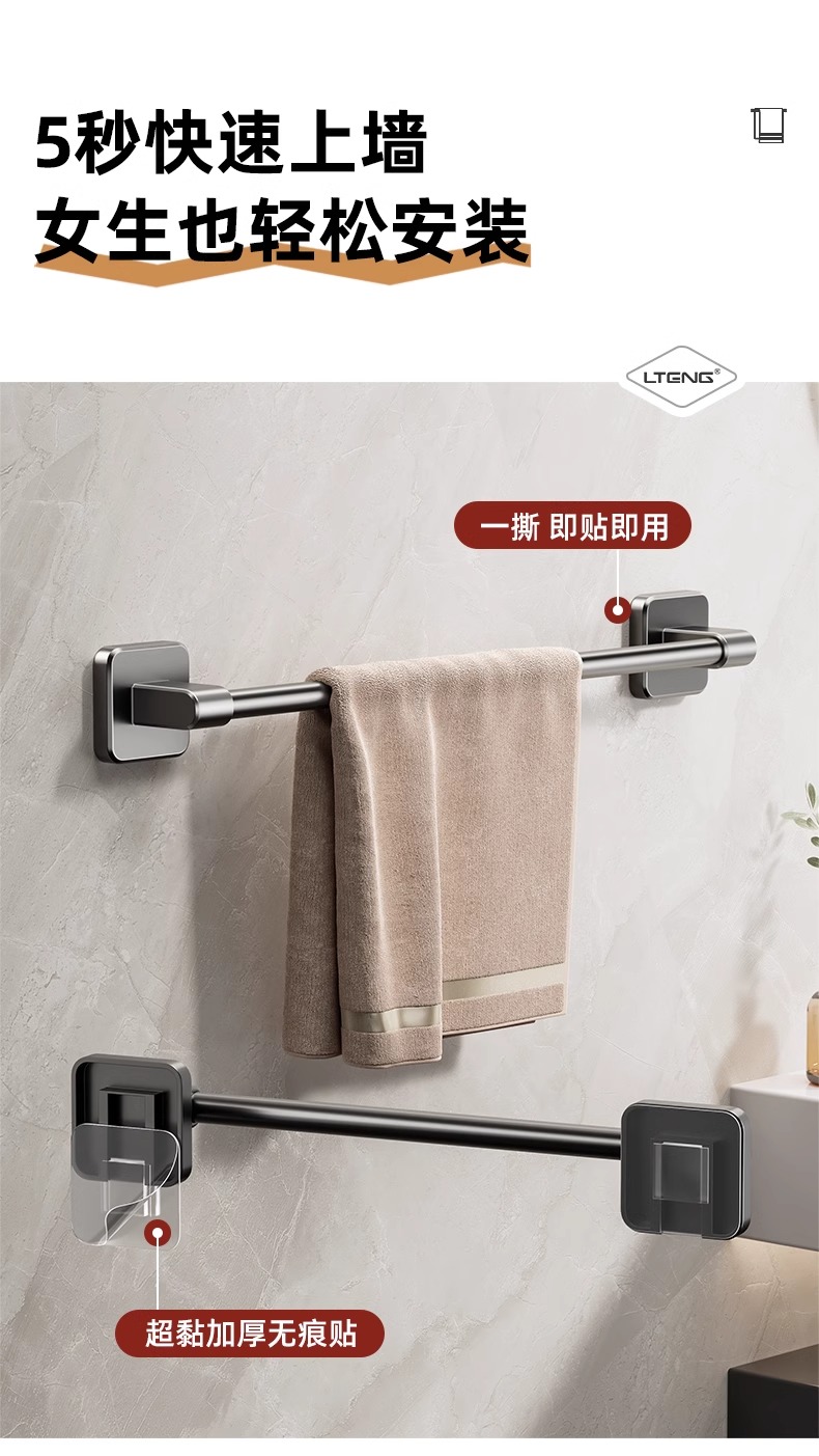 卫生间毛巾架浴室免打孔壁挂式置物架毛巾单杆厕所洗手间收纳挂架
