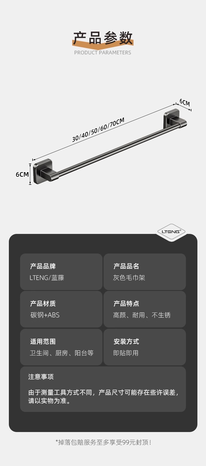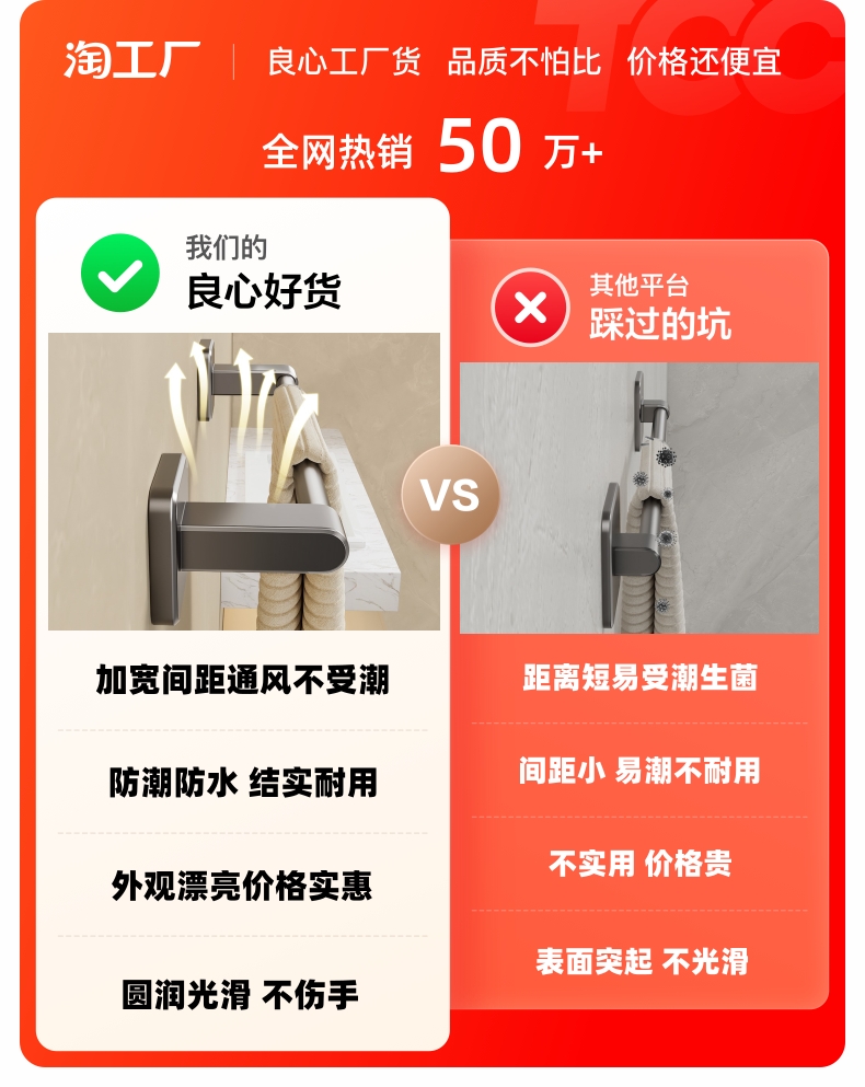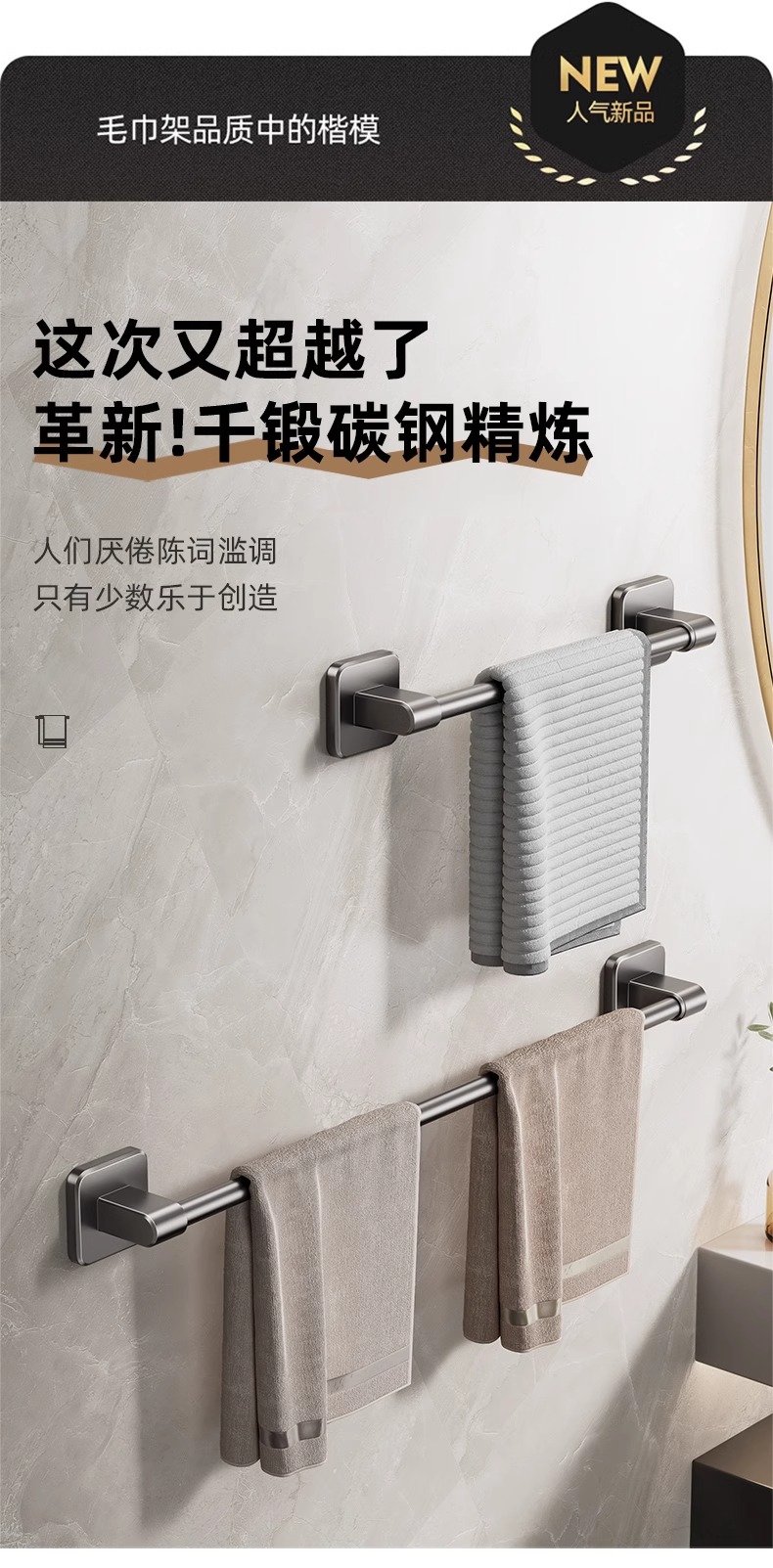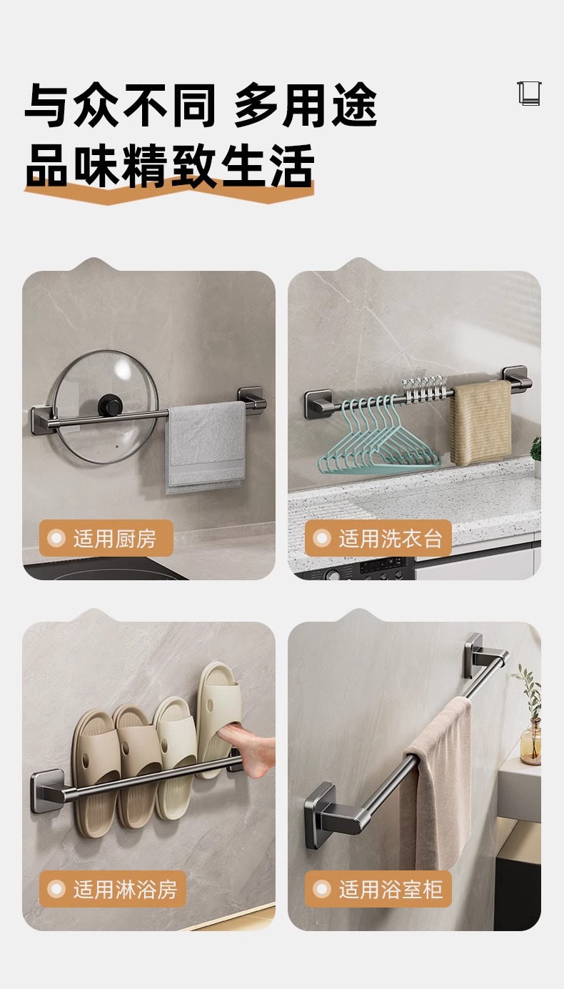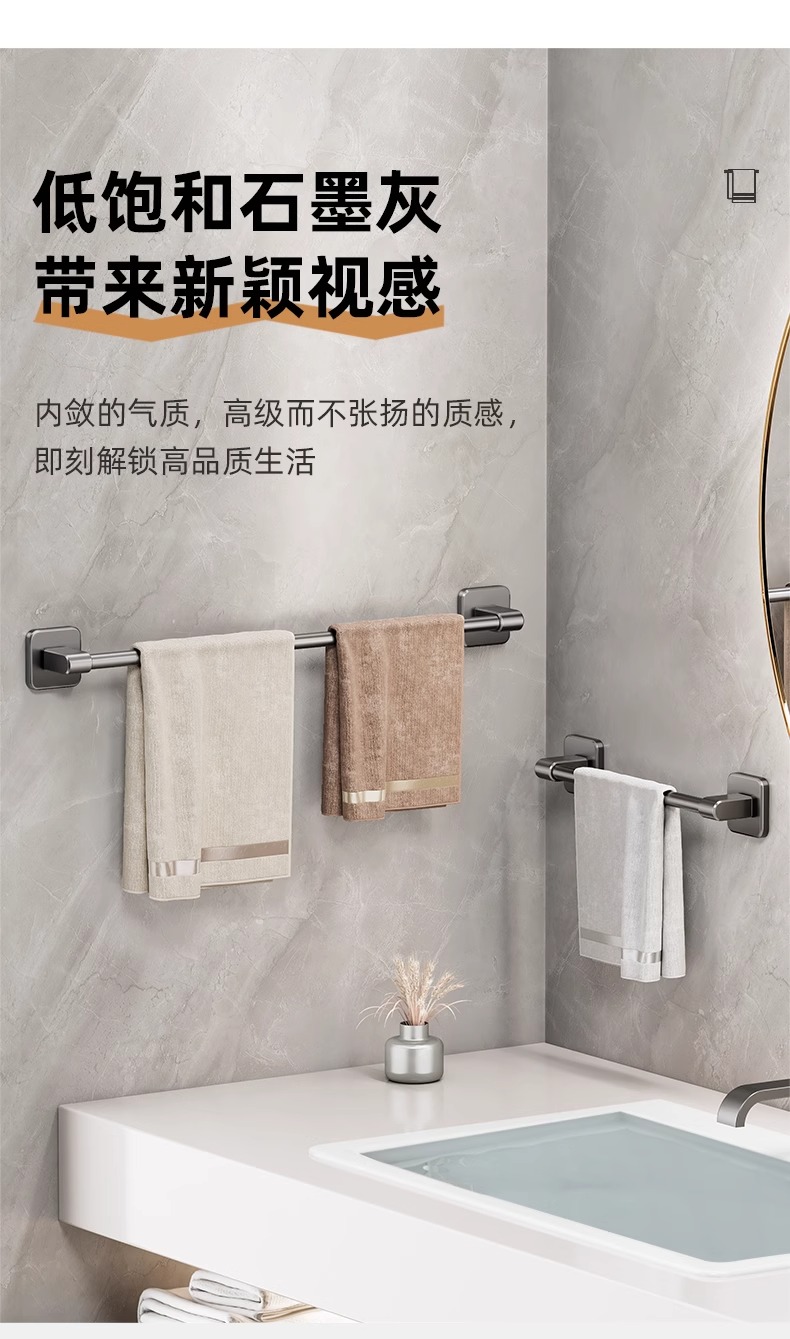 卫生间毛巾架浴室免打孔壁挂式置物架毛巾单杆厕所洗手间收纳挂架