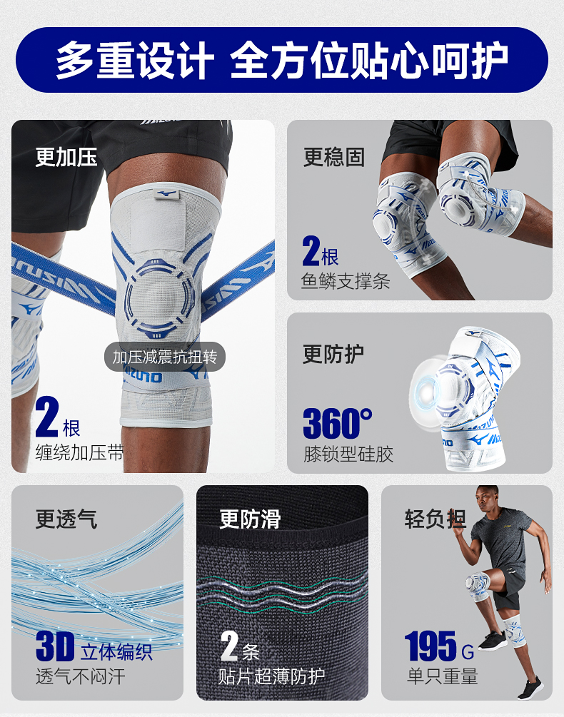 美津浓运动护膝男女跑步篮球排球足球深蹲膝盖关节半月板专业护具