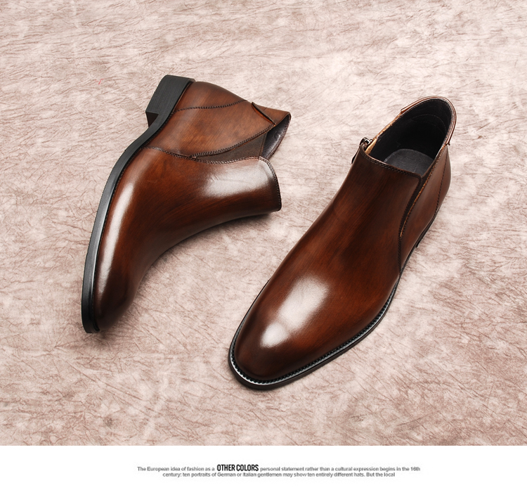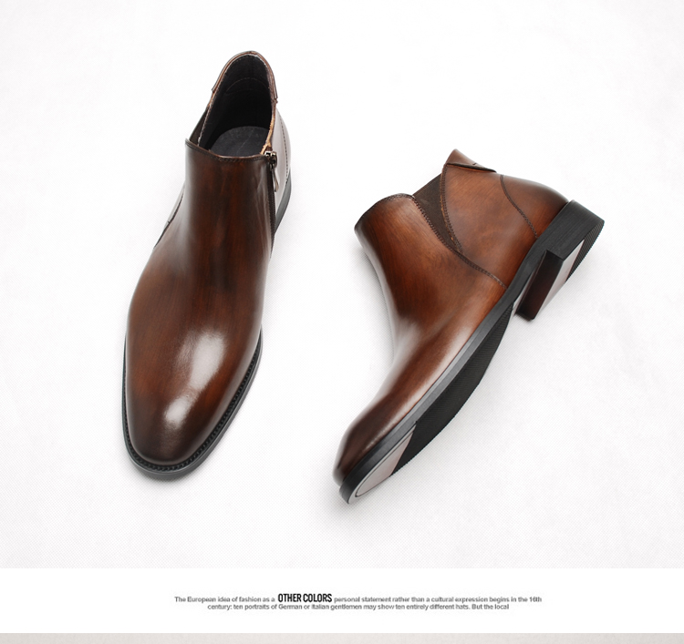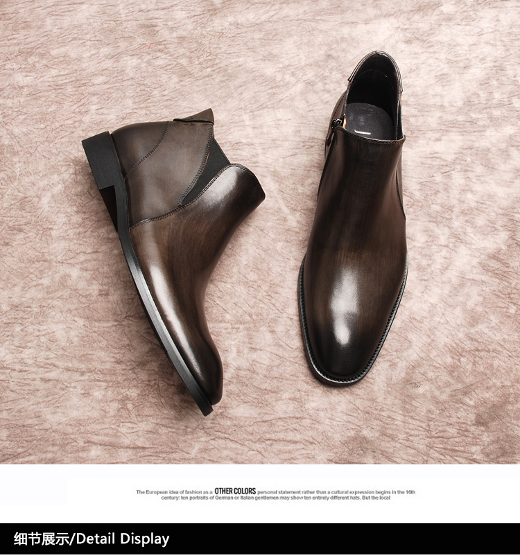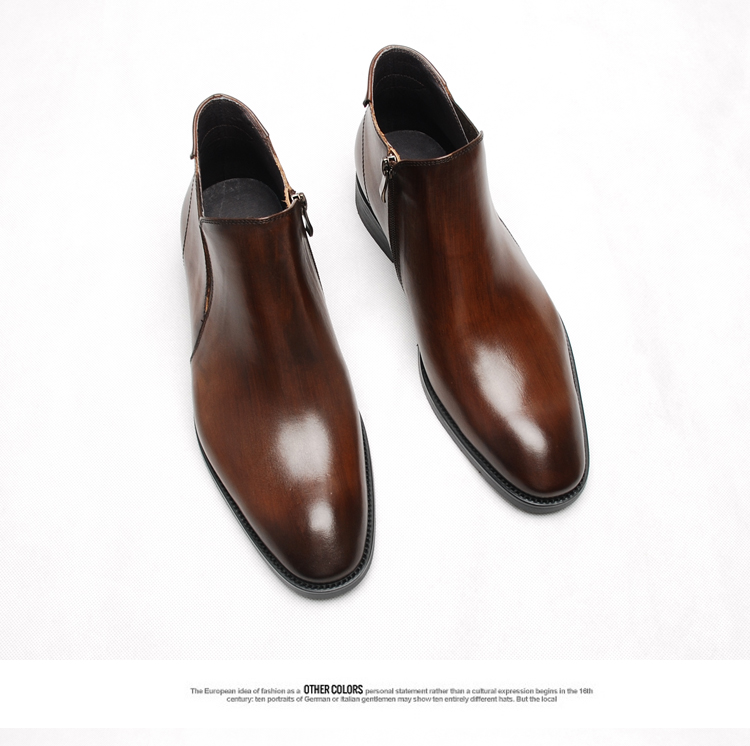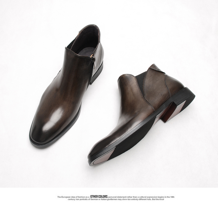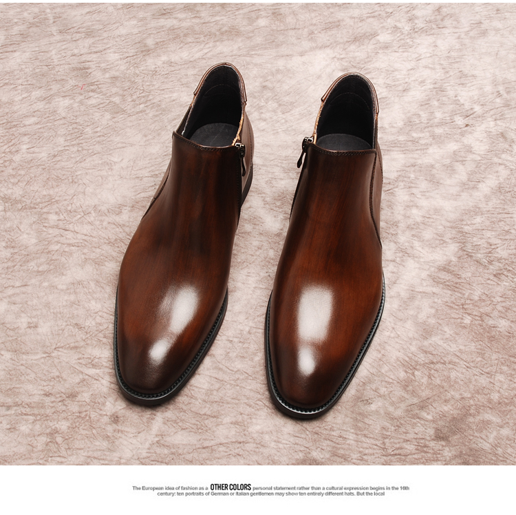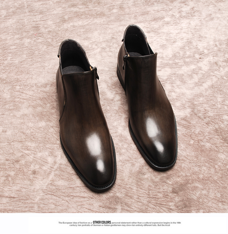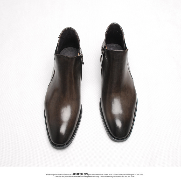 欧美真皮男靴英伦方头高帮商务皮鞋拉链切尔西靴男冬季加绒短靴子