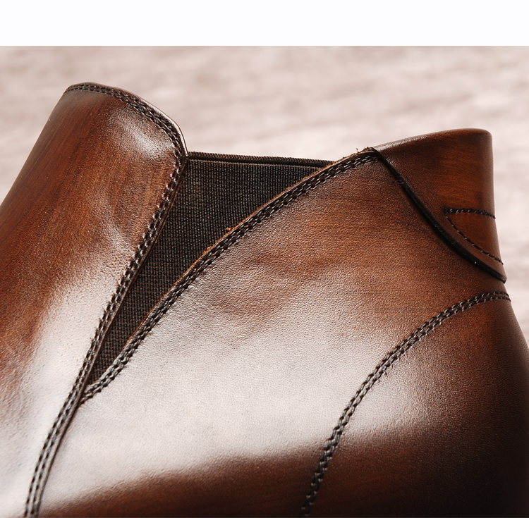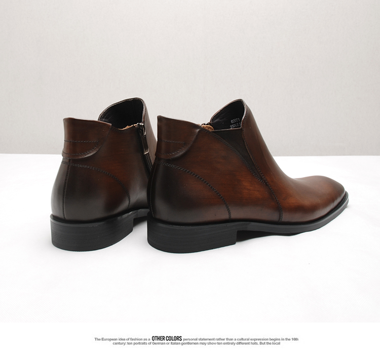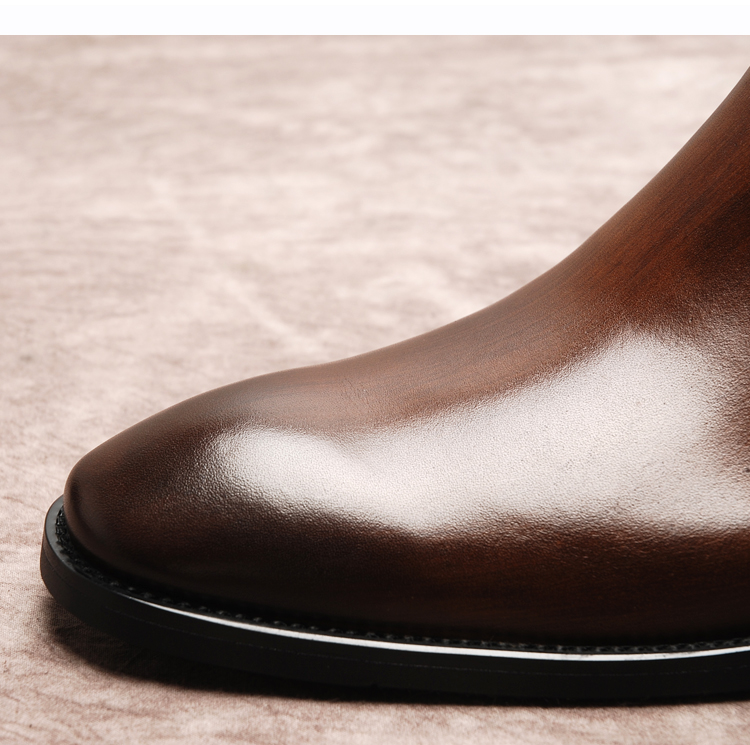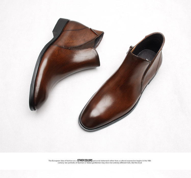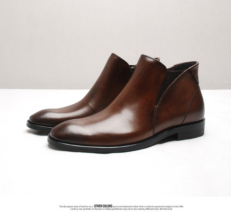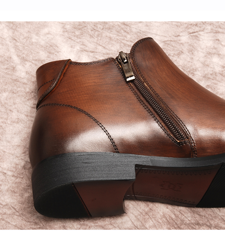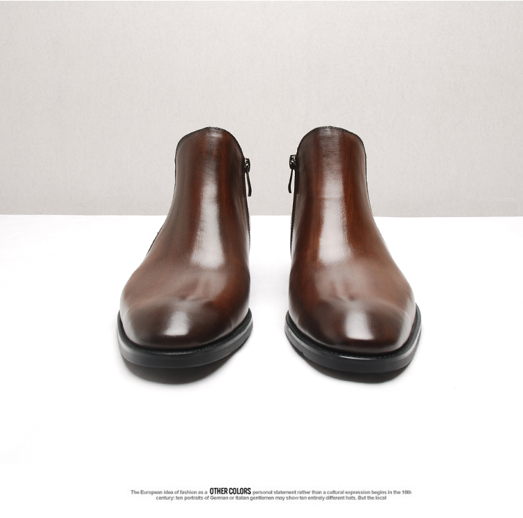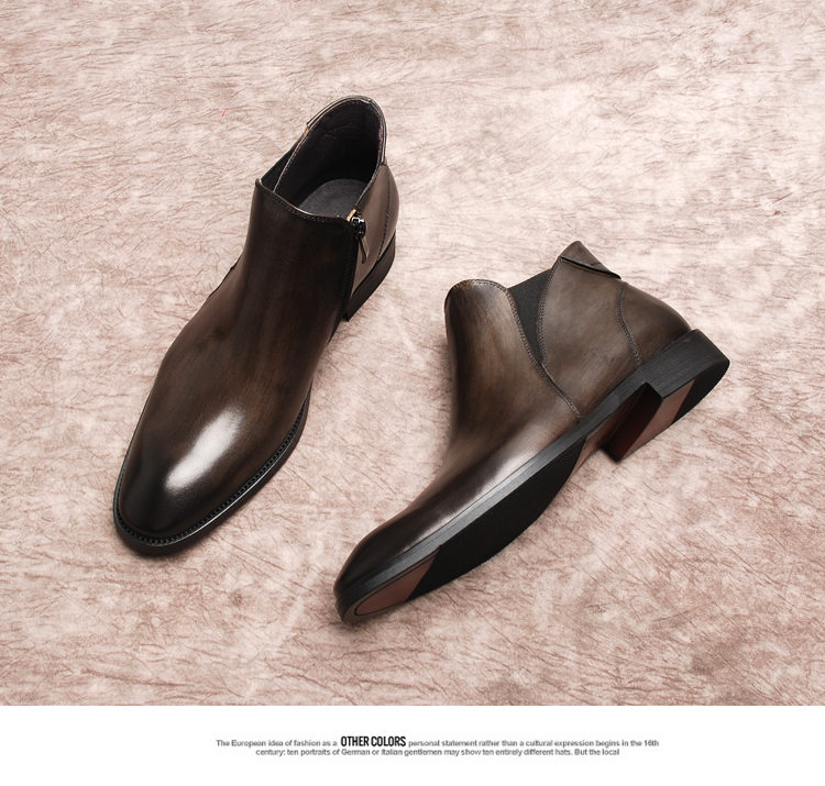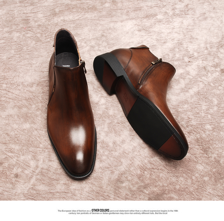 欧美真皮男靴英伦方头高帮商务皮鞋拉链切尔西靴男冬季加绒短靴子