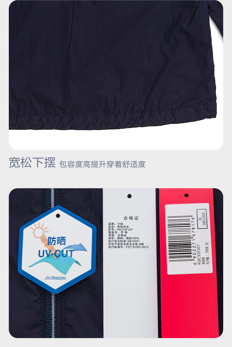 Kappa卡帕防风衣新款春男梭织外套卫衣休闲连帽开衫上衣K0C32FJ07