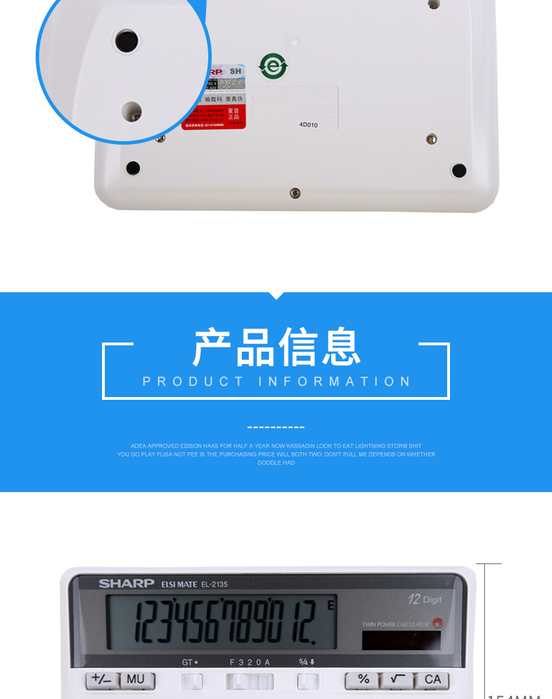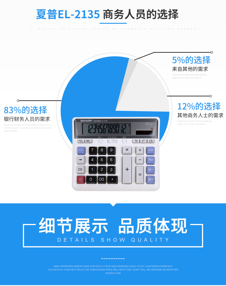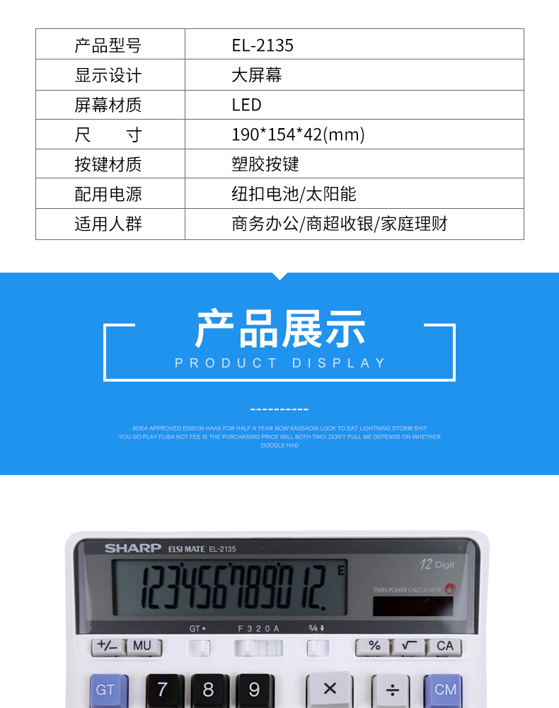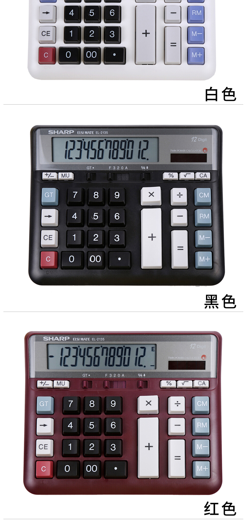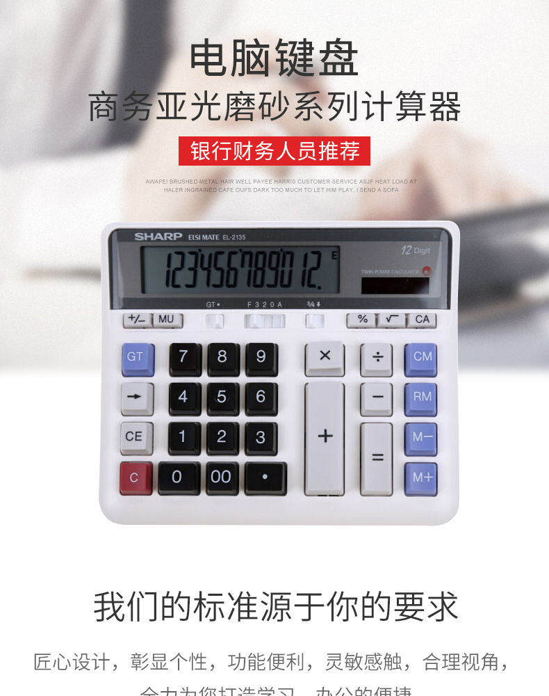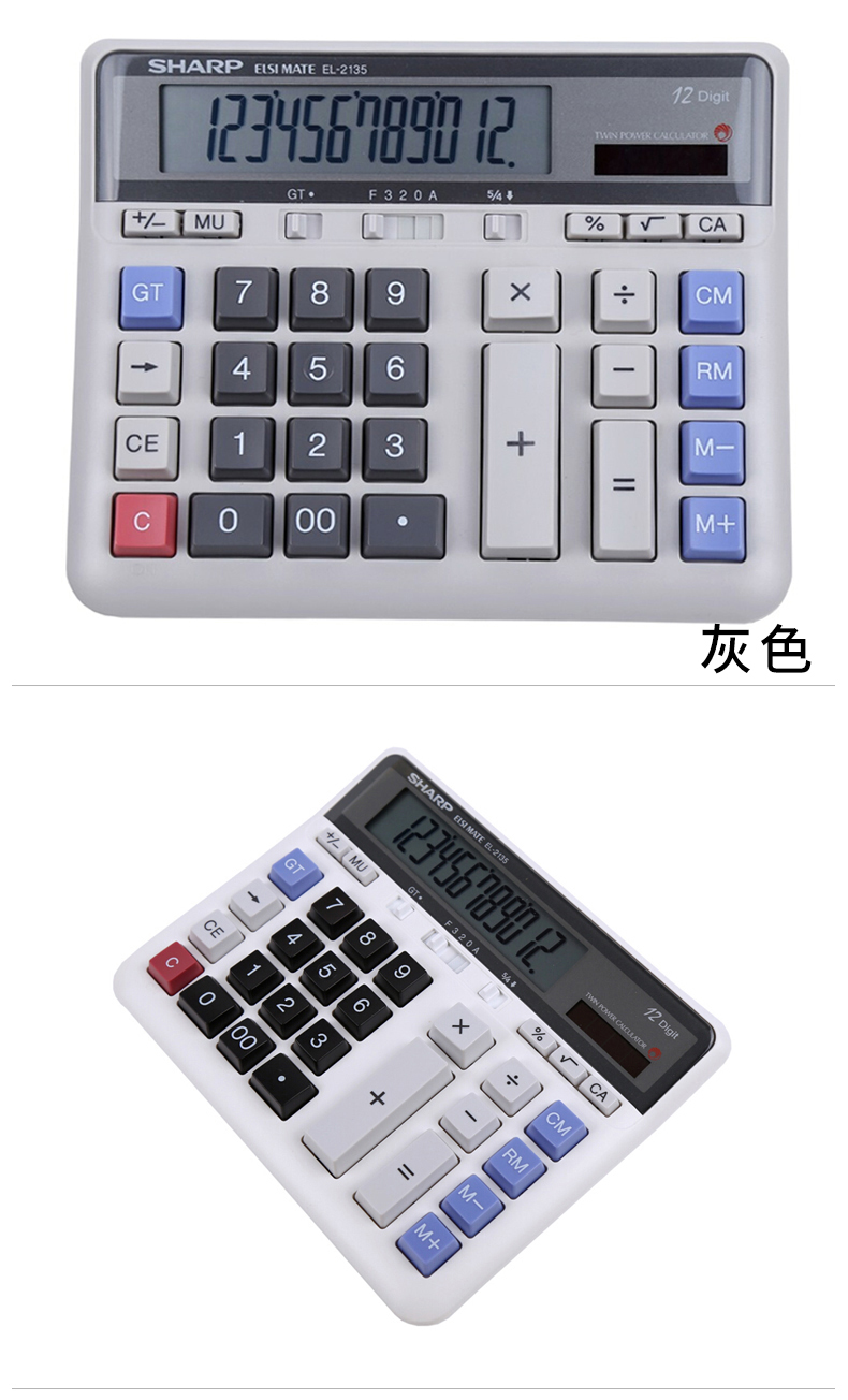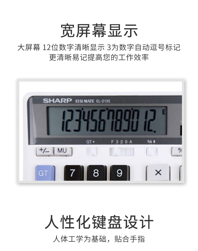 SHARP/夏普EL2135 太阳能计算器宽屏计算器大号会计专用大屏电脑按键多功能计算机12位办公用品财务商用